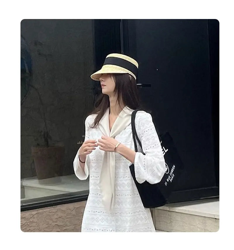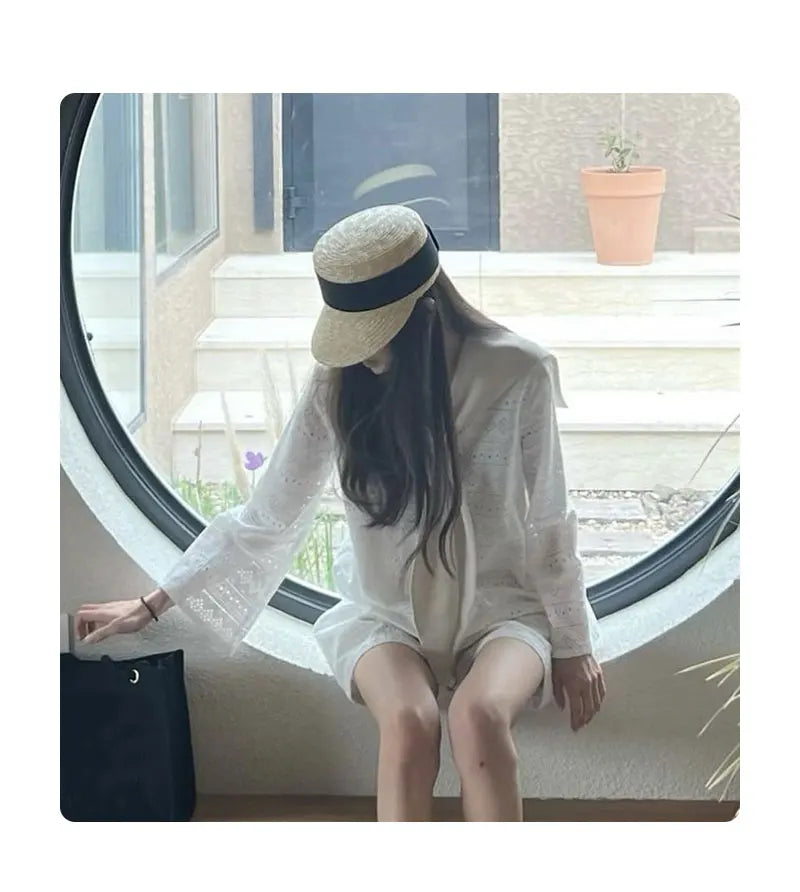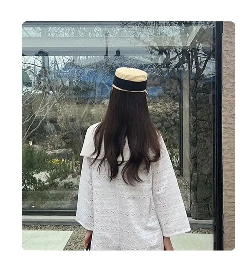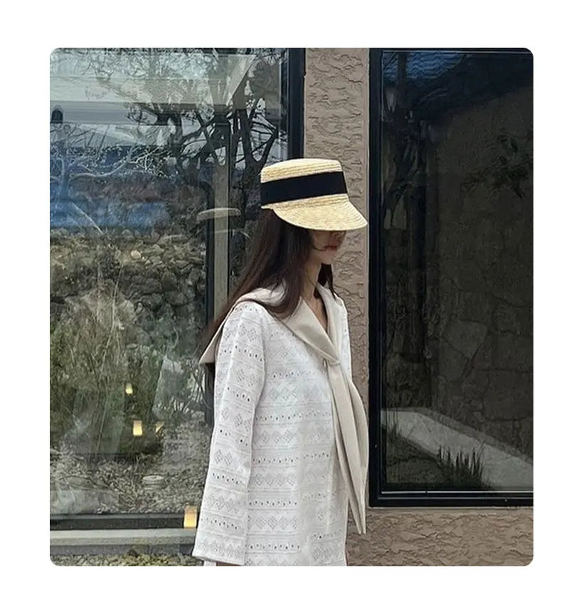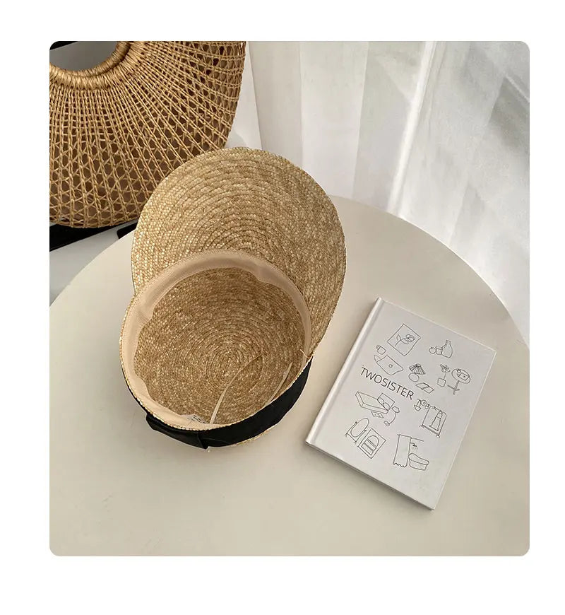 Summer Beach Style Visor Black Strap Straw Sun Hats for Women
