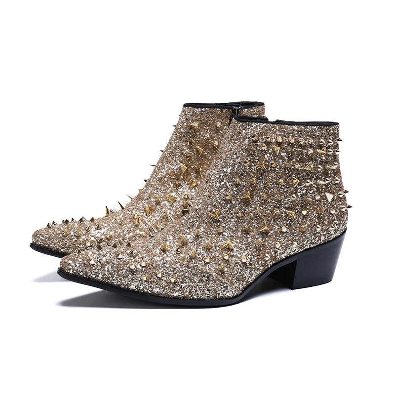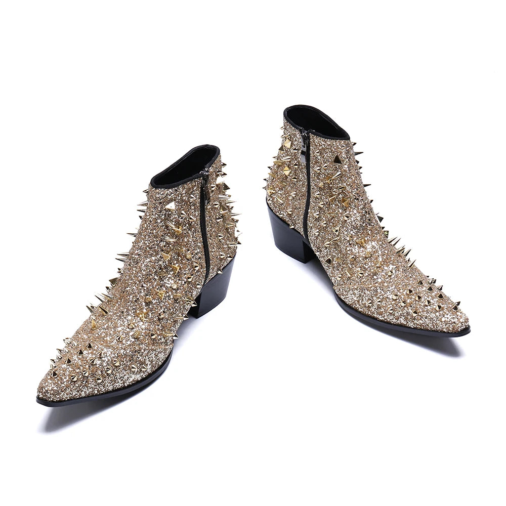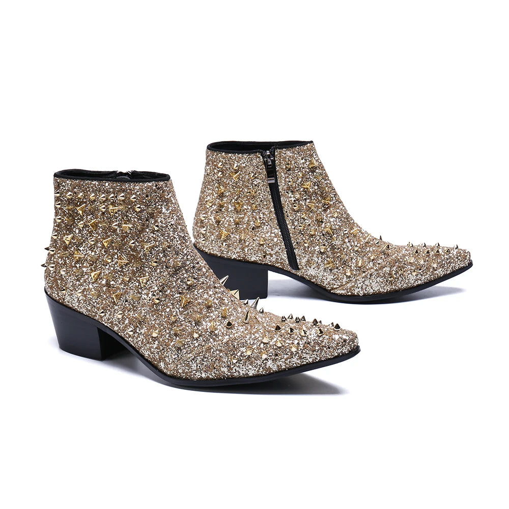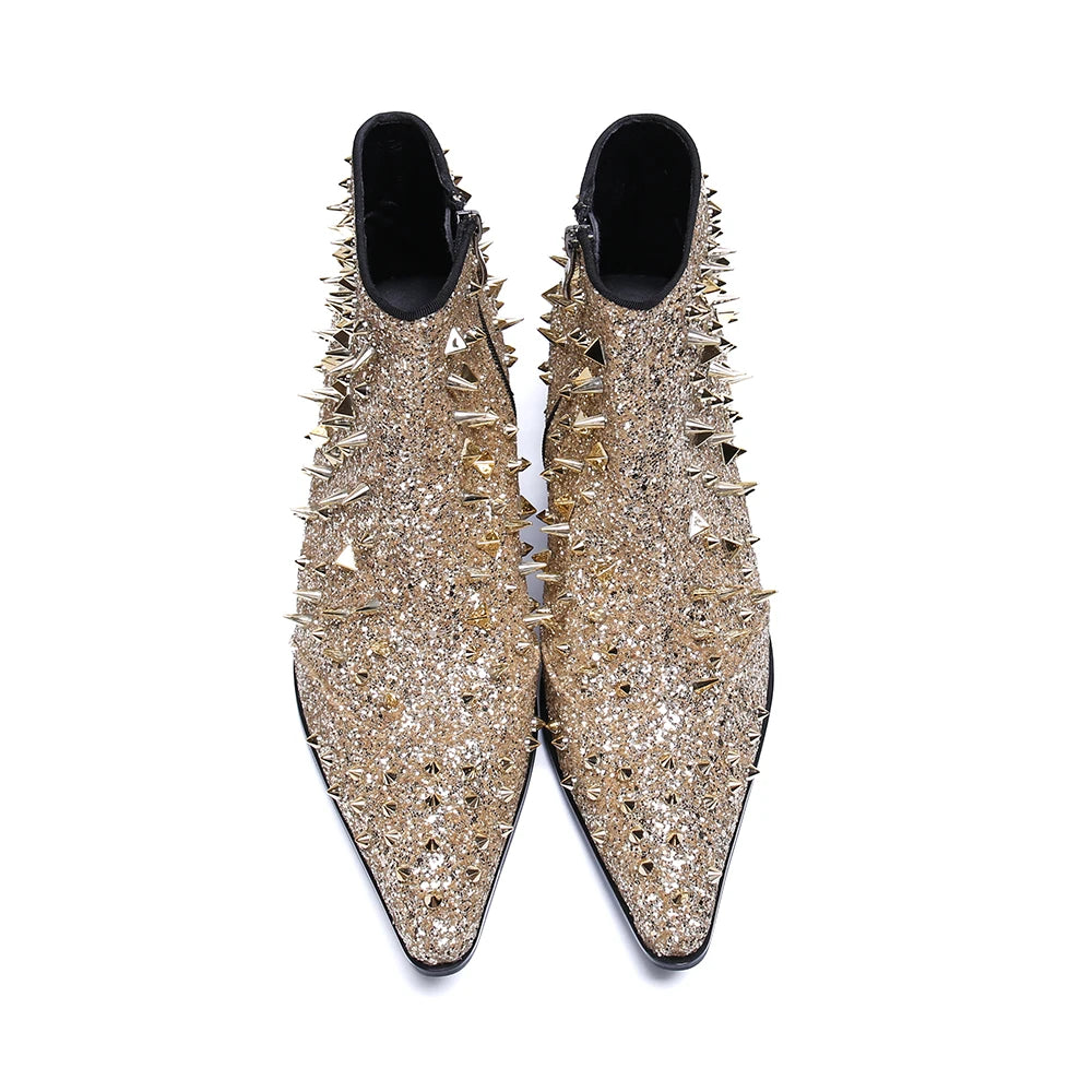 Men's Autumn Winter Pointed Toe Shiny Rivets Zipper Ankle Boots