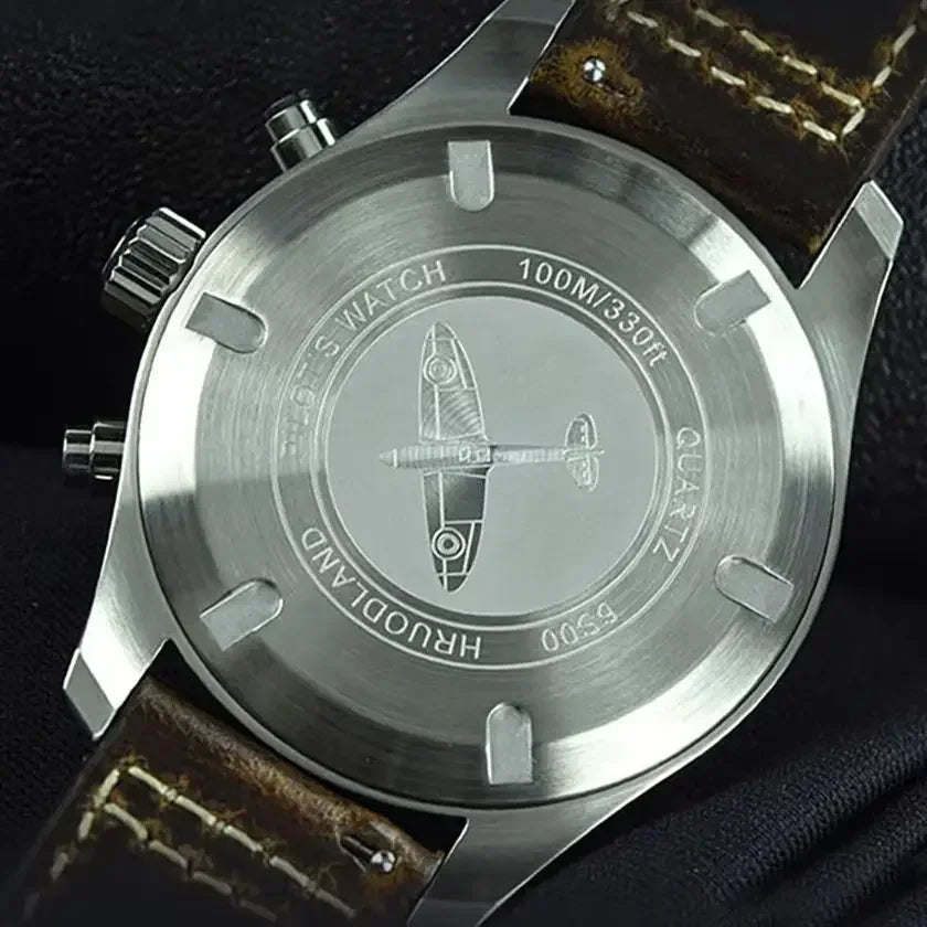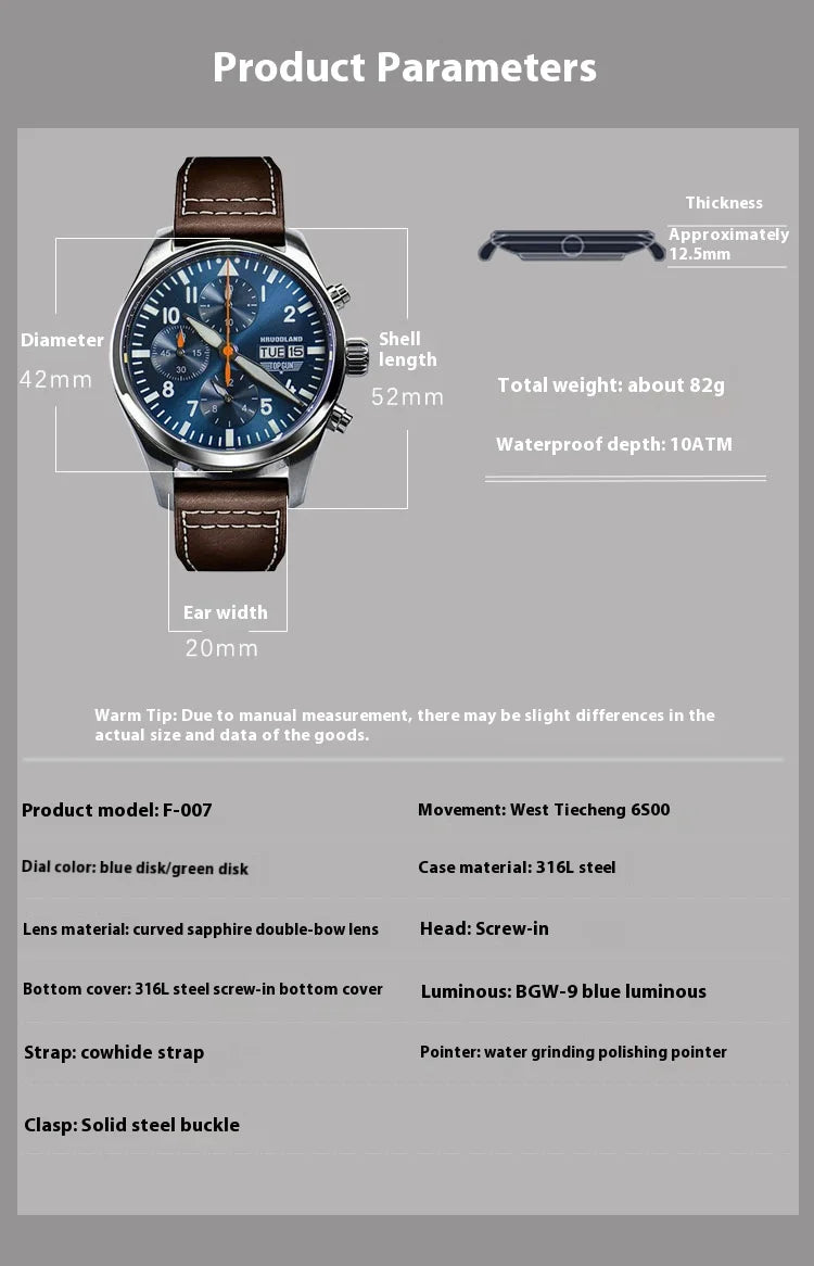 42mm Men's Quartz Chronograph Luminous 10Bar Waterproof Leather Watch