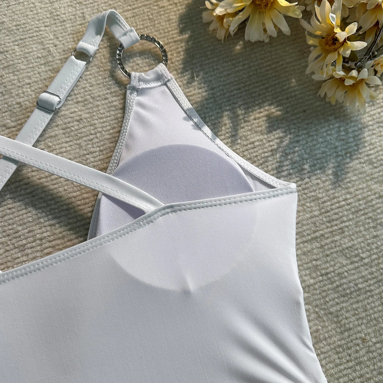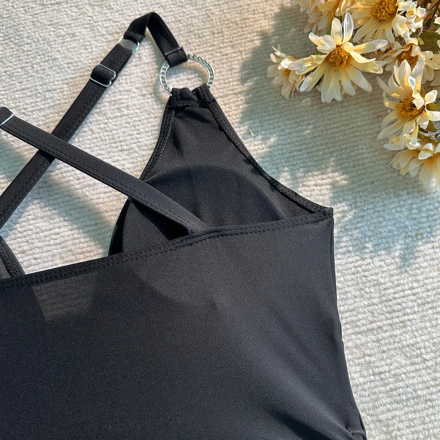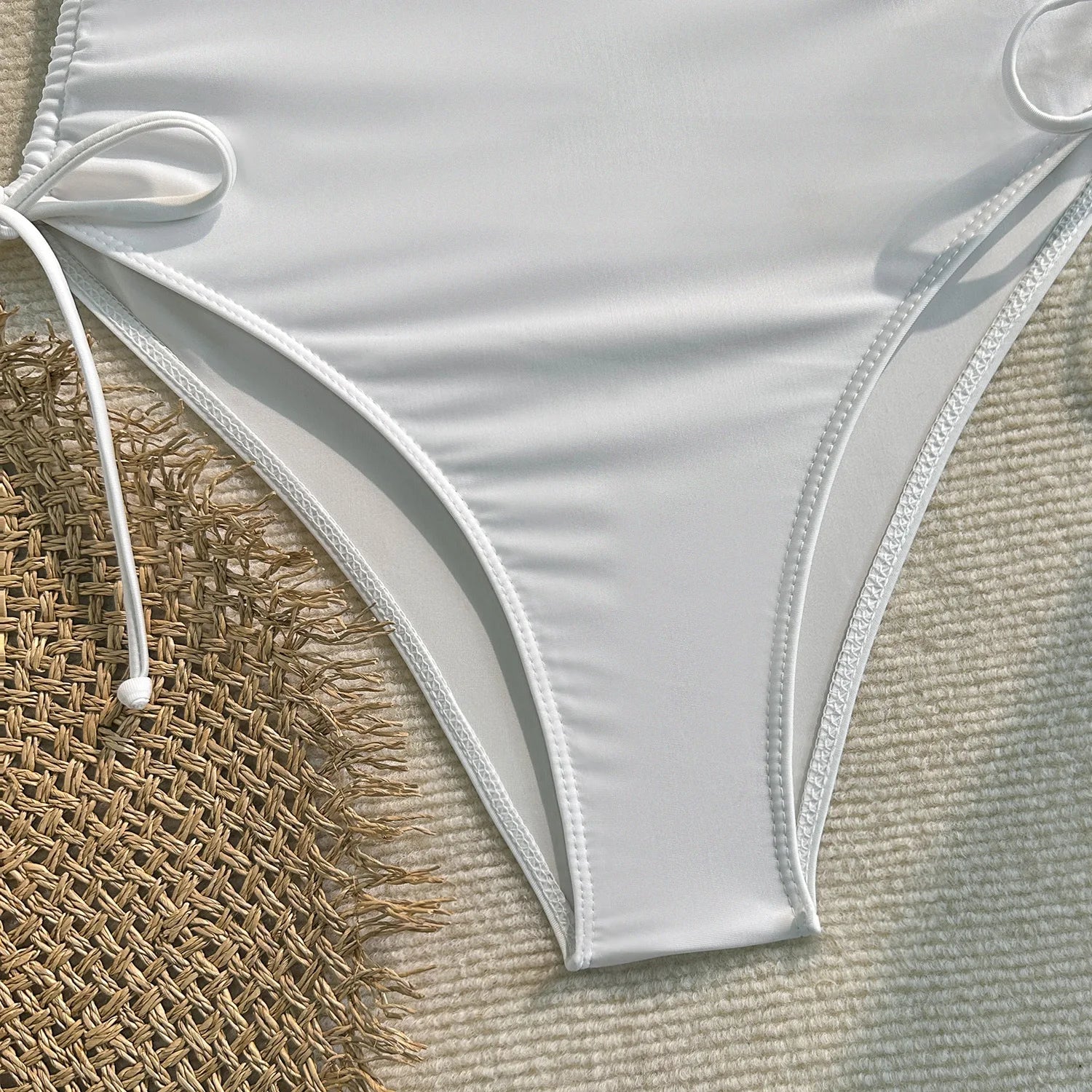 Sexy Deep V Neck Drawstring Side Slim One Piece Swimsuit for Women