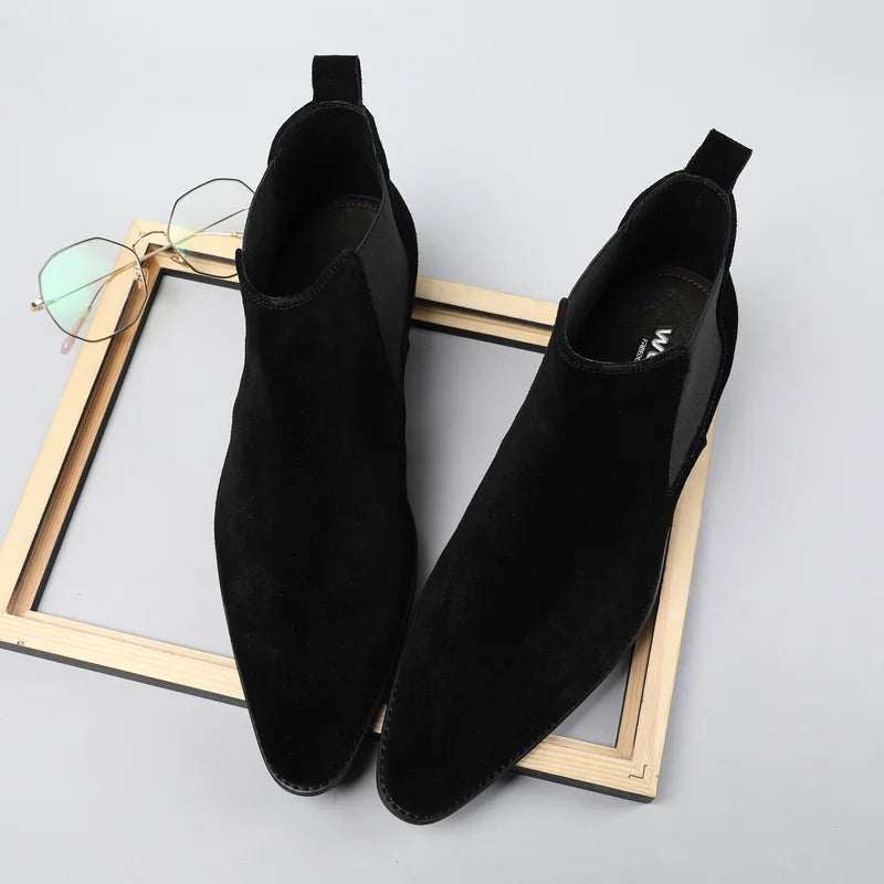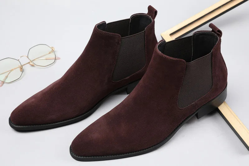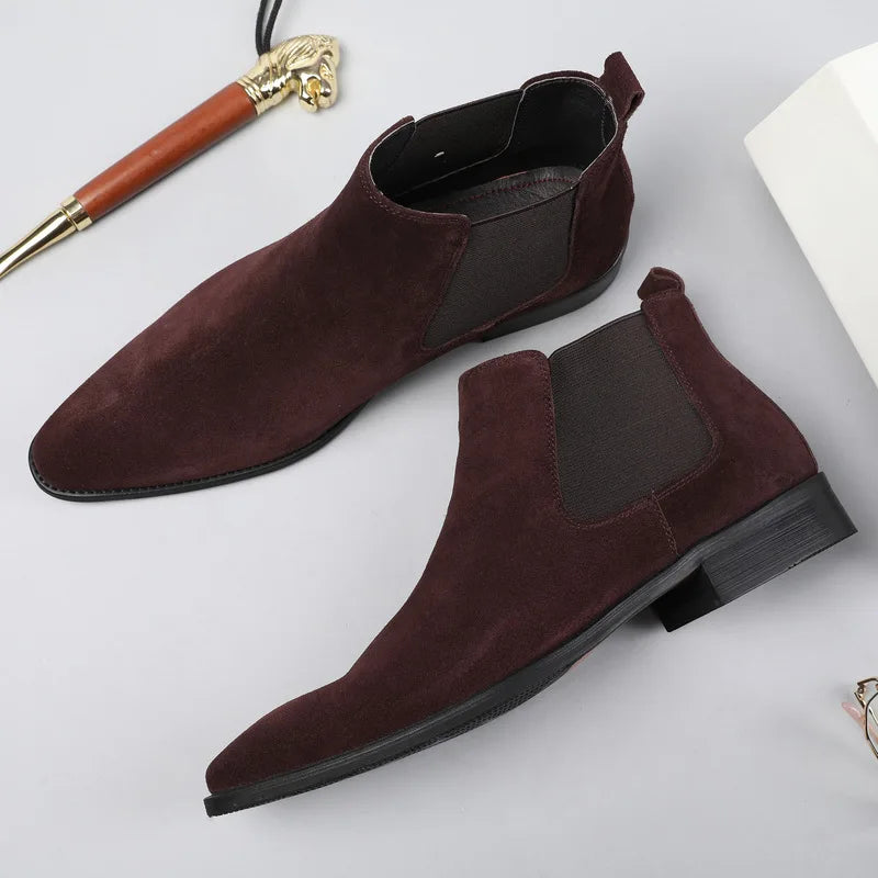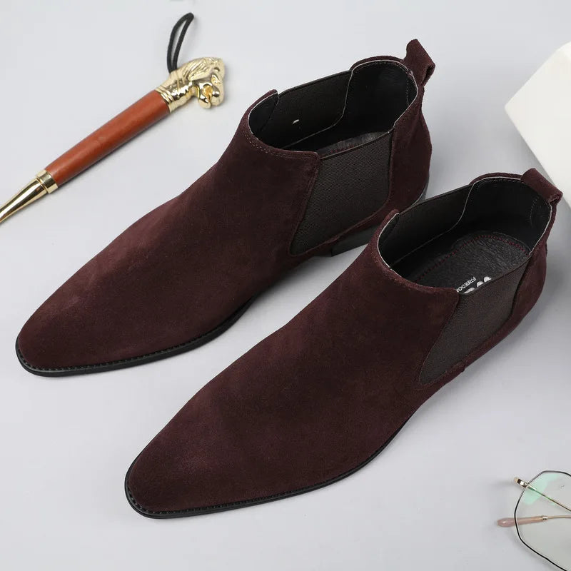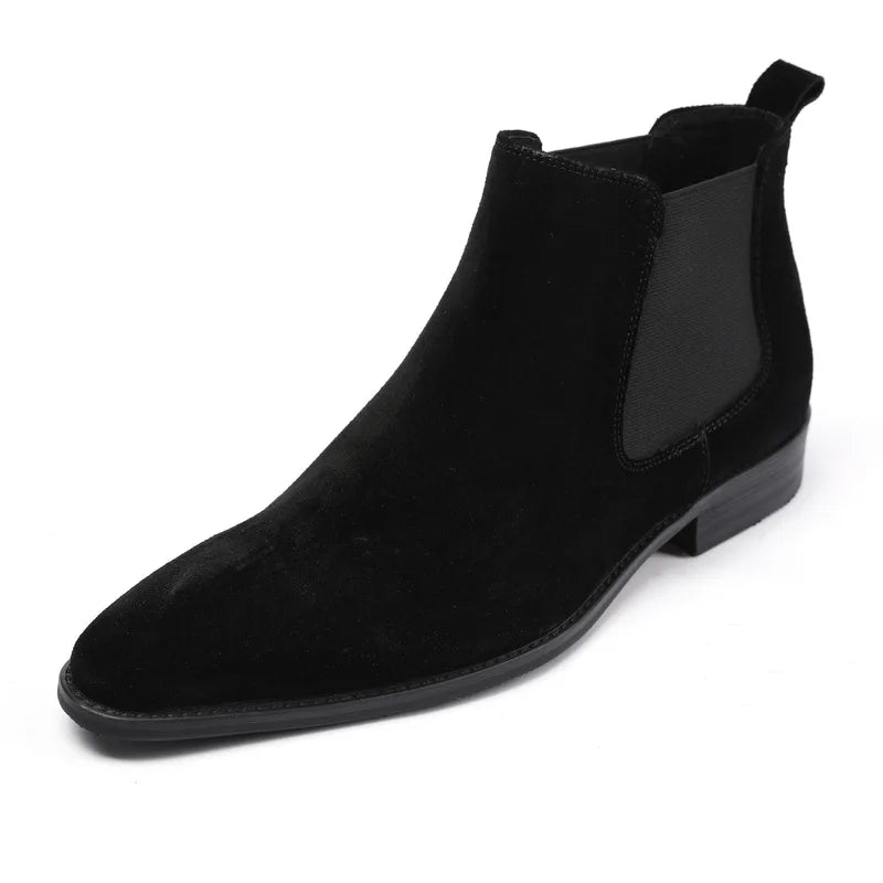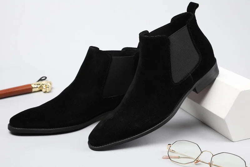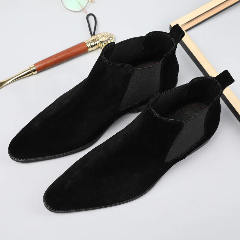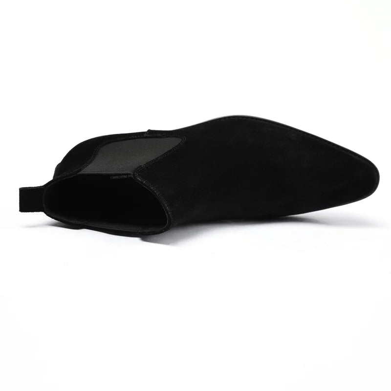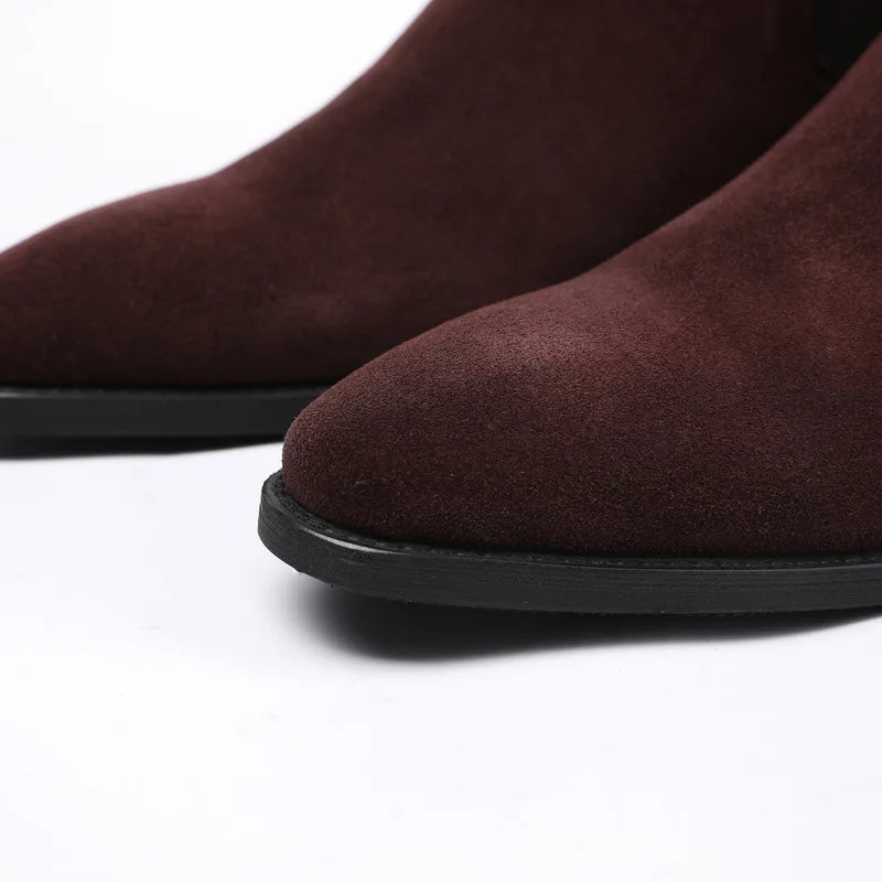 Men's Italian Genuine Leather Suede Pointed Toe Slip On Basic Ankle Boots