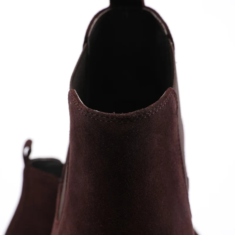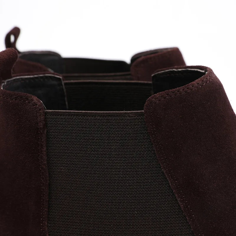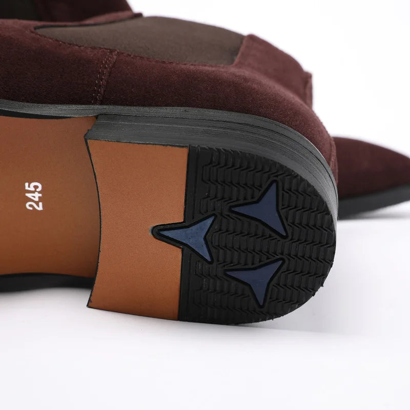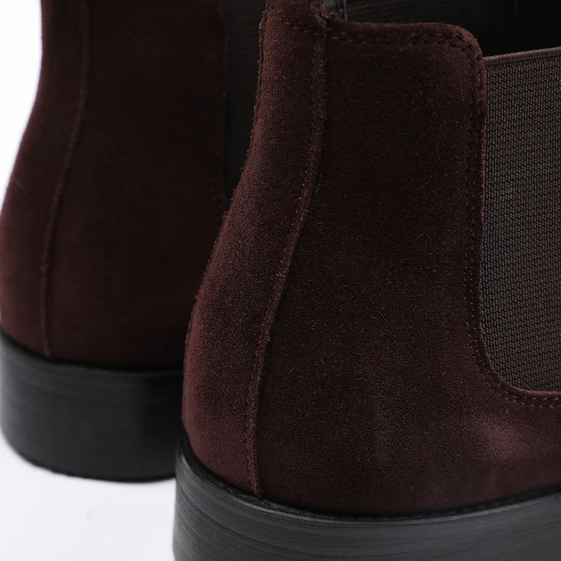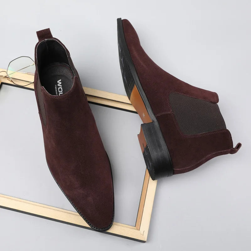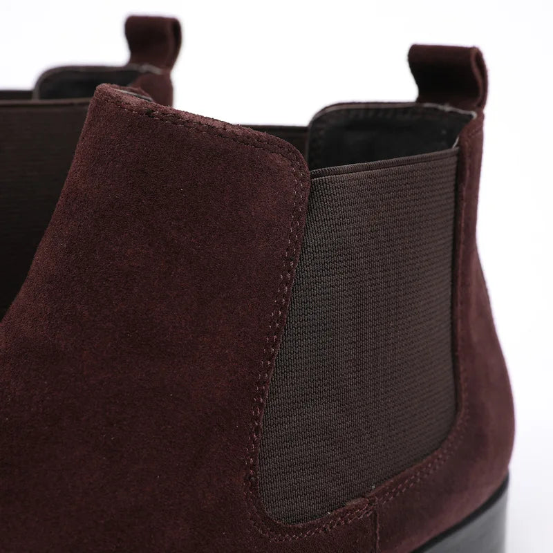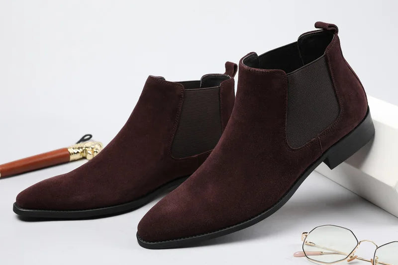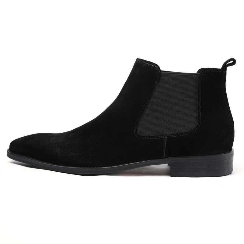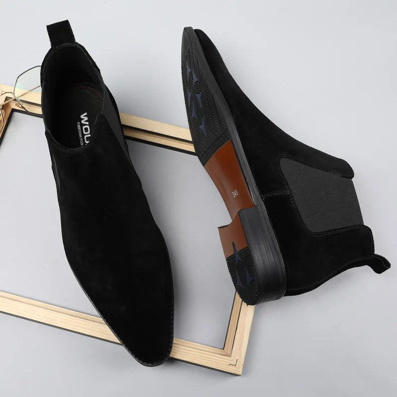 Men's Italian Genuine Leather Suede Pointed Toe Slip On Basic Ankle Boots