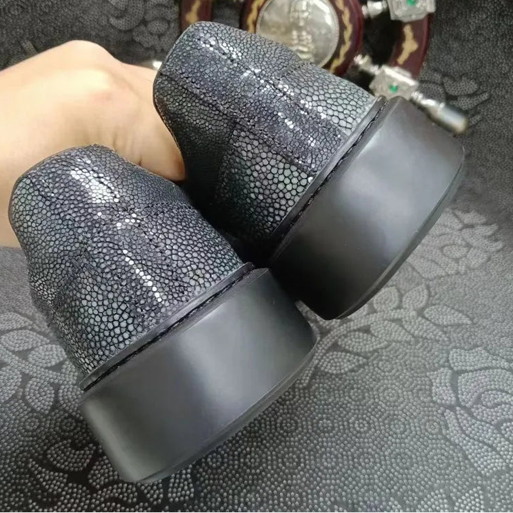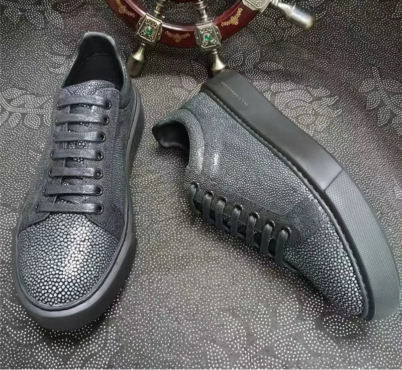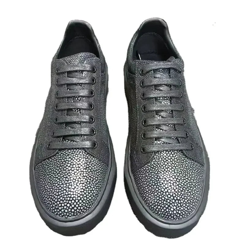 Men's Genuine Exotic Leather Stingray Skin Classic Lace-up Black Casual Shoes