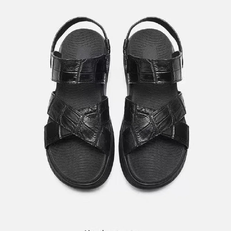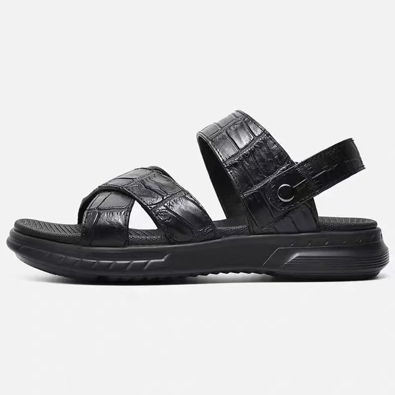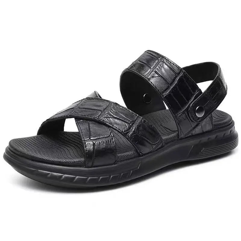 Men's Summer Leisure Fashion Crocodile Skin Genuine Leather Beach Sandals