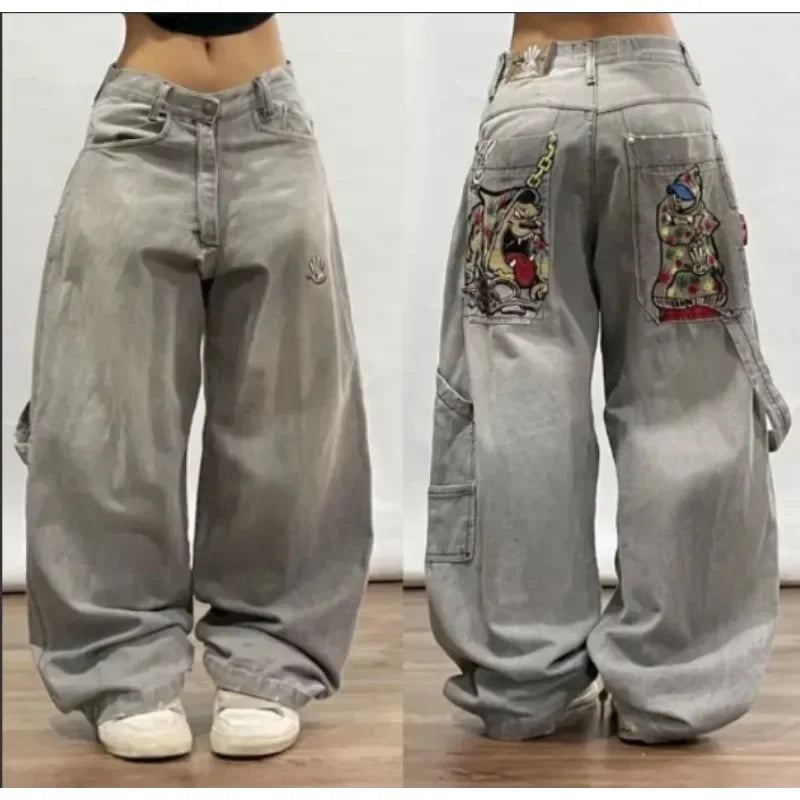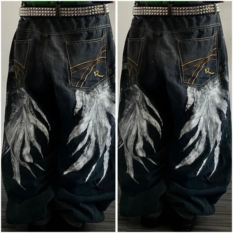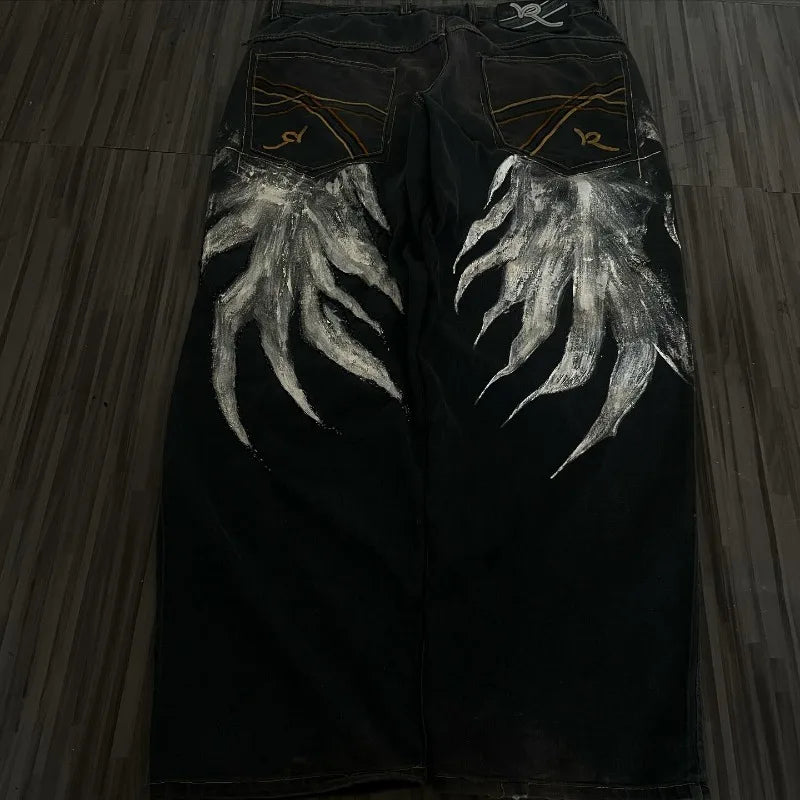 Wings Gothic Printed Embroidery Oversized Jeans Pants for Women