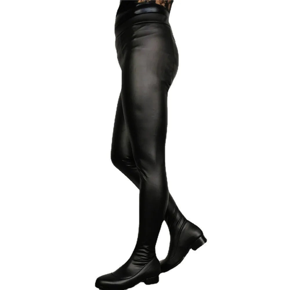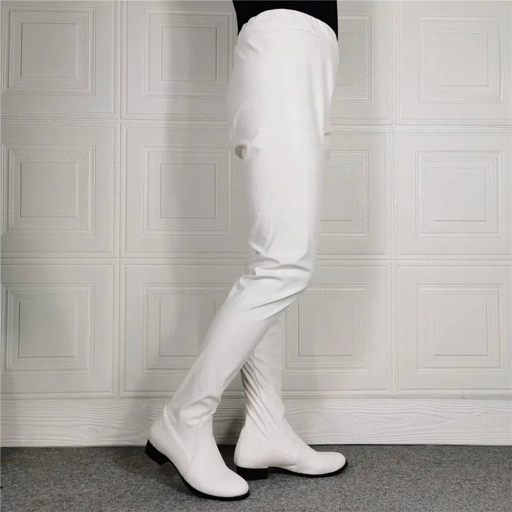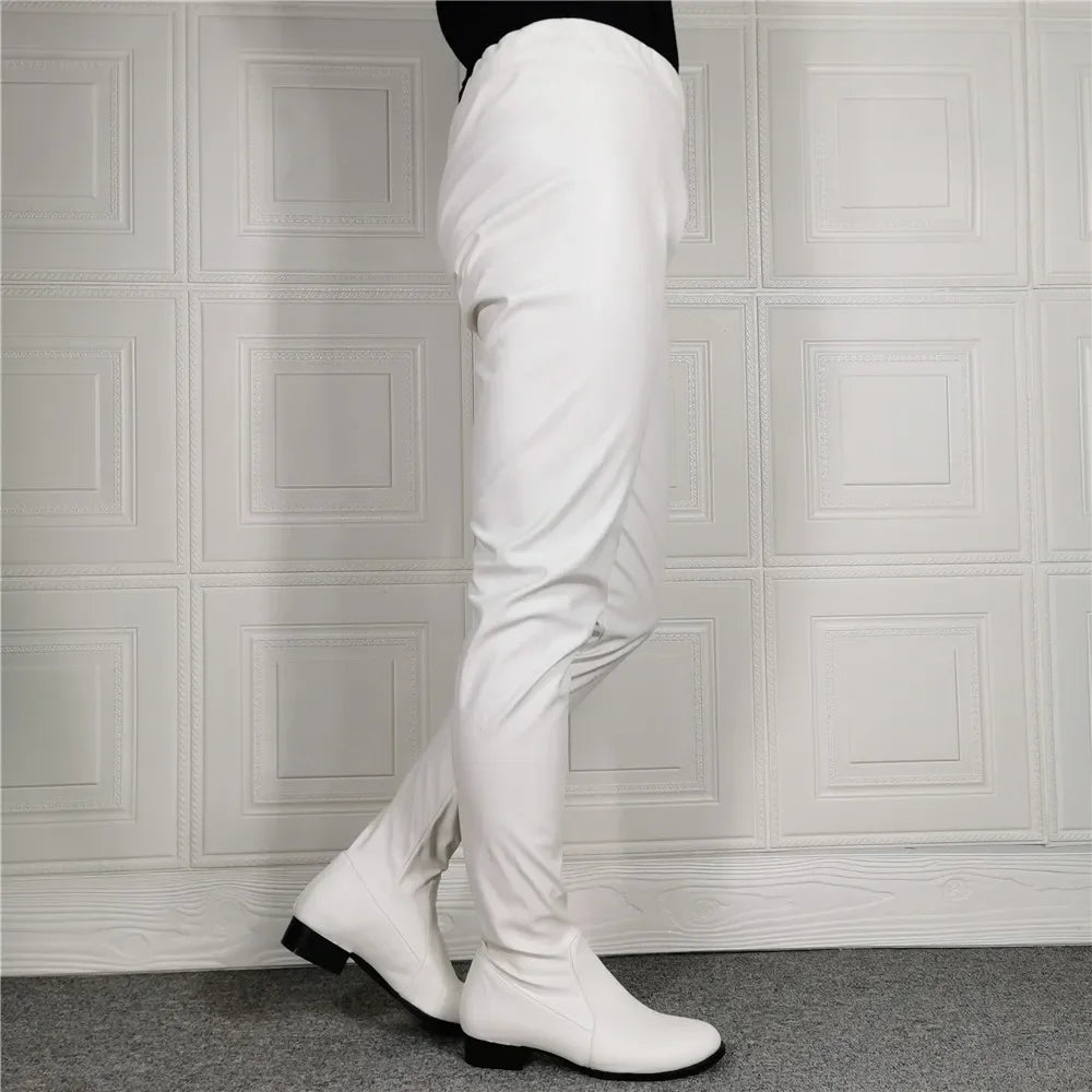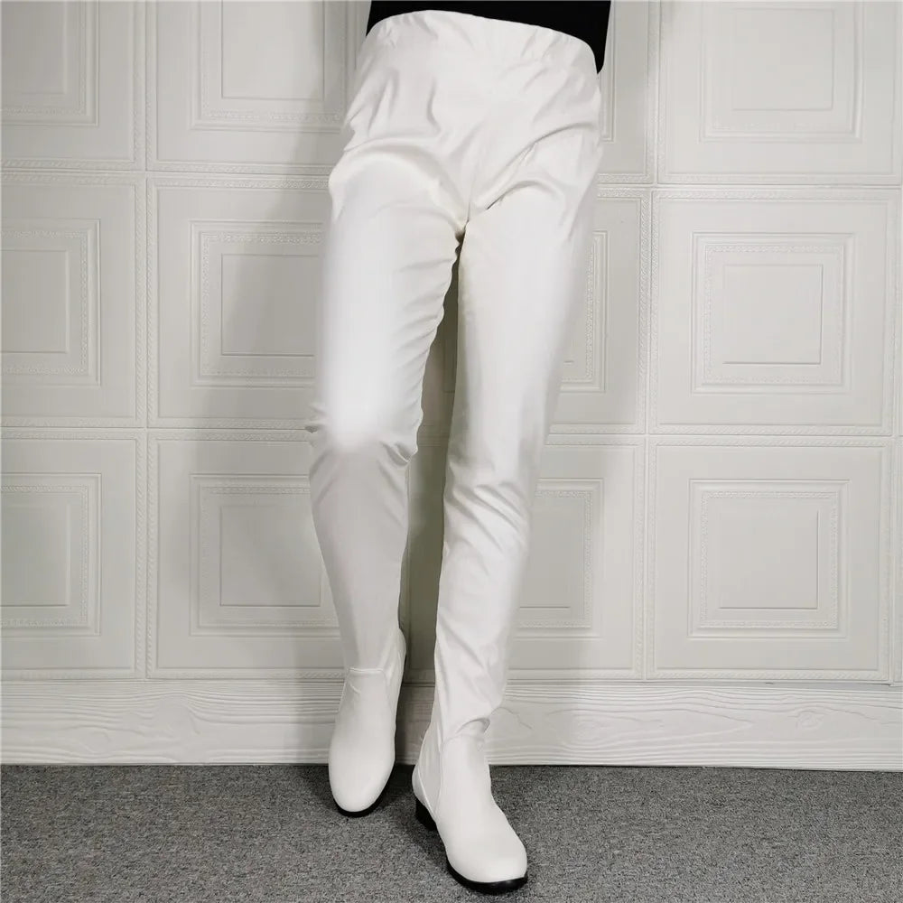 Women's Elastic Matte Leather Low Heels Round Toe High-Waist Pants Boots