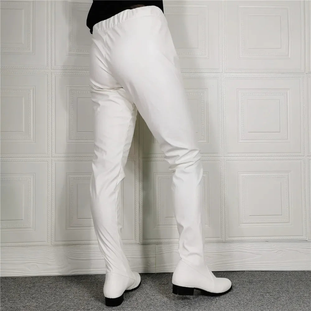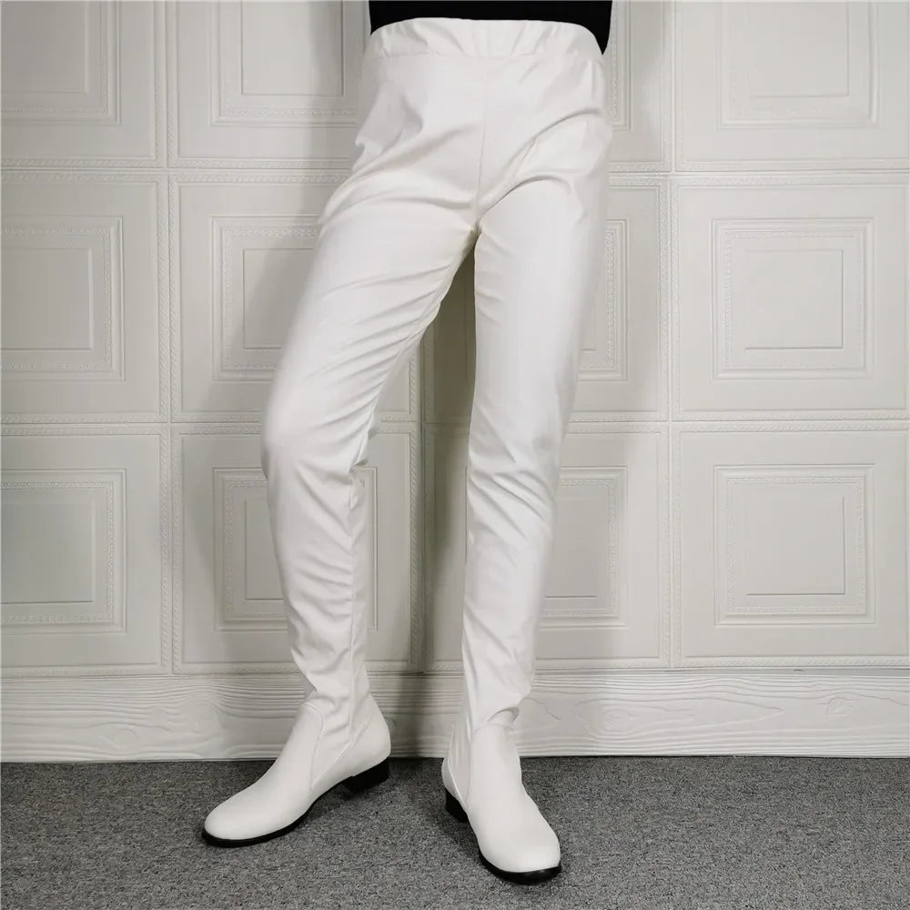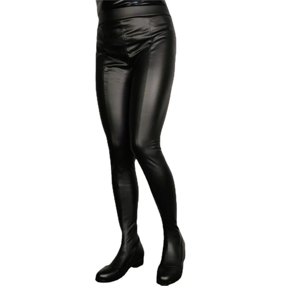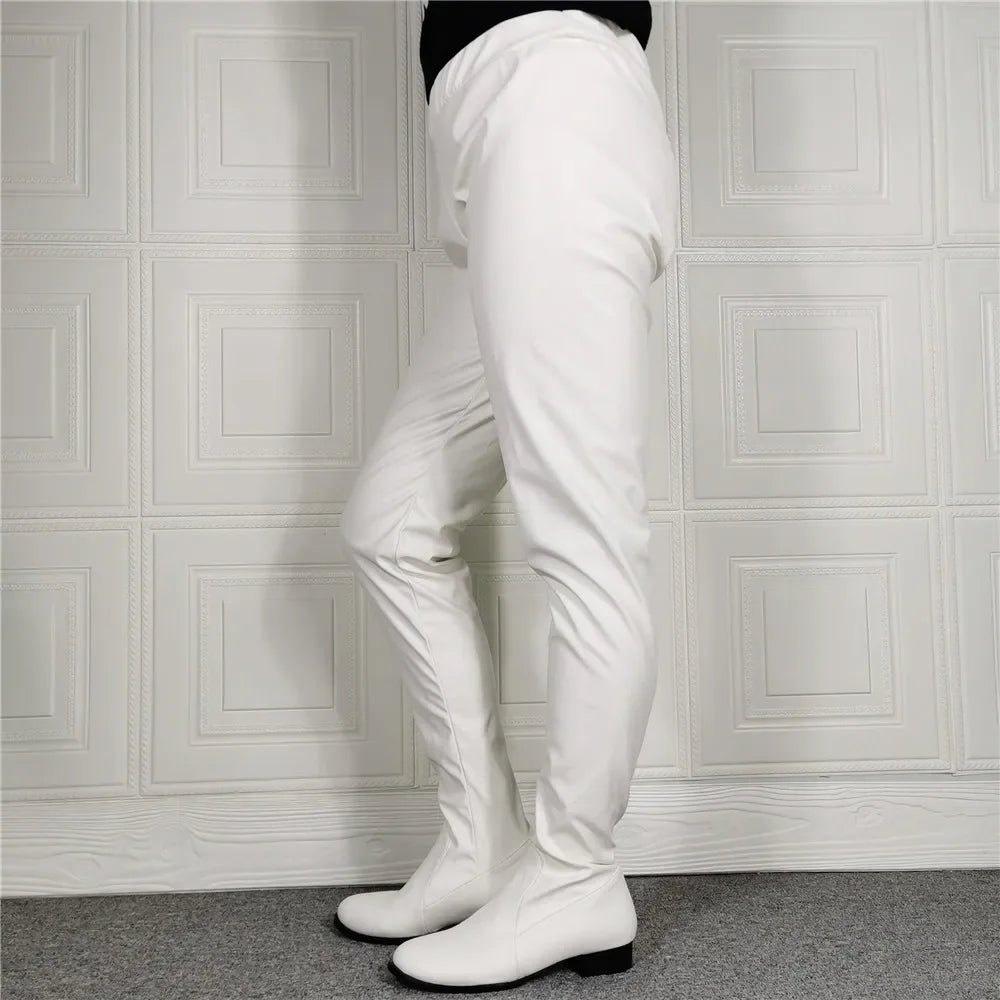 Women's Elastic Matte Leather Low Heels Round Toe High-Waist Pants Boots