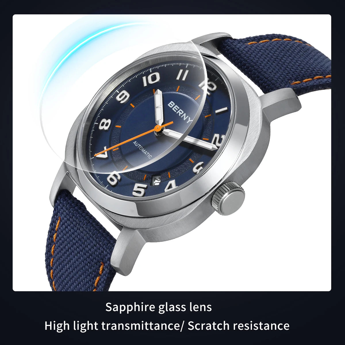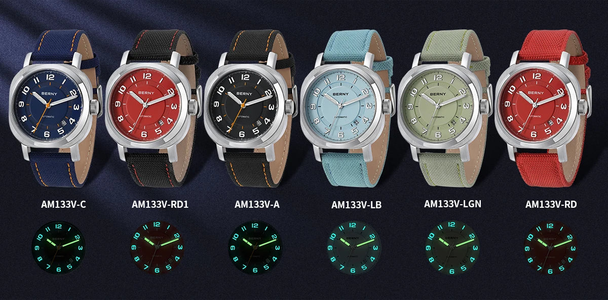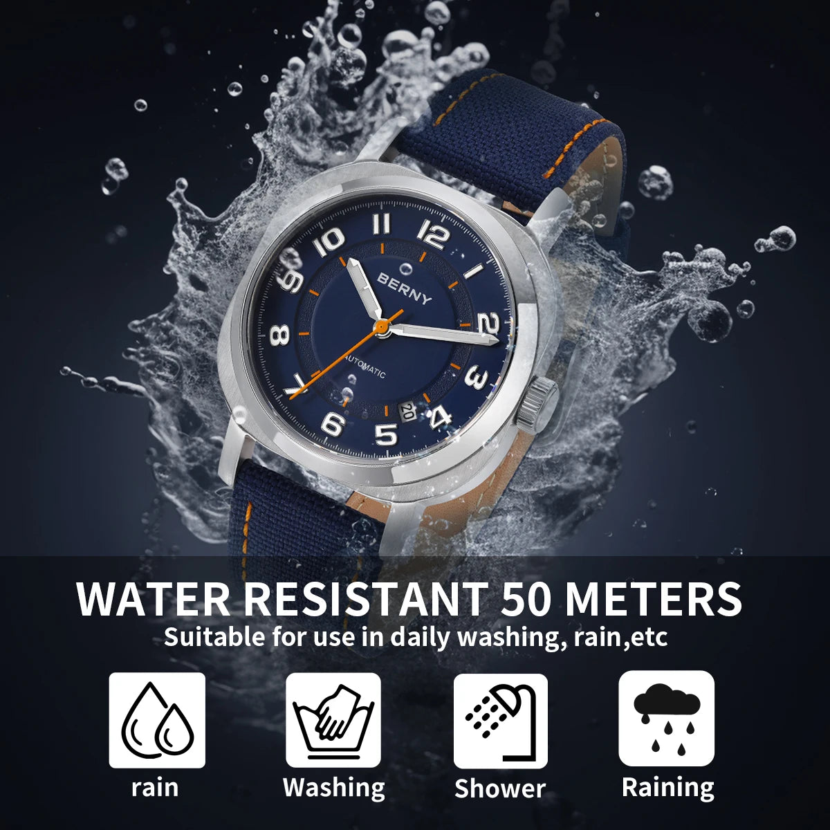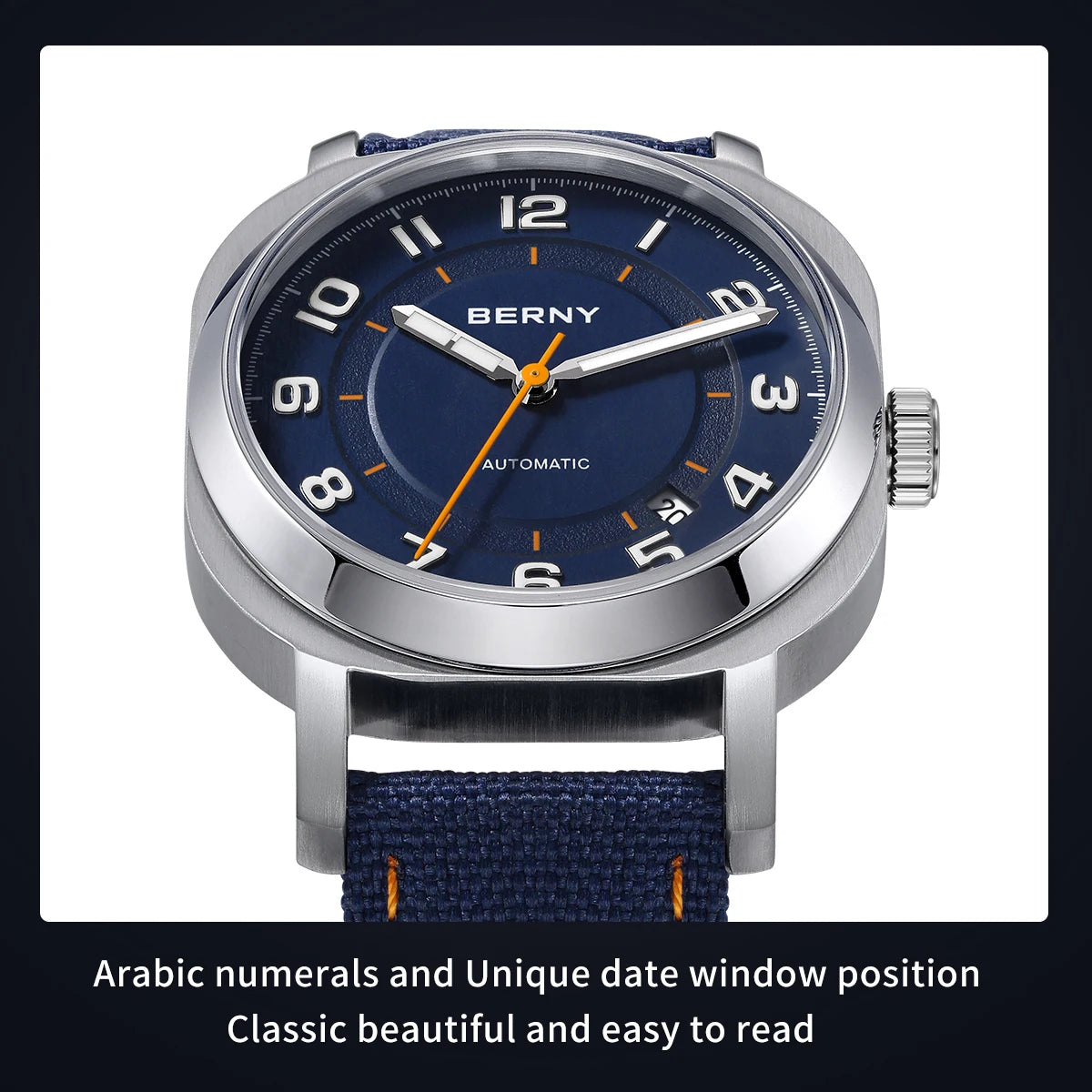 Stainless Steel Cushion Case Canvas Band Super Luminous Hands Mechanical Wristwatch for Men