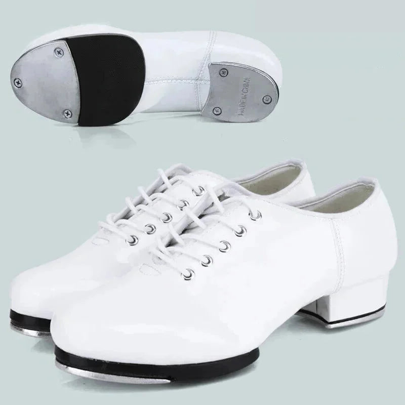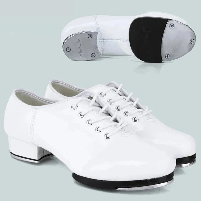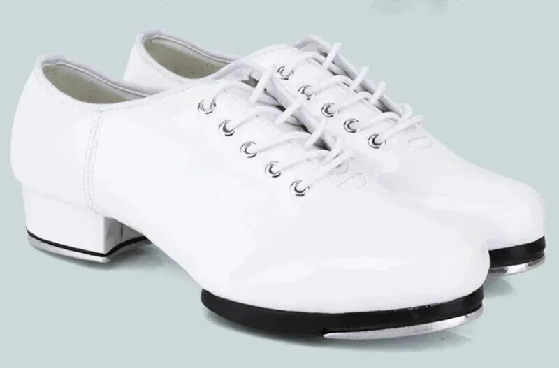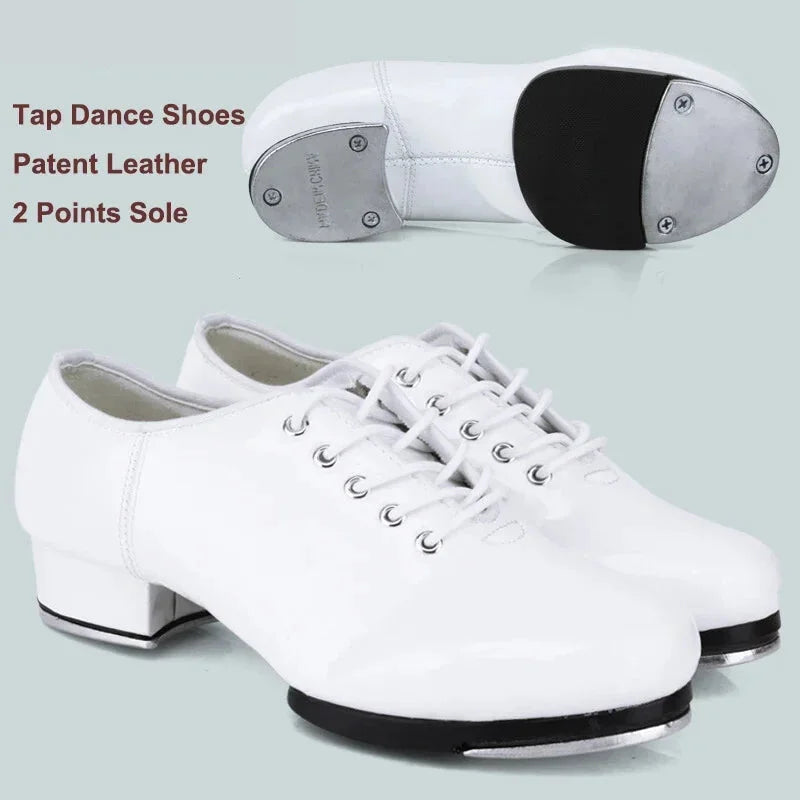 White Patent Soft Leather 2 Point sole Tap Dance Shoes for Men Women and Kids