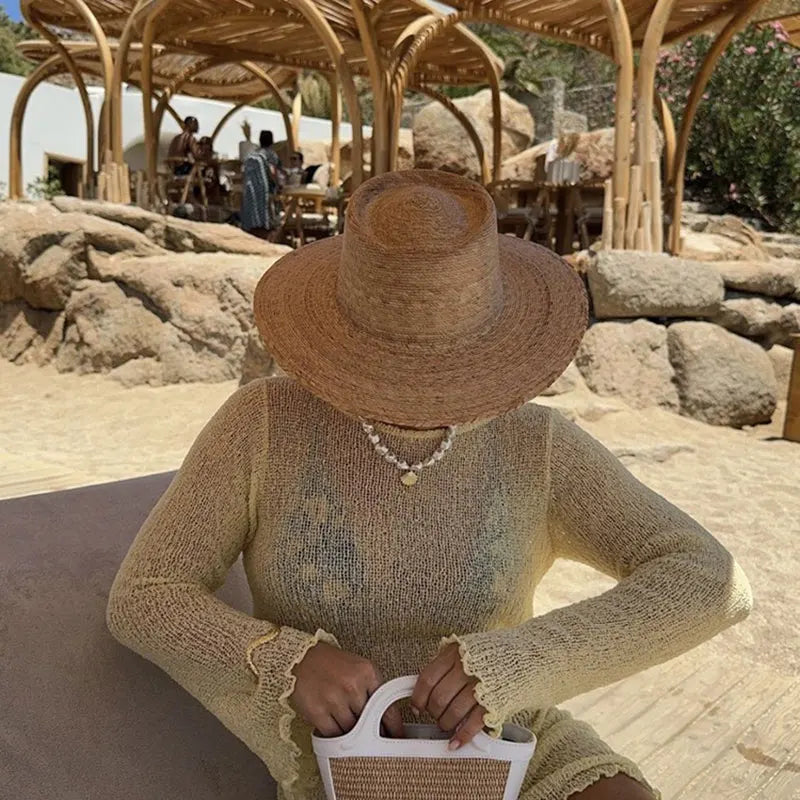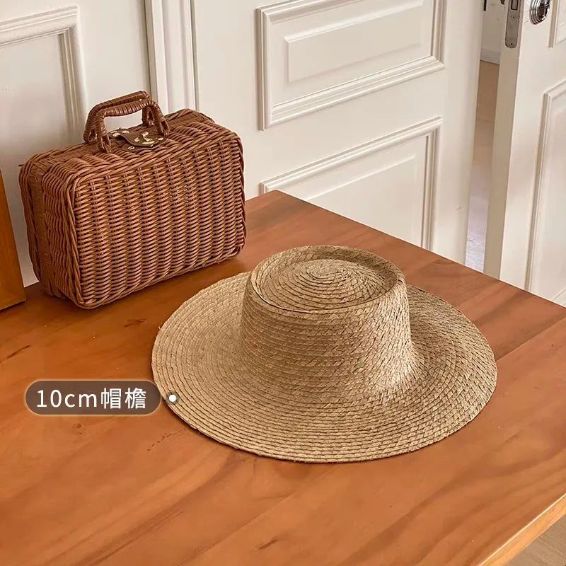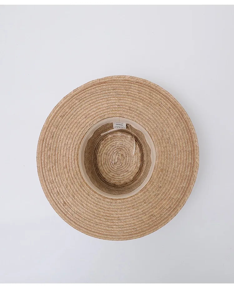 Designer Natural Sunflower Grass Straw Wide Brim Fedora Sun Hat for Women