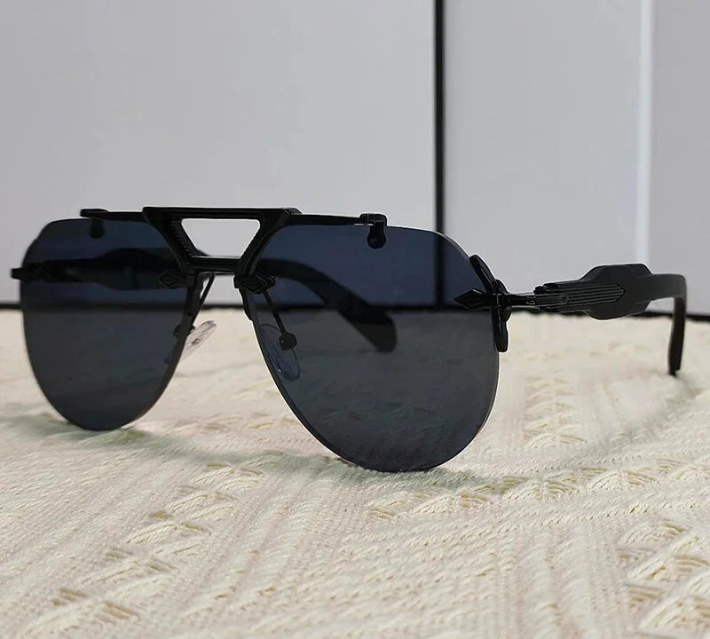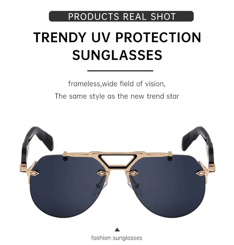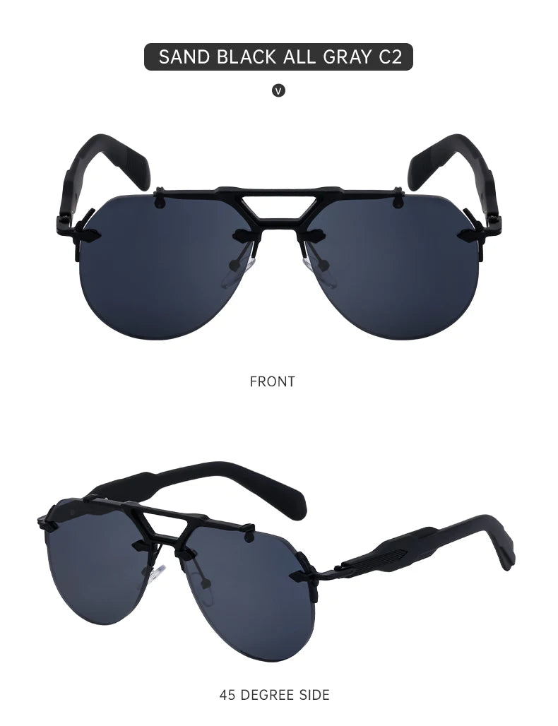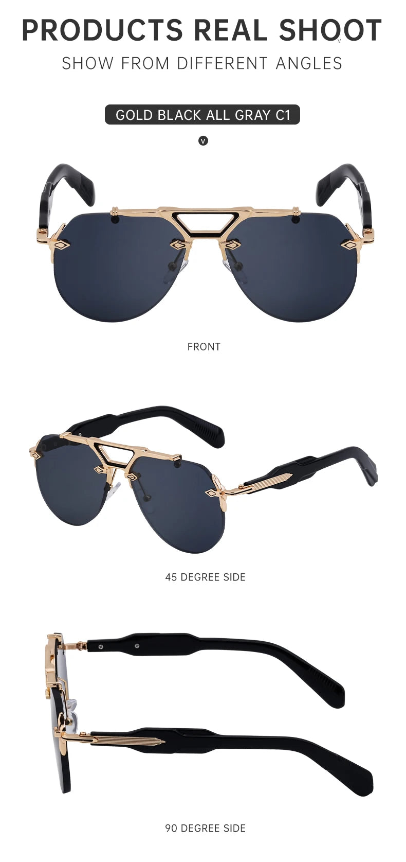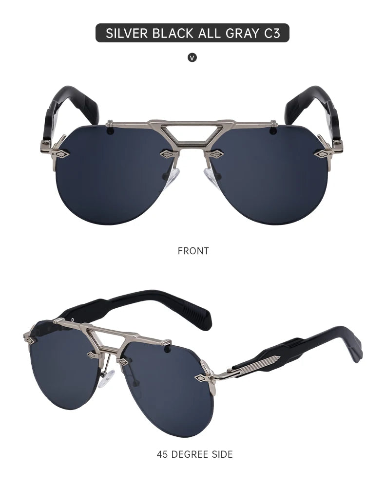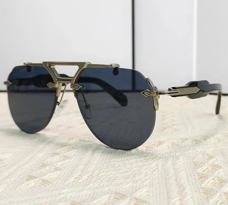 Designer Vintage Style Oval Metal Frame Punk Semi-Rimless Luxury Sunglasses for Men