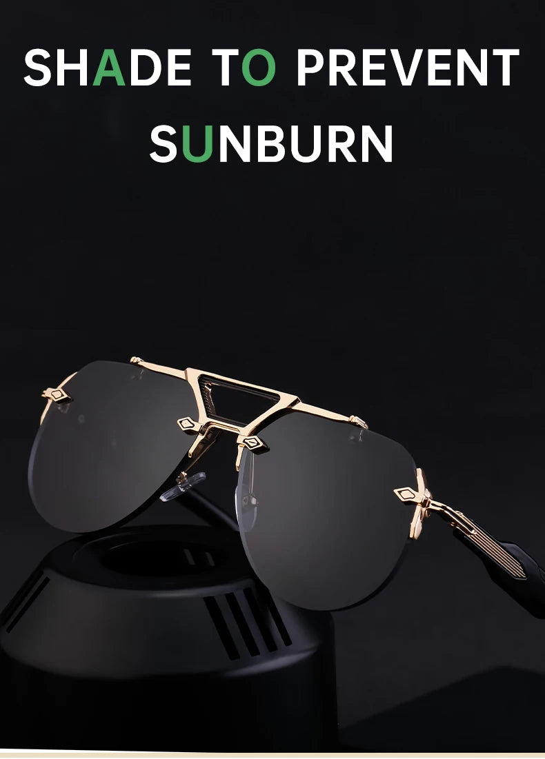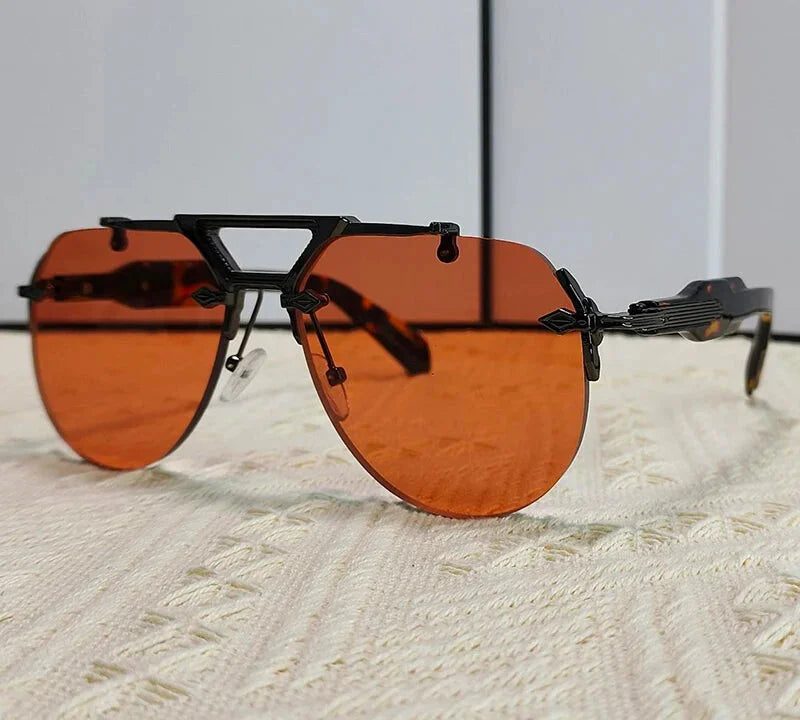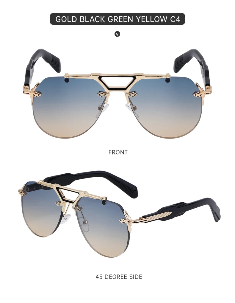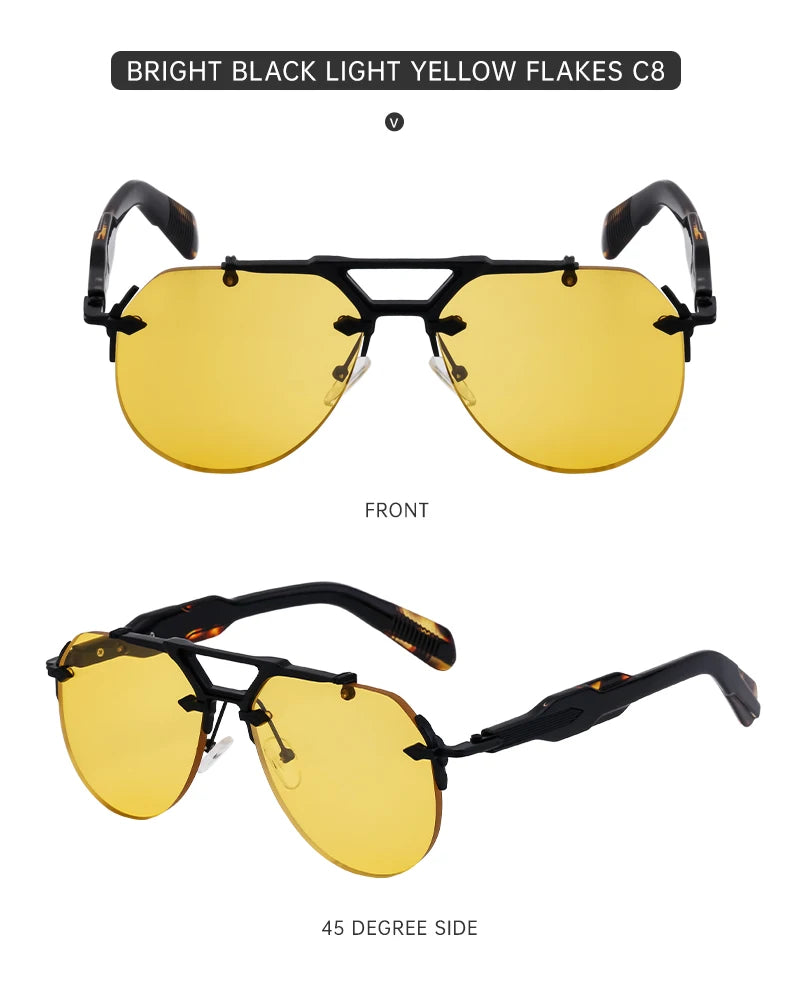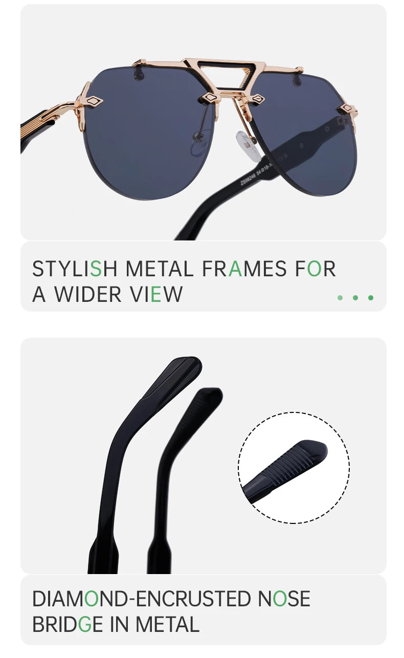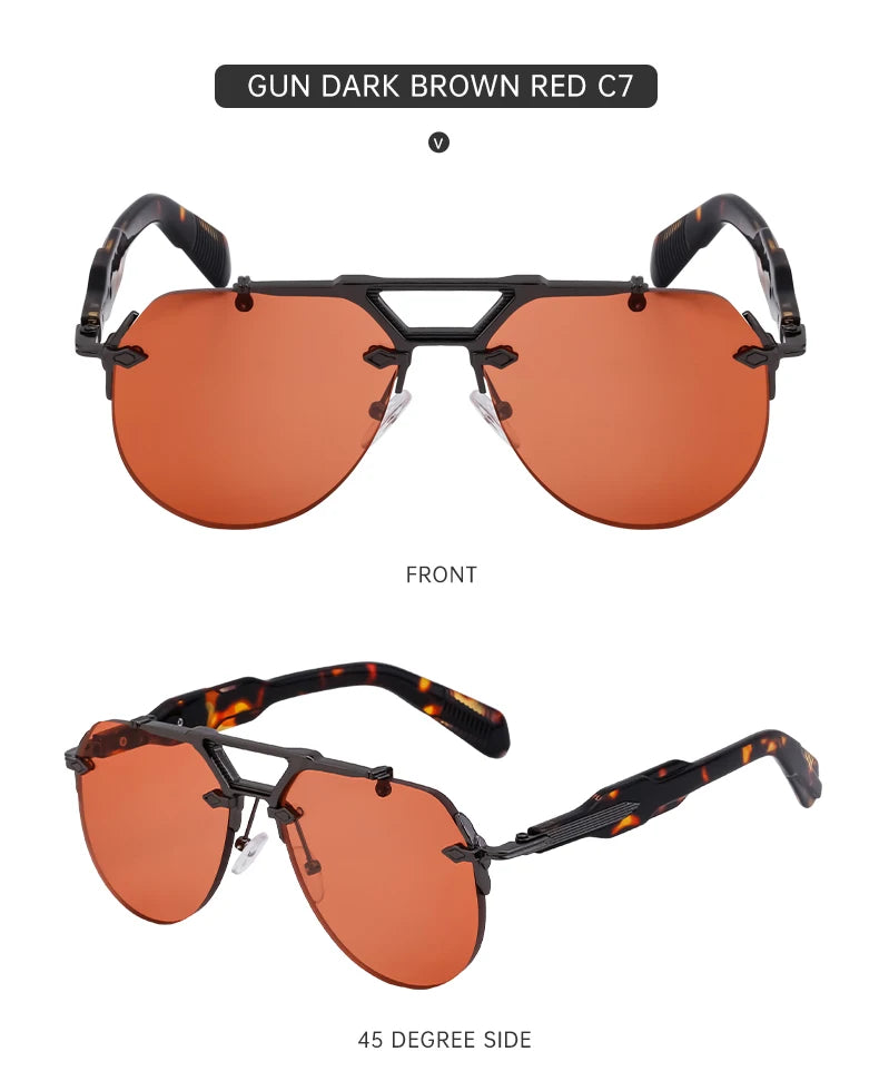 Designer Vintage Style Oval Metal Frame Punk Semi-Rimless Luxury Sunglasses for Men