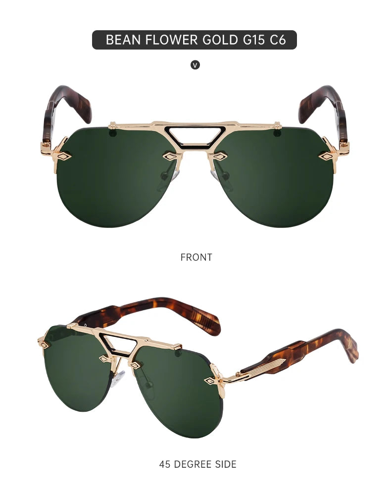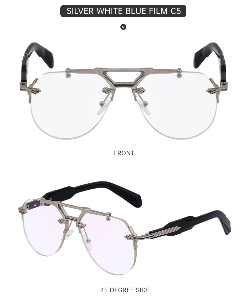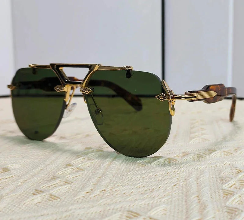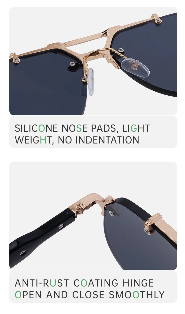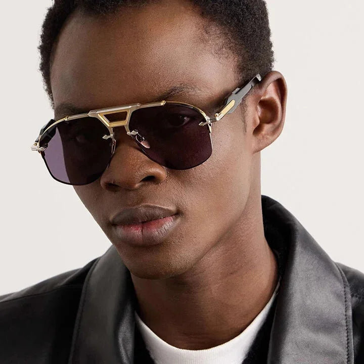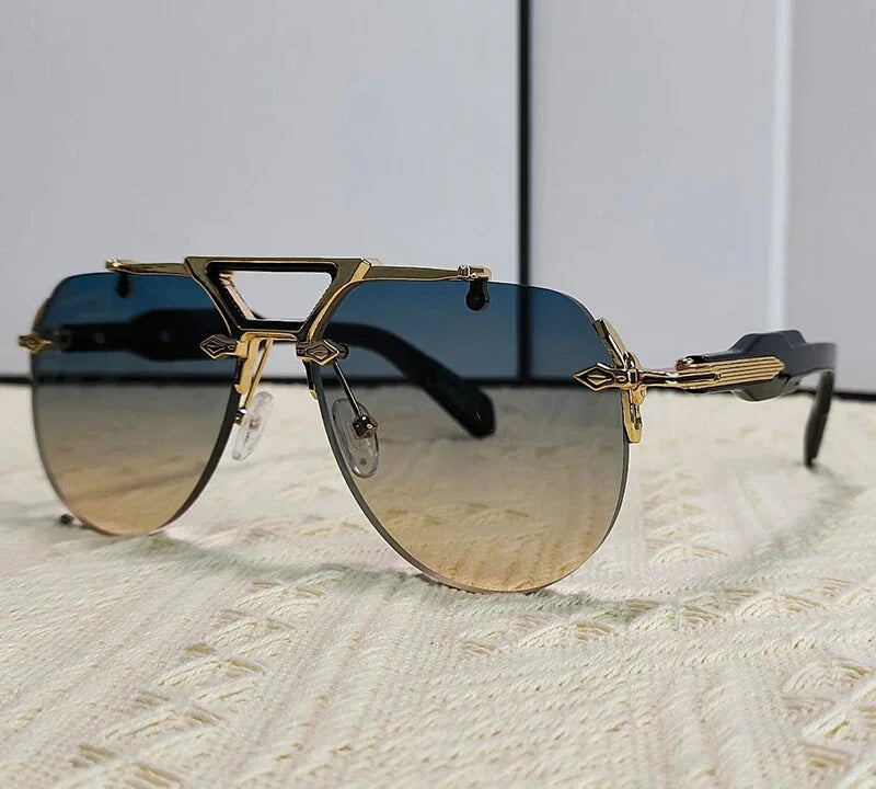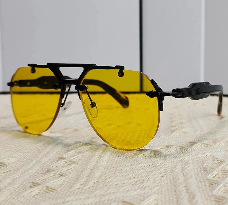 Designer Vintage Style Oval Metal Frame Punk Semi-Rimless Luxury Sunglasses for Men