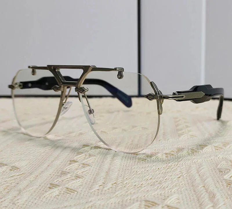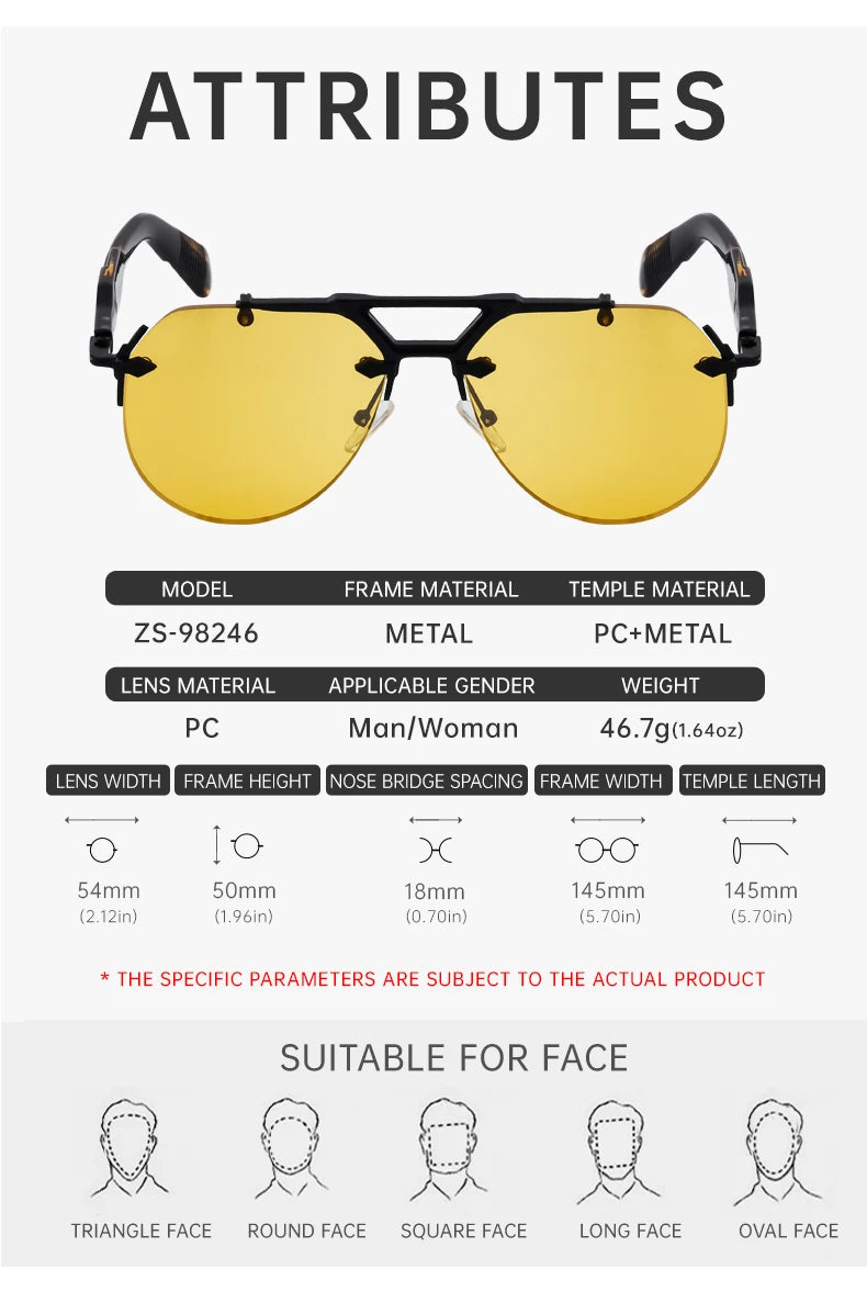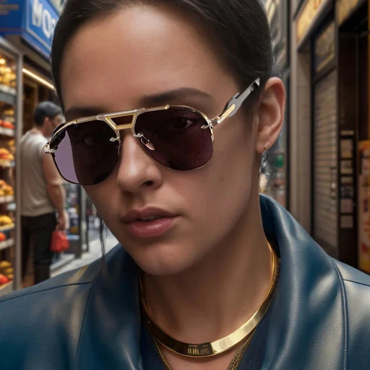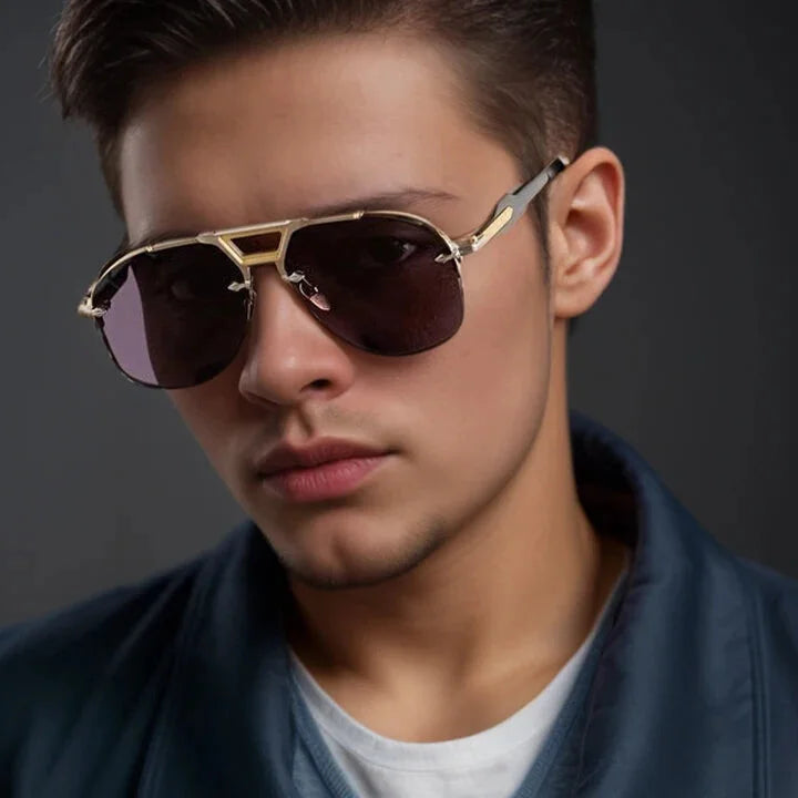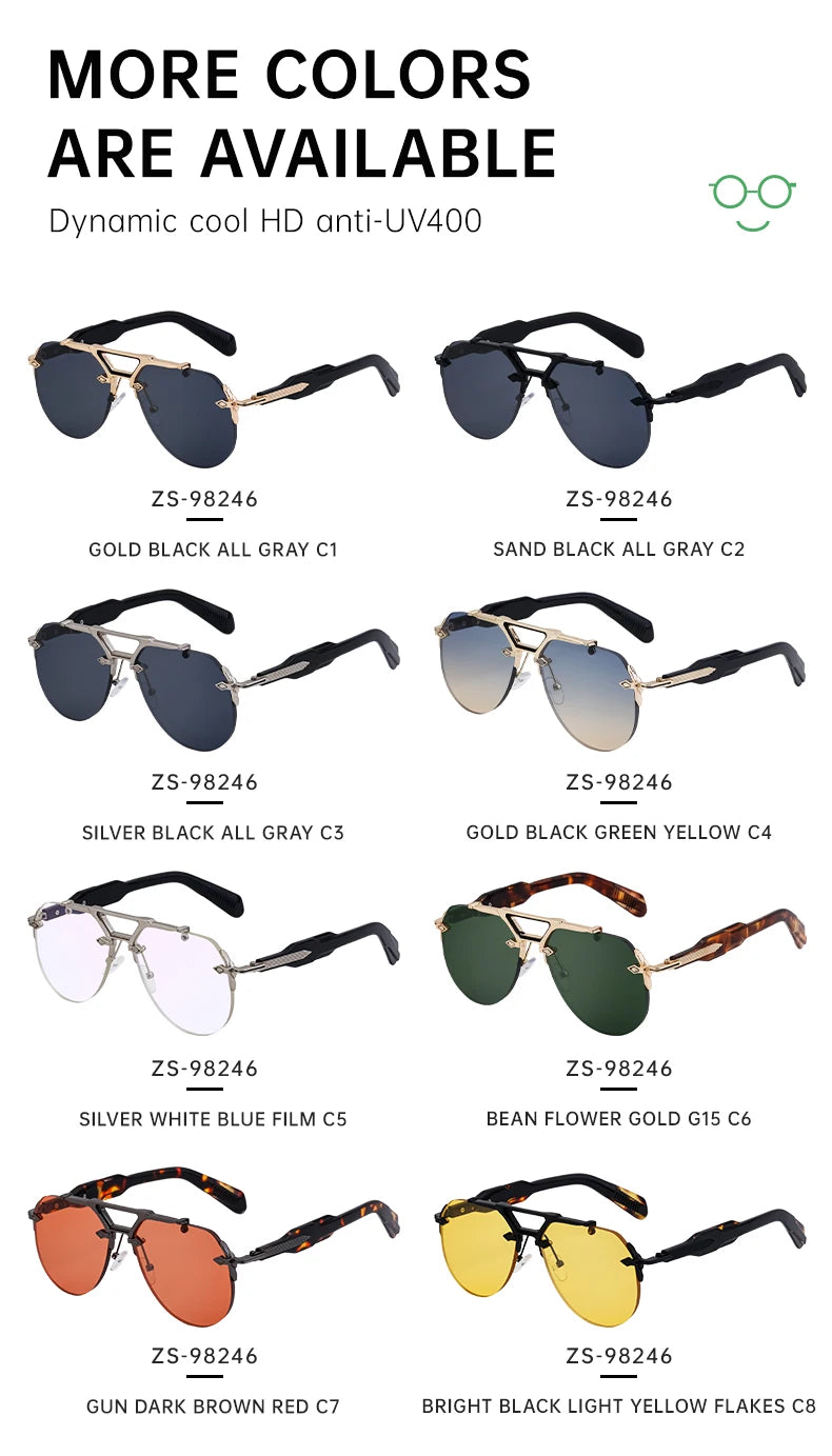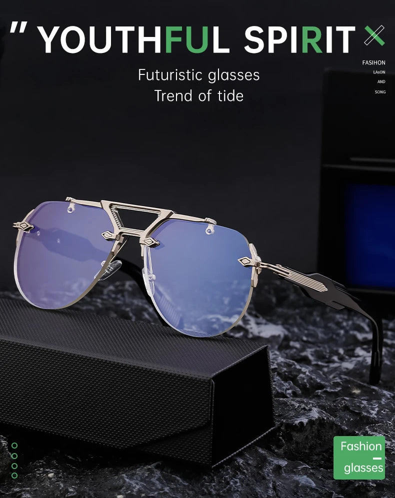 Designer Vintage Style Oval Metal Frame Punk Semi-Rimless Luxury Sunglasses for Men