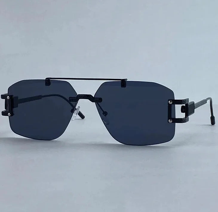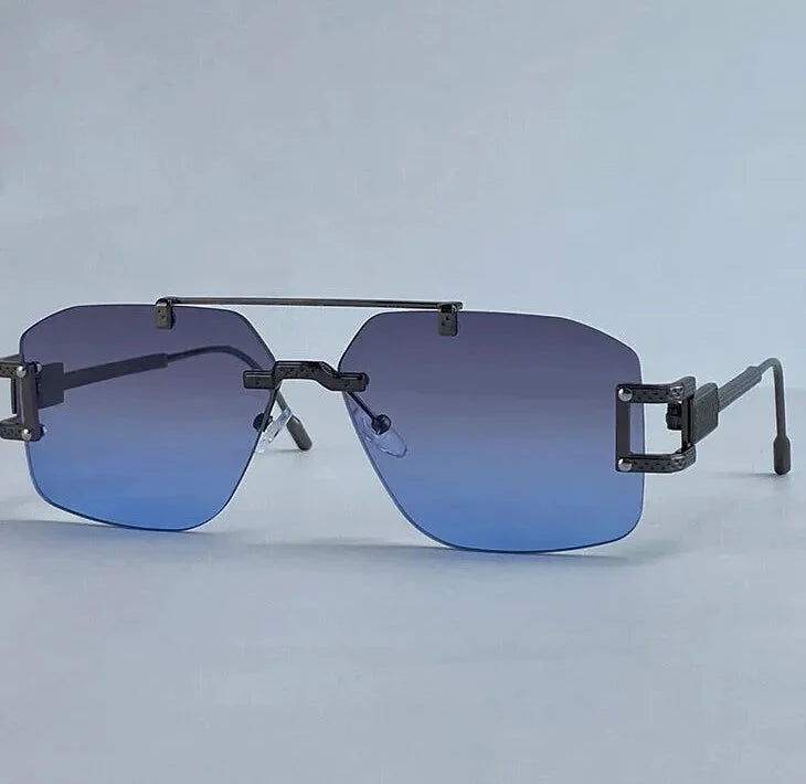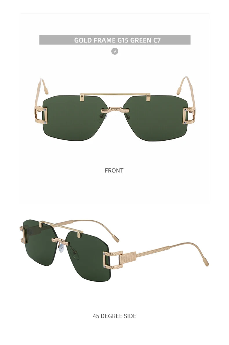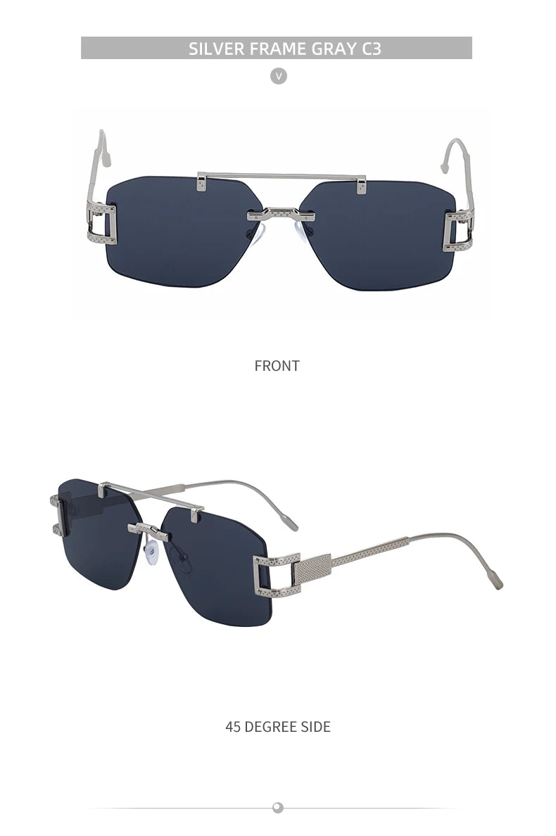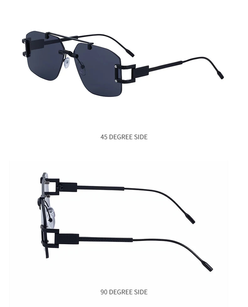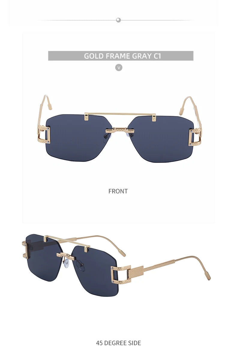Polygon Rimless Luxury Vintage Punk Double Beam UV400 Sunglasses for Men