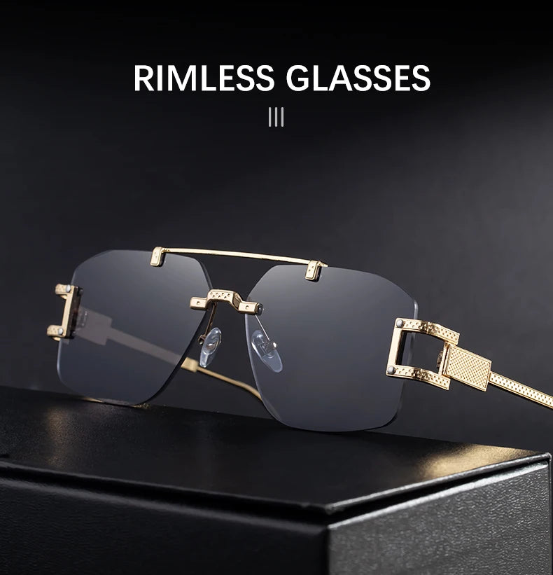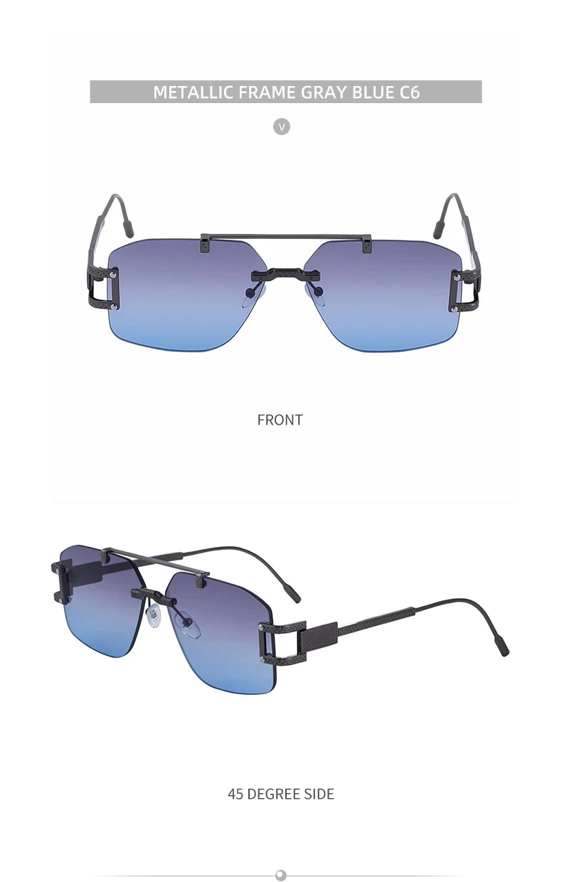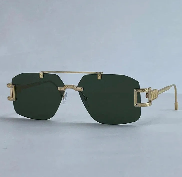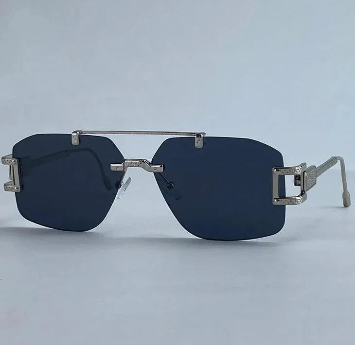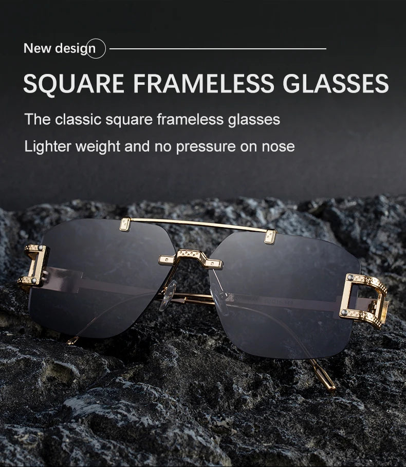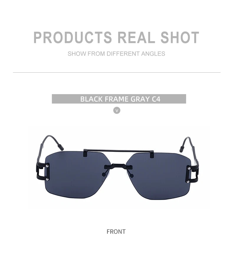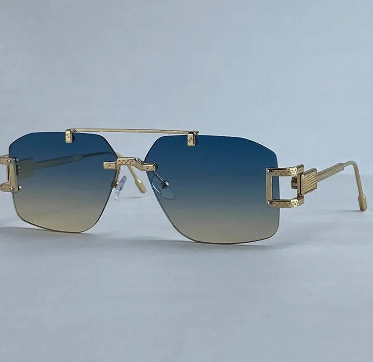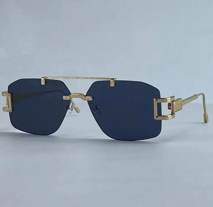 Polygon Rimless Luxury Vintage Punk Double Beam UV400 Sunglasses for Men