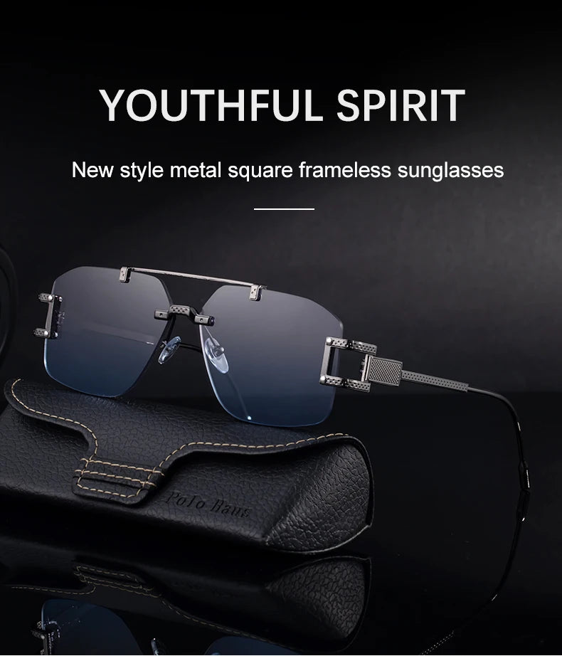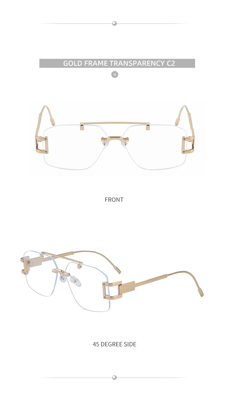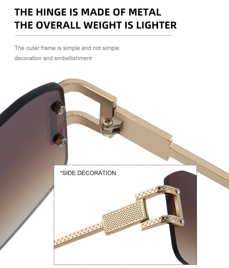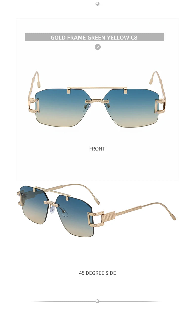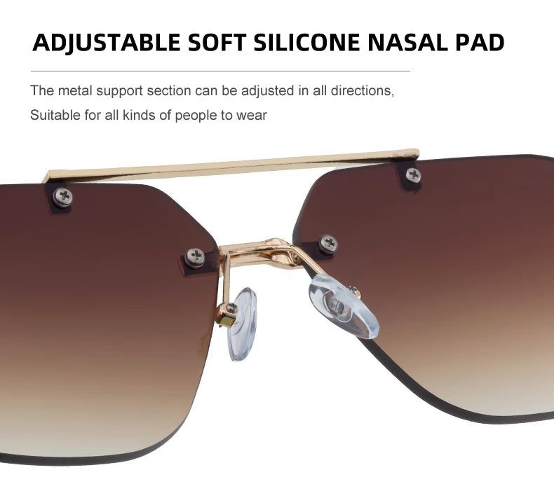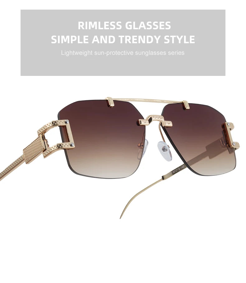 Polygon Rimless Luxury Vintage Punk Double Beam UV400 Sunglasses for Men
