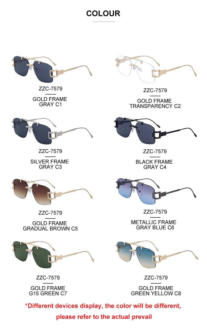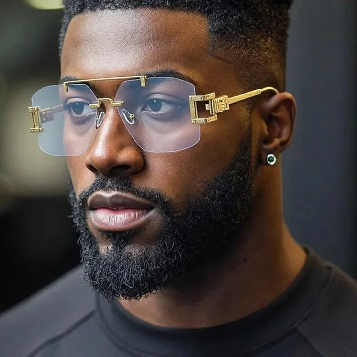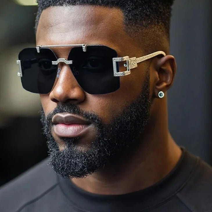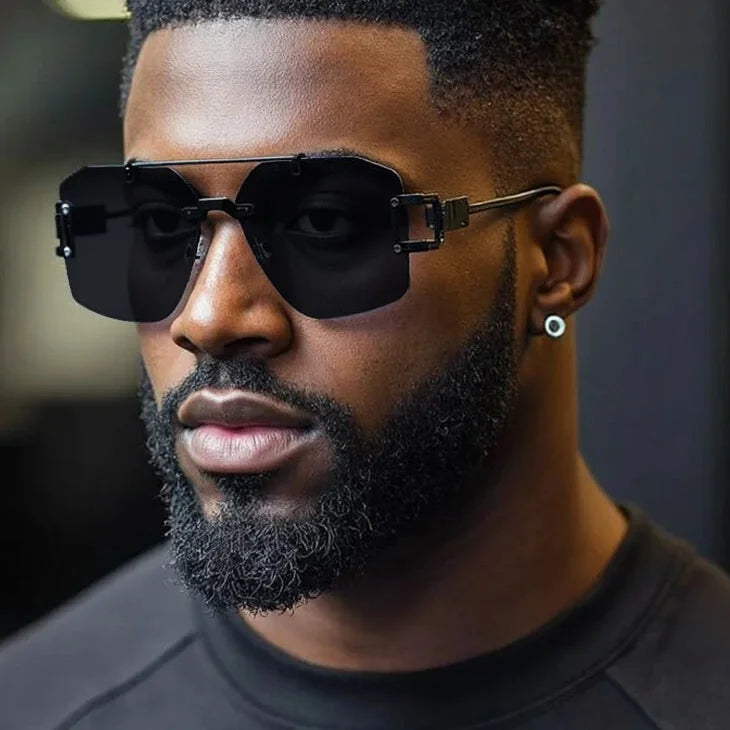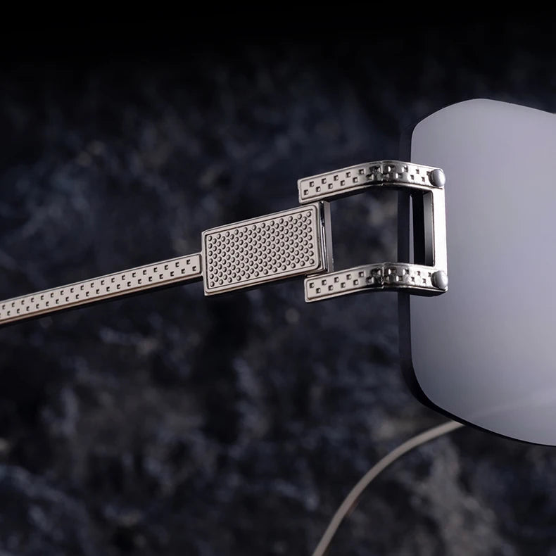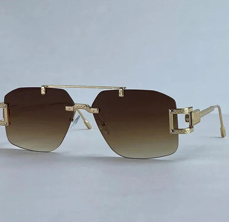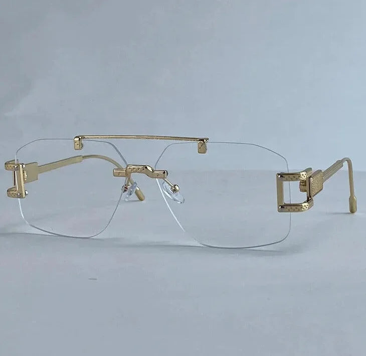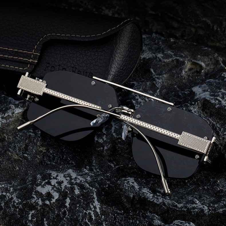Polygon Rimless Luxury Vintage Punk Double Beam UV400 Sunglasses for Men