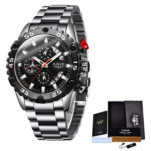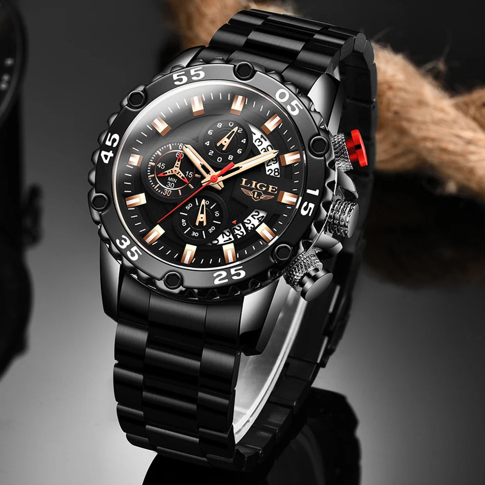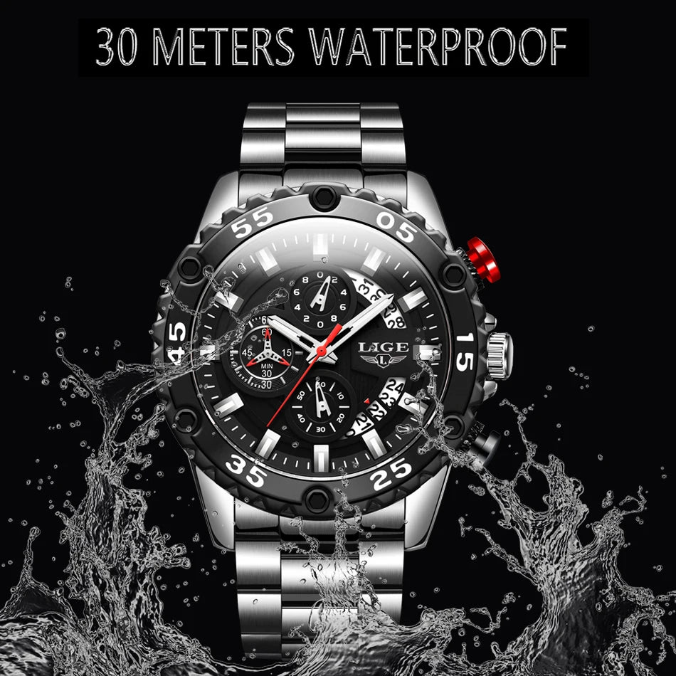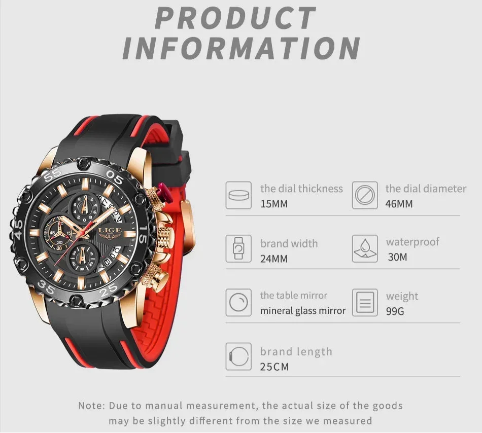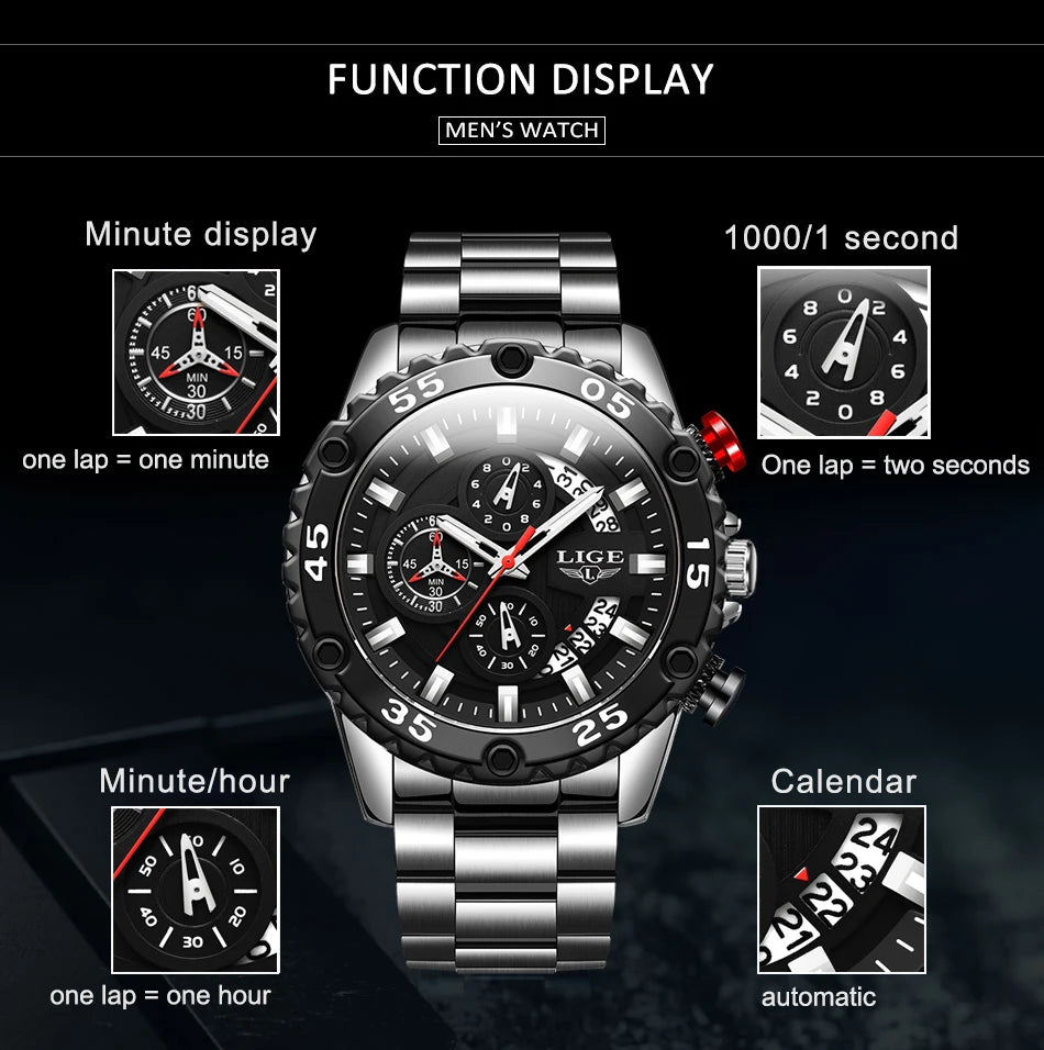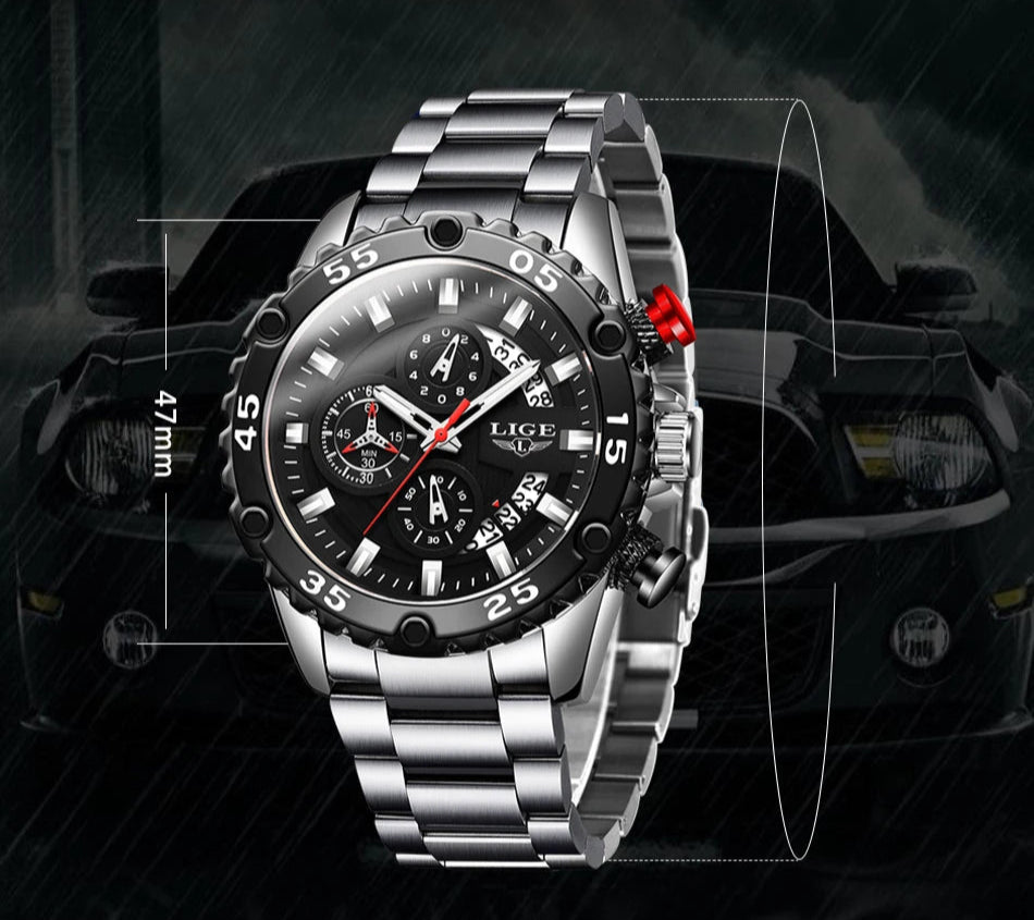 Looking for a fantastic men's watch? Then this is for you. Made with a silicone strap and stainless steel casing, this watch sits comfortably on your wrist. The big dial, along with luminous hands, makes it easy to read the time in the light and in the darkness. Designed with stop watch, shock resistance, auto date, chronograph, complete calendar and water resistance, this watch is more than just a fashion accessory. Buy now!