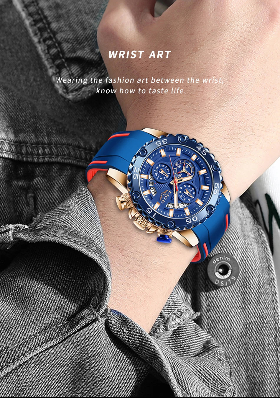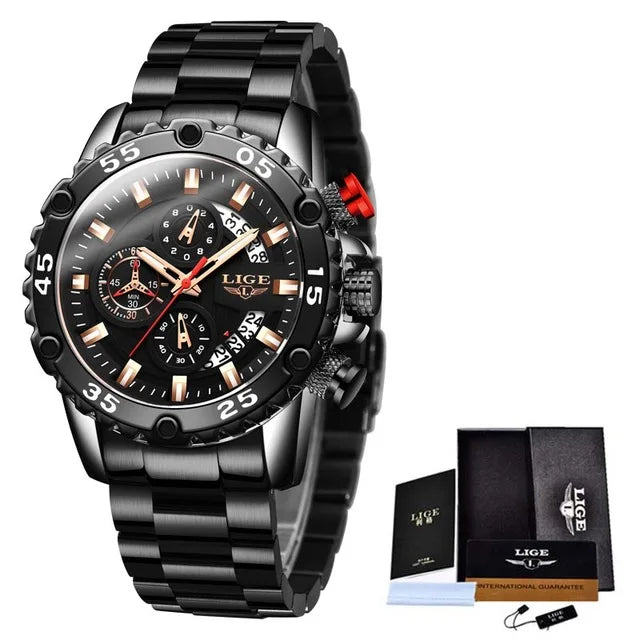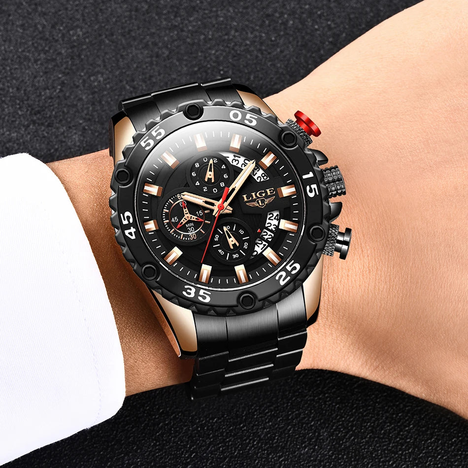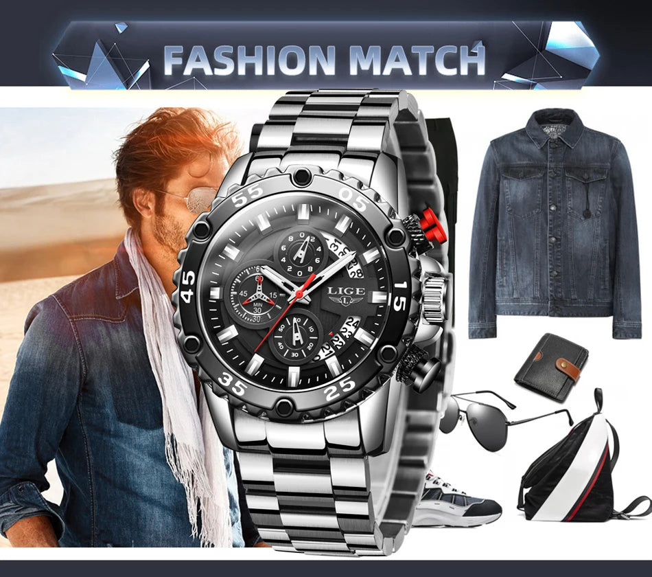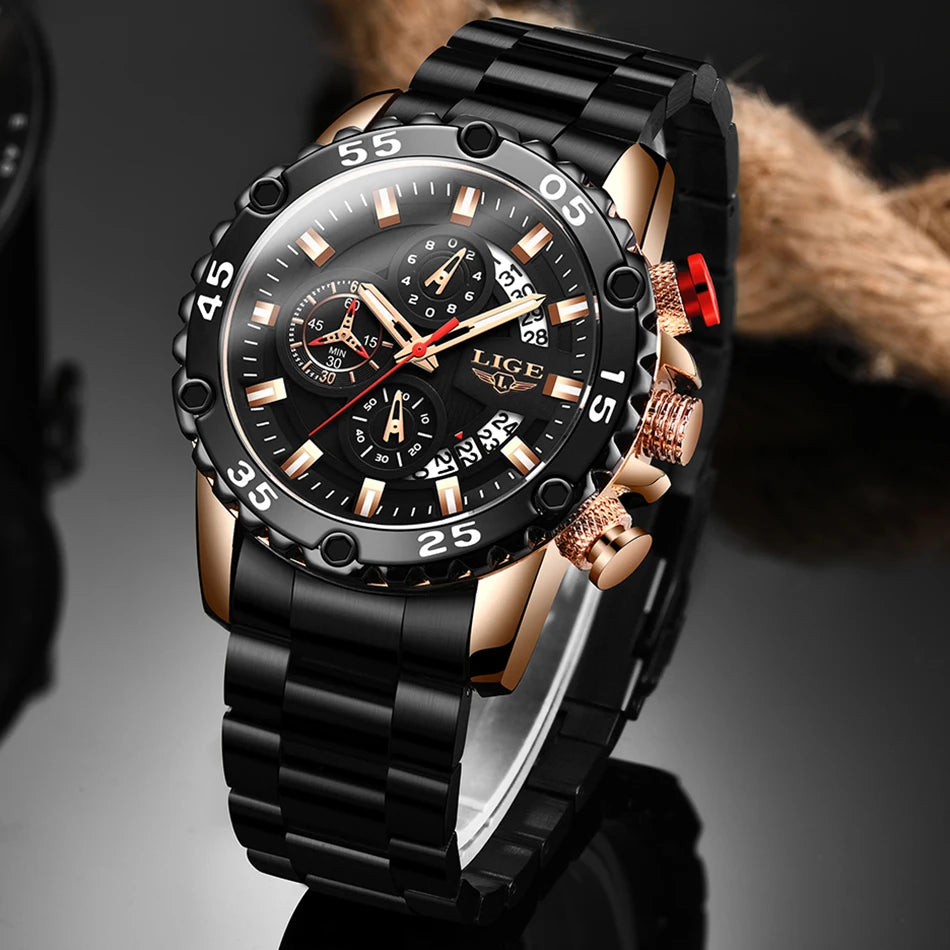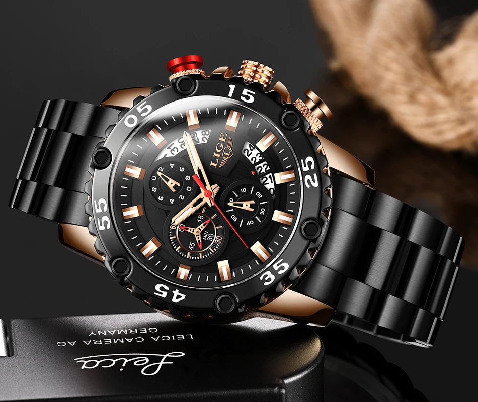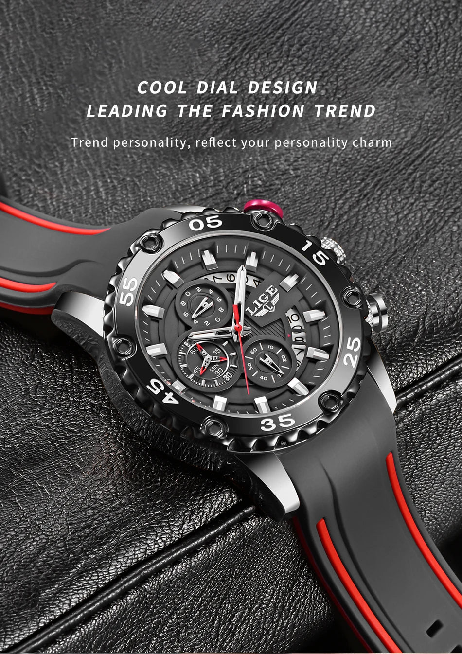 Looking for a fantastic men's watch? Then this is for you. Made with a silicone strap and stainless steel casing, this watch sits comfortably on your wrist. The big dial, along with luminous hands, makes it easy to read the time in the light and in the darkness. Designed with stop watch, shock resistance, auto date, chronograph, complete calendar and water resistance, this watch is more than just a fashion accessory. Buy now!