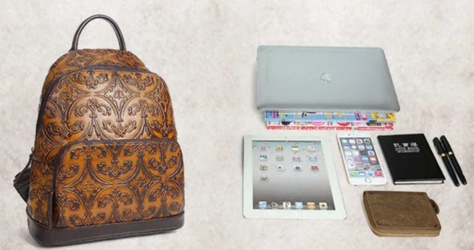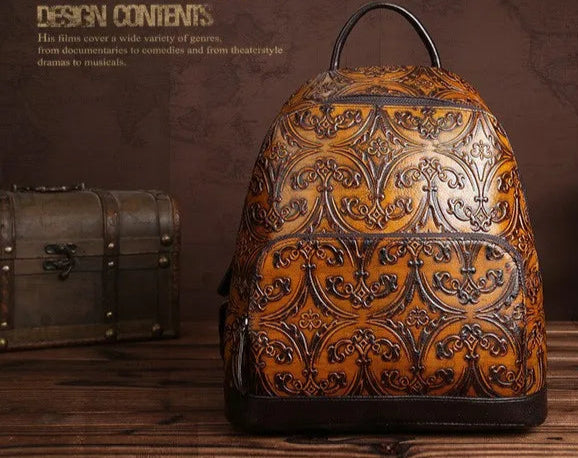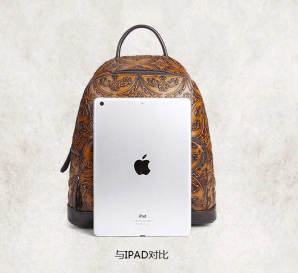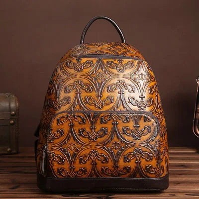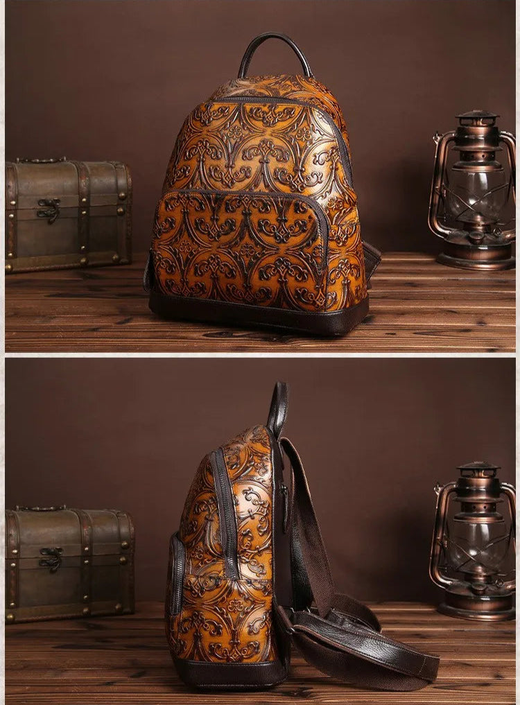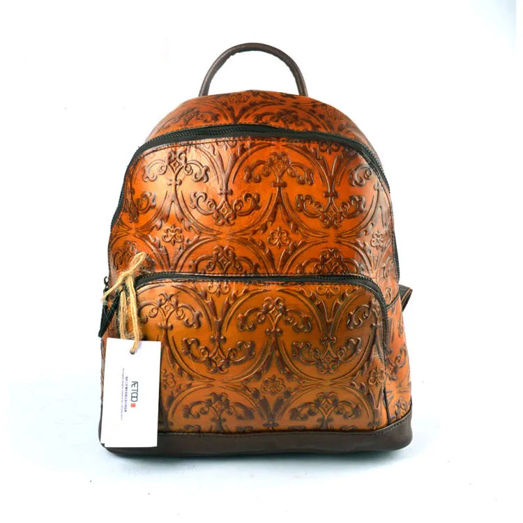 Women's Luxury Retro Genuine Leather Softback Embossed Backpack