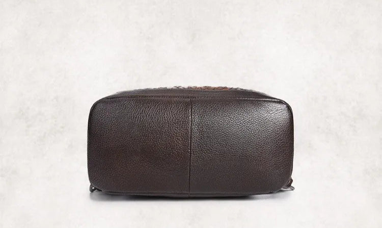 If you are looking for an aesthetically pleasing, versatile bag, then this is for you. Designed with genuine leather, offering both durability and style, this bag can be styled as a backpack or messenger bag. The design with spacious compartments and interior pockets helps you keep all your essentials organized. The brown shade and the embossed design exude a retro vibe. Grab your's now!