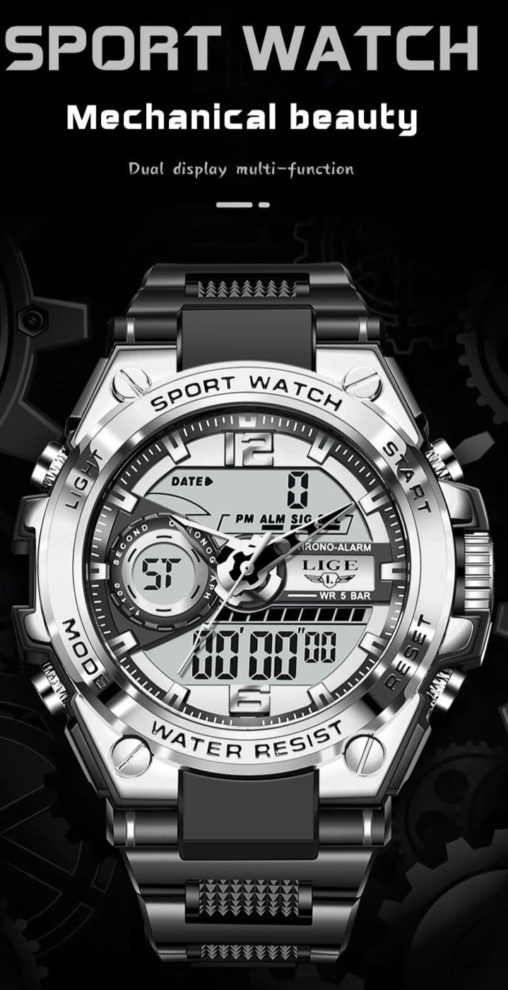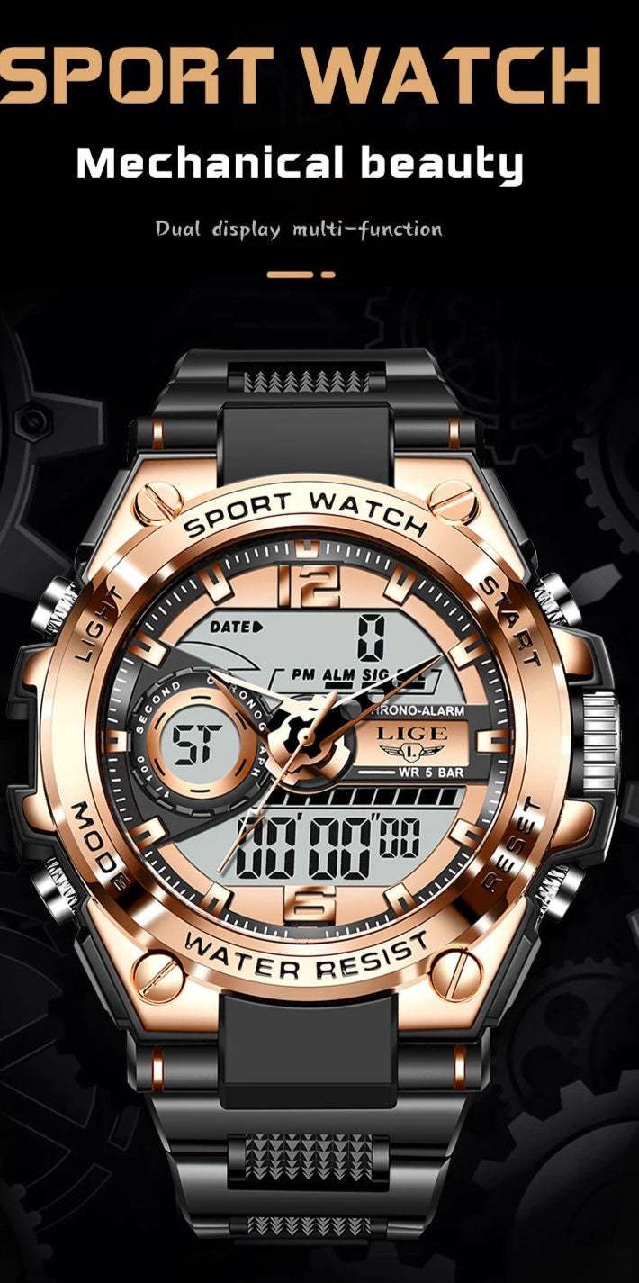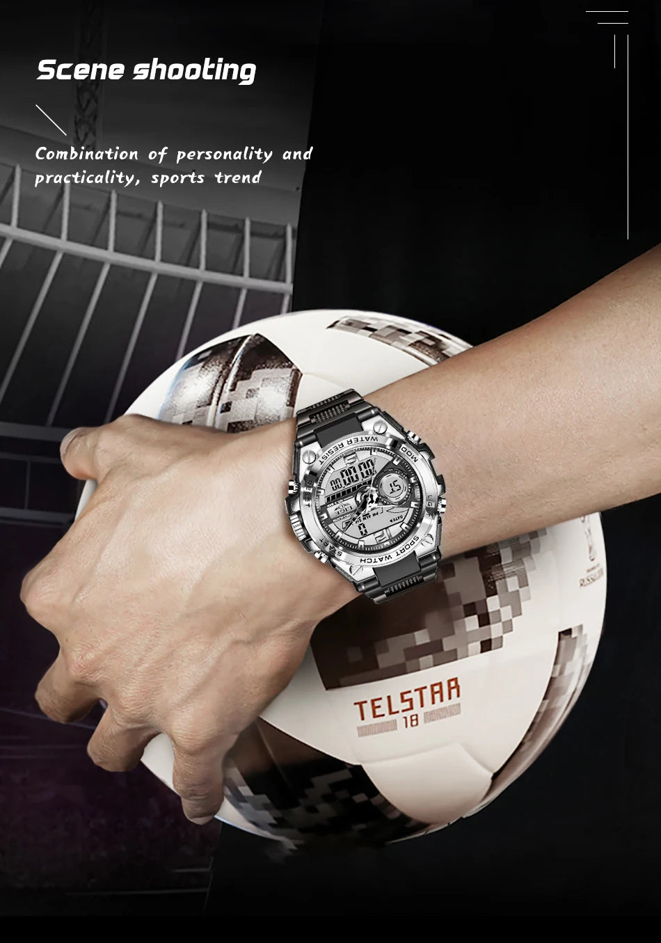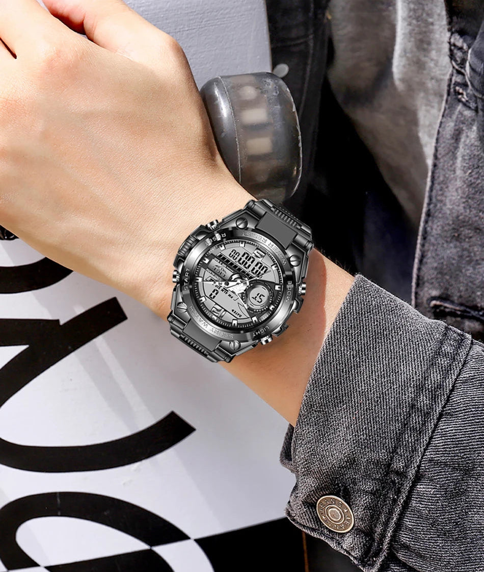 Digital Big Dial Military Style Men's 50m Waterproof LED Quartz Sports Watch