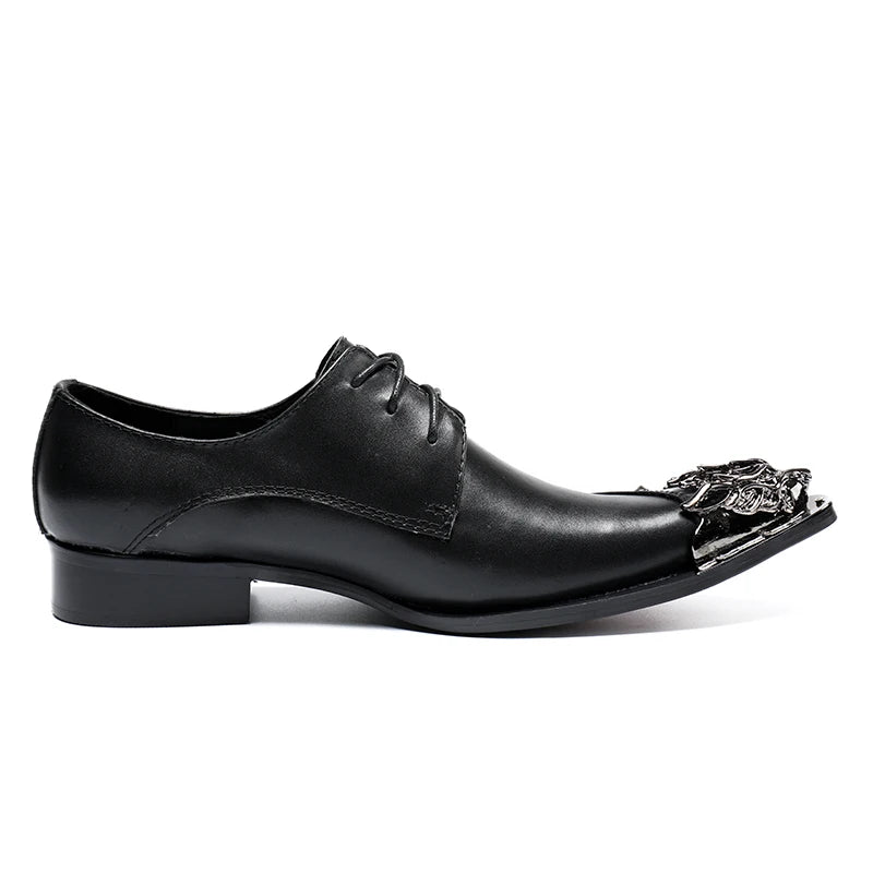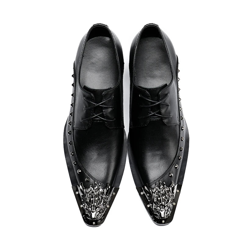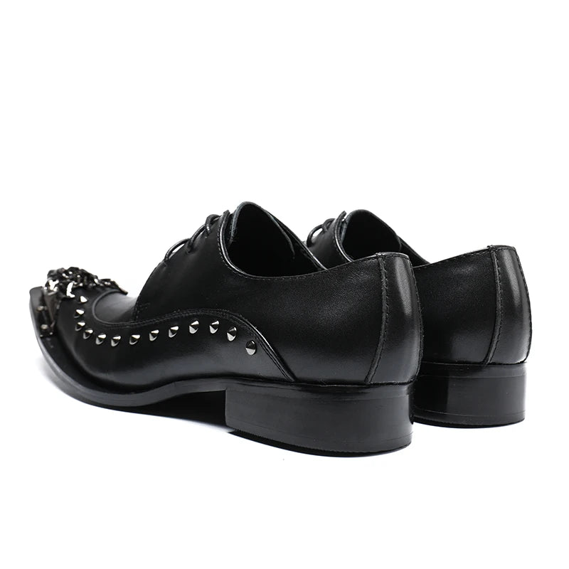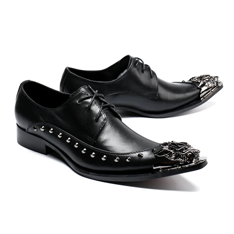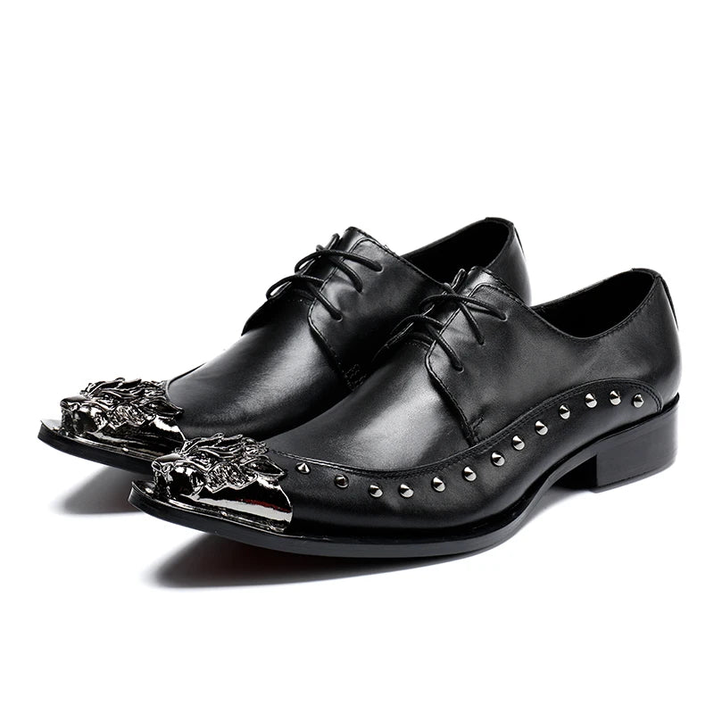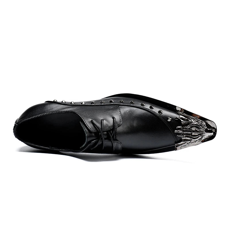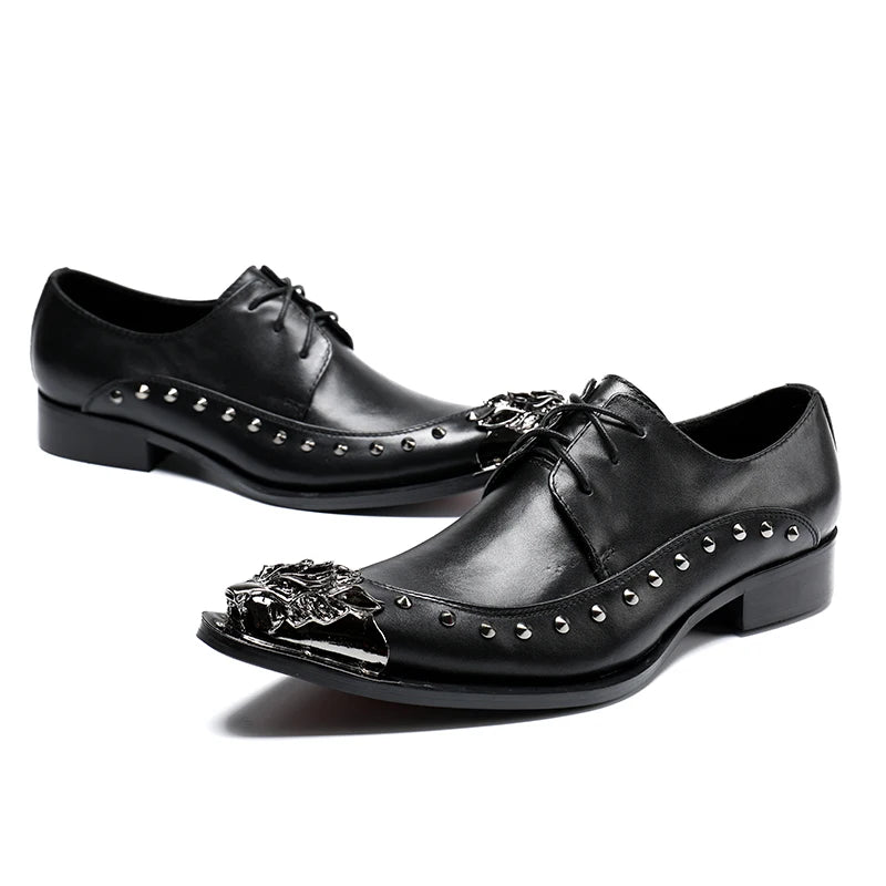 Men's Italian Formal Party Lace Up Iron Pointed Studded Dress Shoes