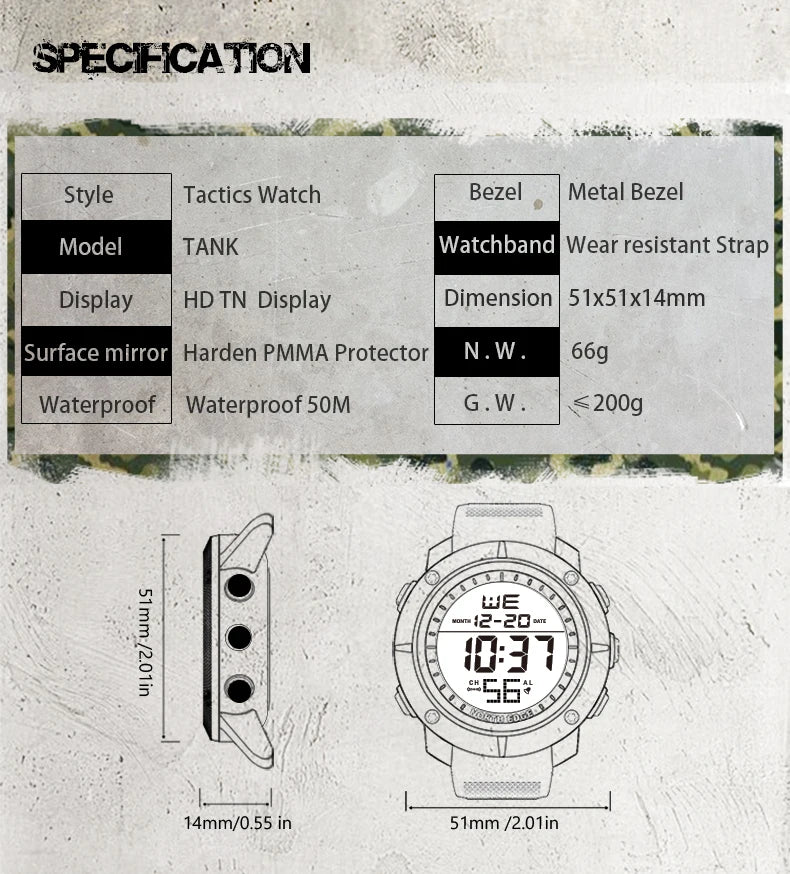 Army Military Digital World Time Alarm Stopwatch Waterproof Sports Watch for Men
