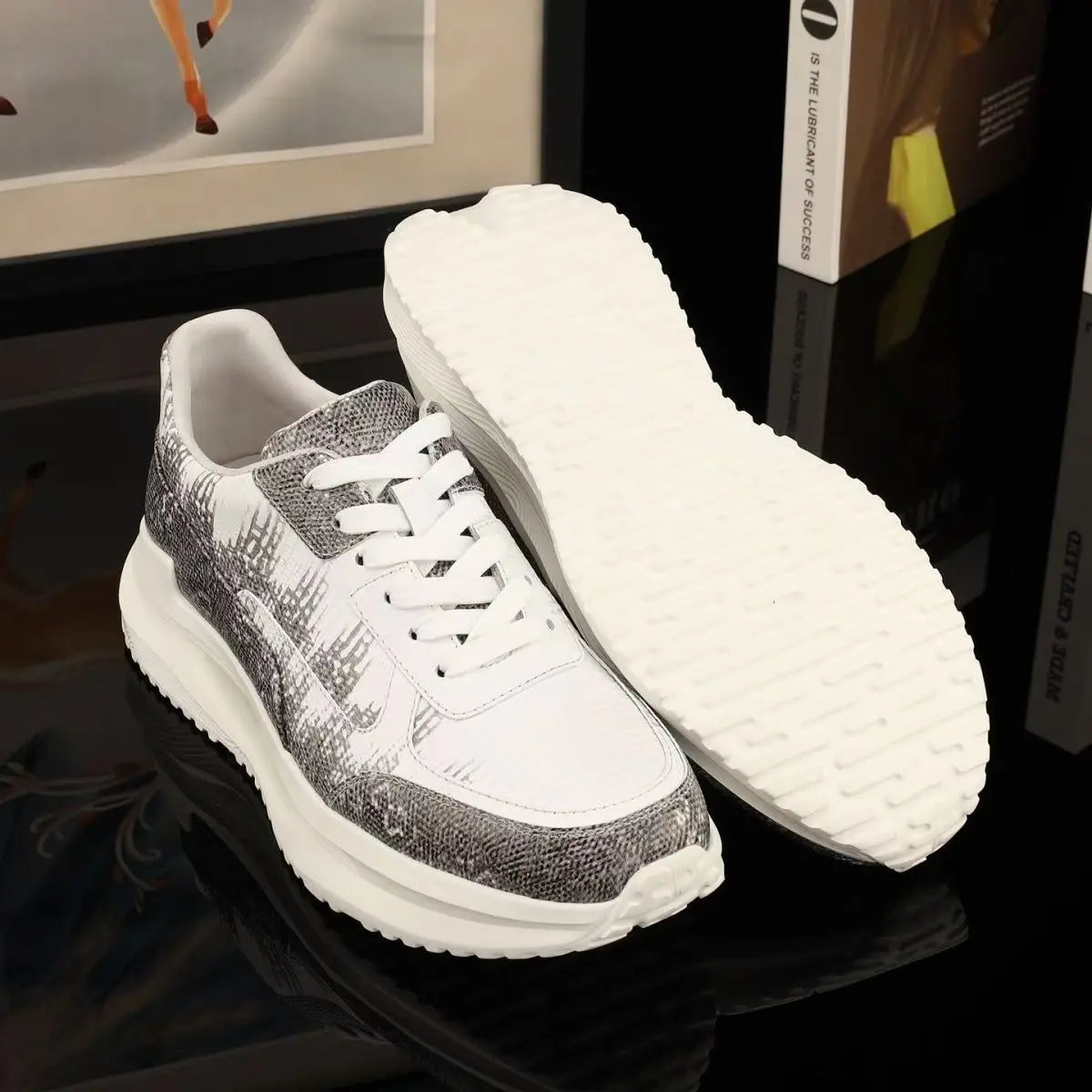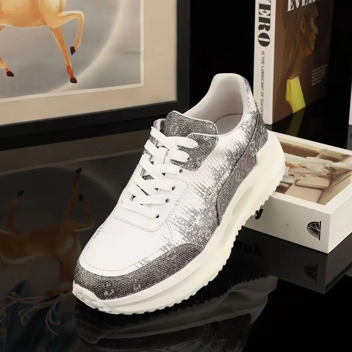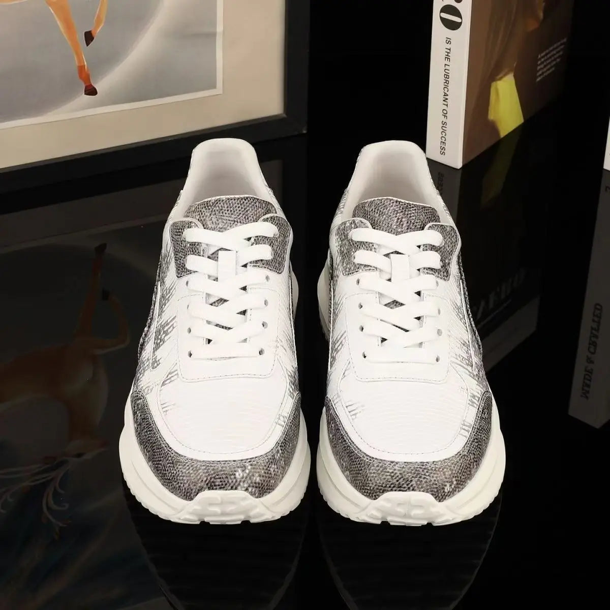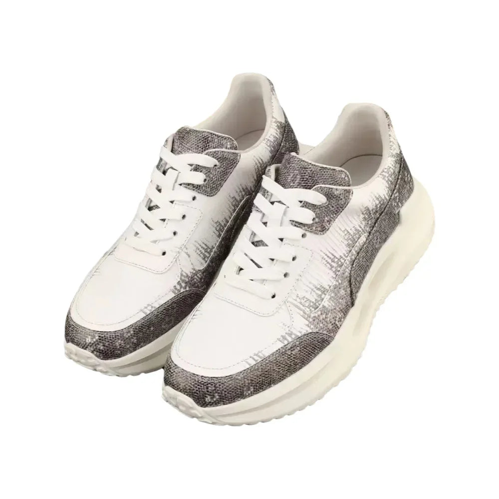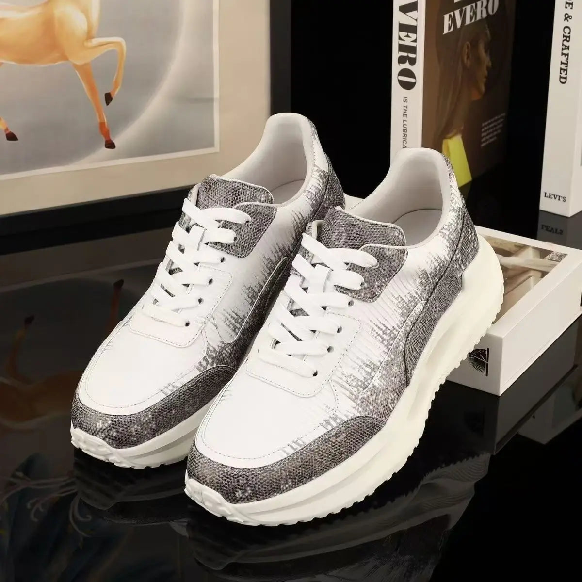 Casual Fashion Dual Color Lizard Skin Genuine Leather Men's Sneakers