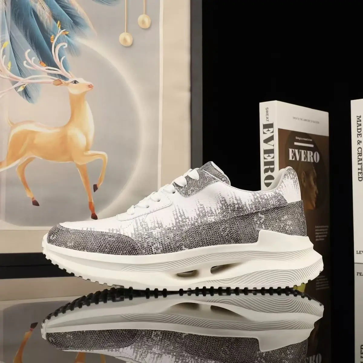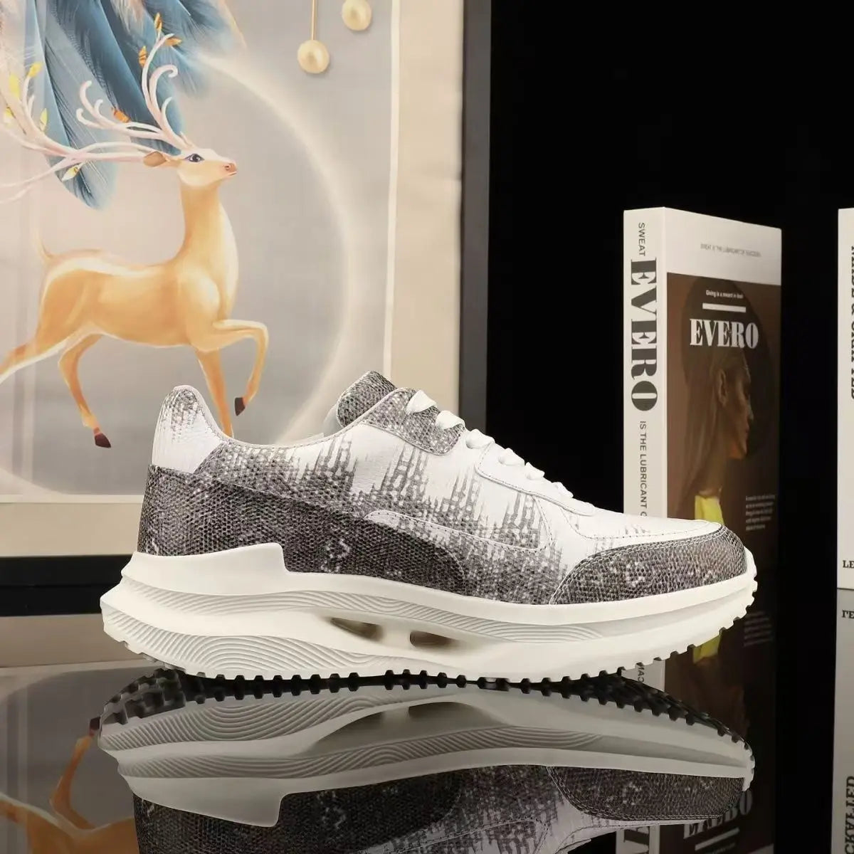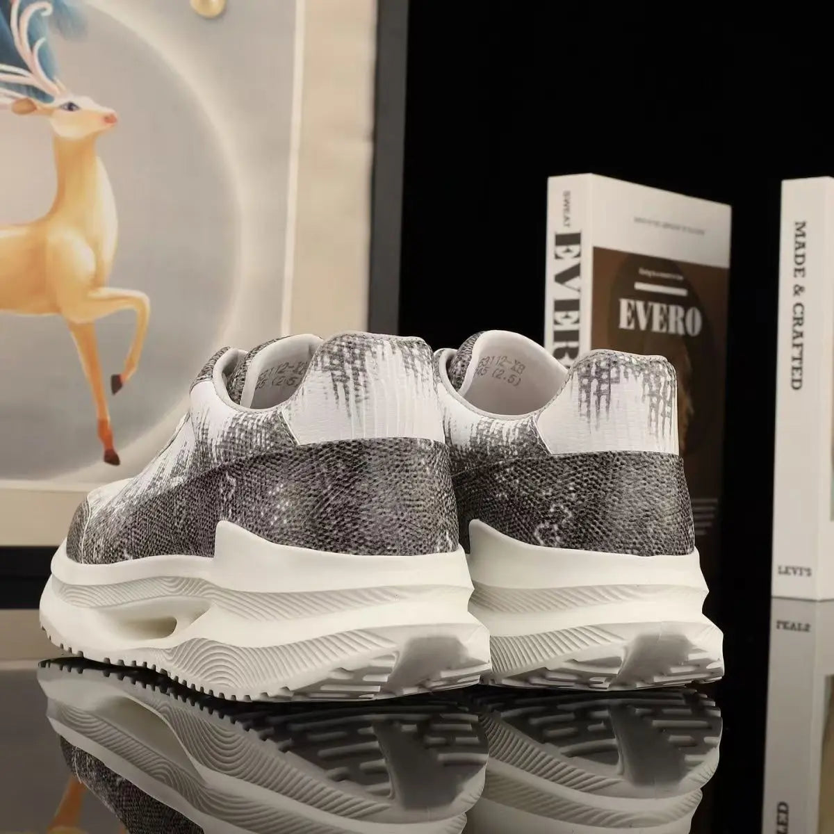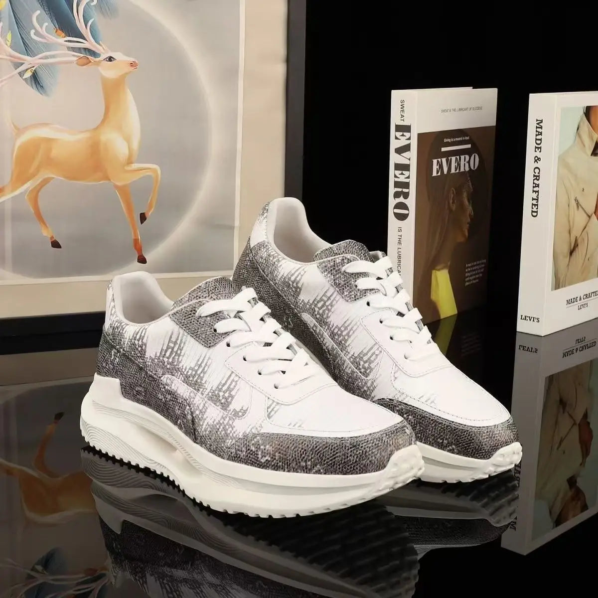 Casual Fashion Dual Color Lizard Skin Genuine Leather Men's Sneakers