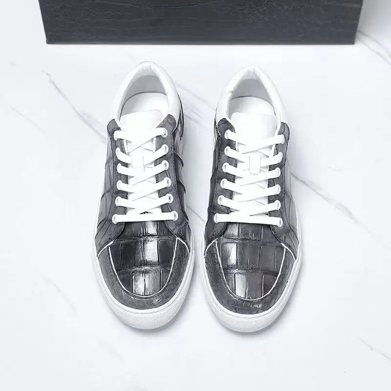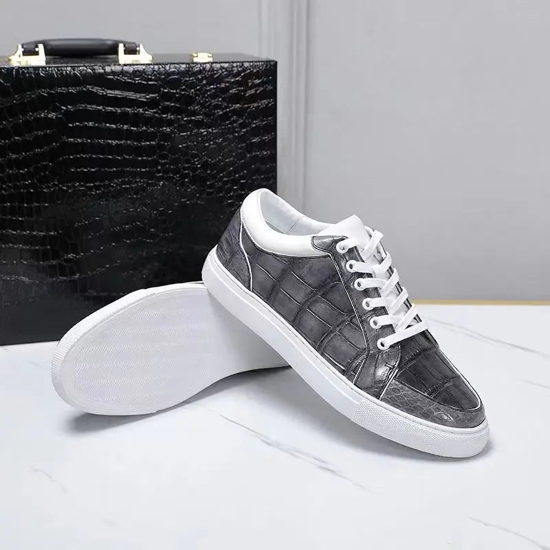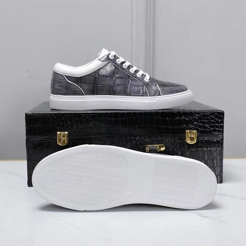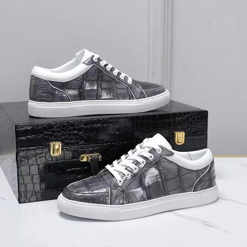 Crocodile Belly Skin Genuine Leather Lace Up Casual Sneakers for Men