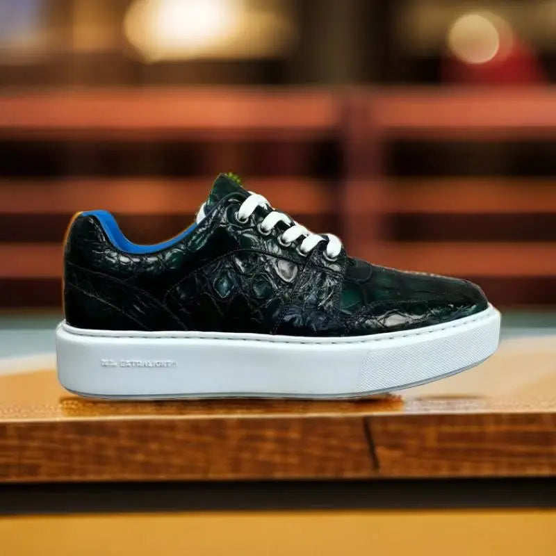 If you are looking for a fashionable men's sneakers, then this is for you. These handmade lace-up footwear have a genuine leather upper and a rubber outsole that is stylish and elegant. The rubber soles and the genuine leather lining keep your feet comfortable. The crocodile pattern and the color combo upgrade your fashion. Offers both practicality and elegance, don’t miss it!