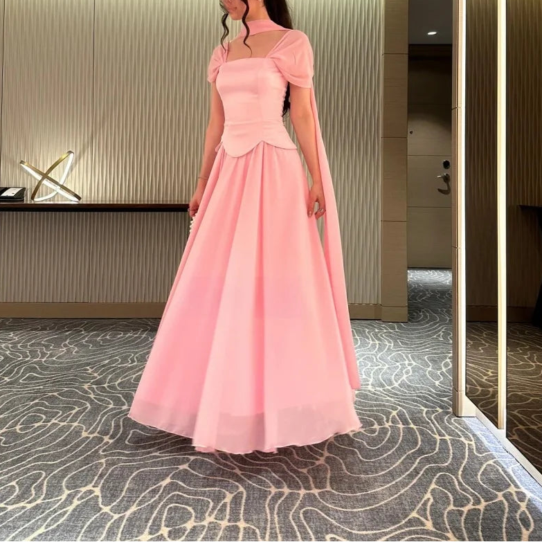 Luxury Pink Square Collar Evening Party Prom Dress for Women