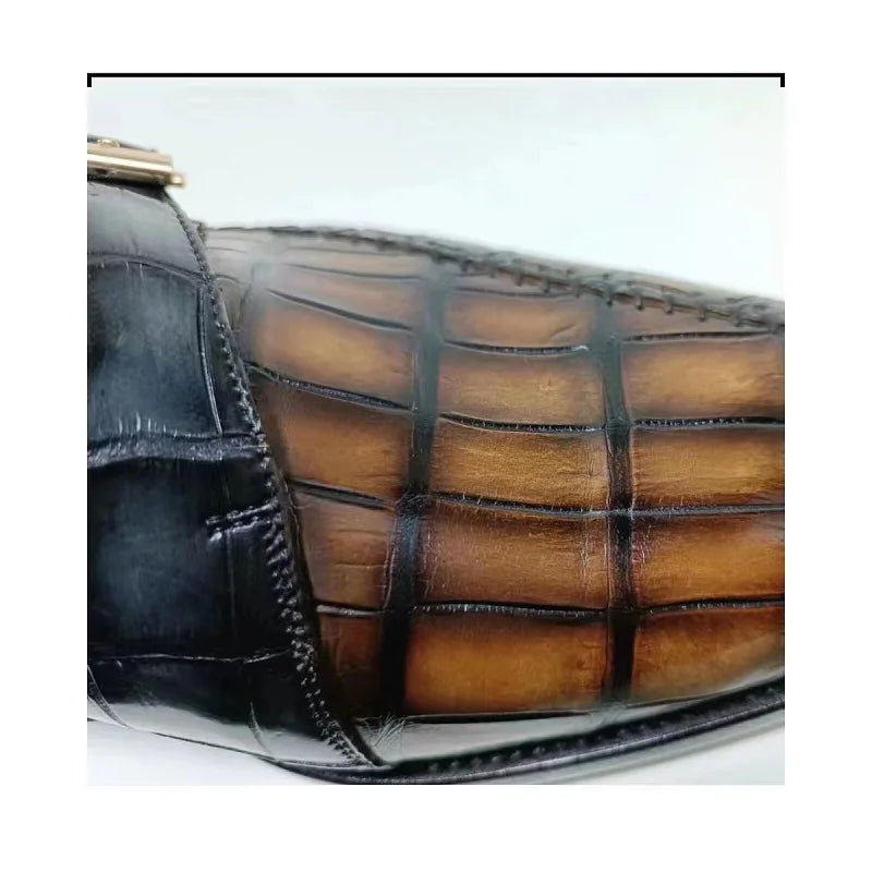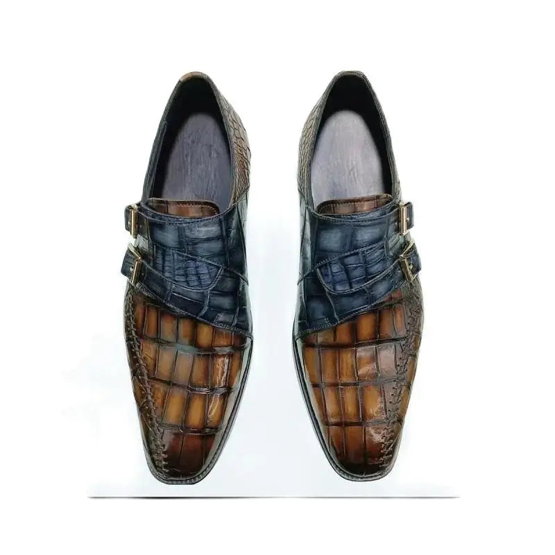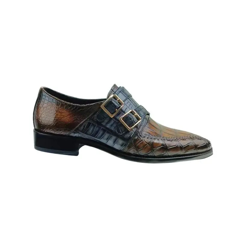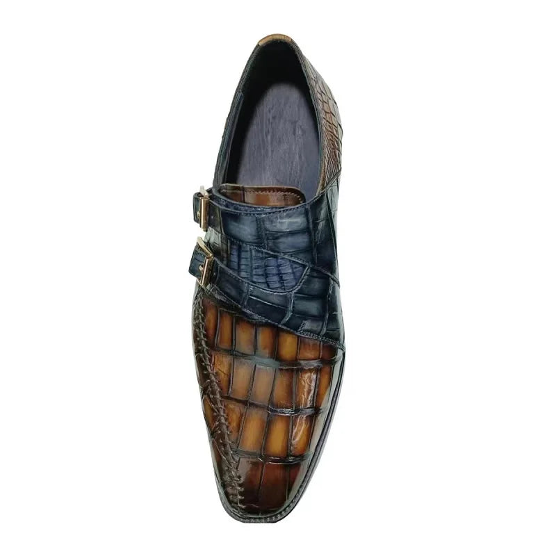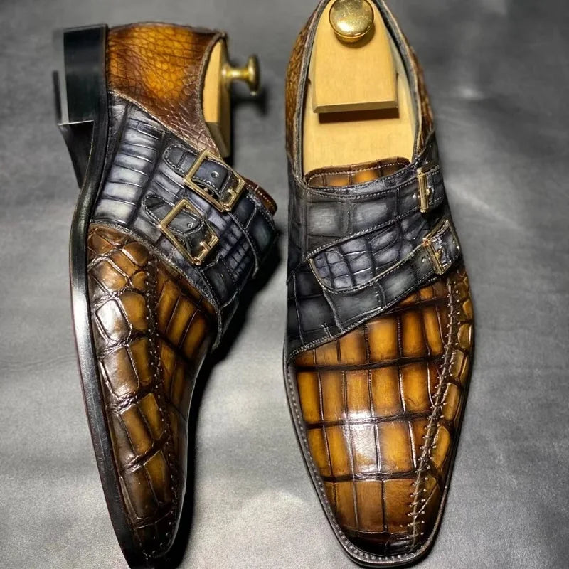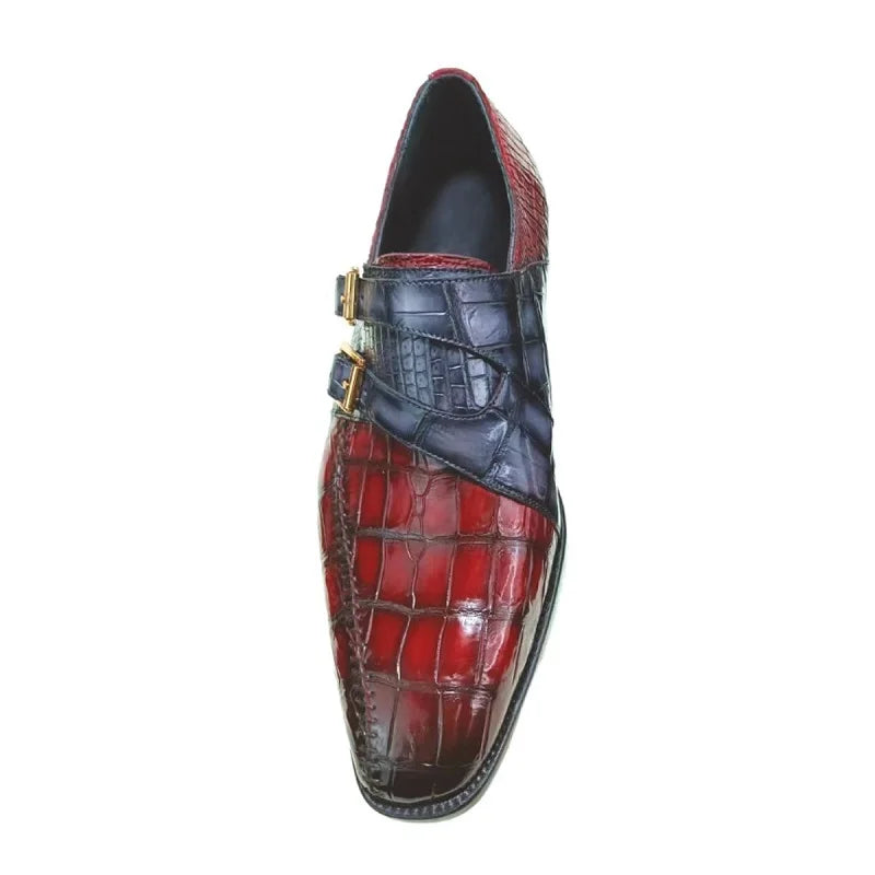 Men's Genuine Leather Crocodile Skin Double Buckle Dress Shoes