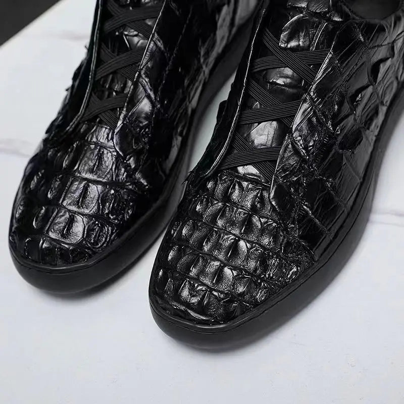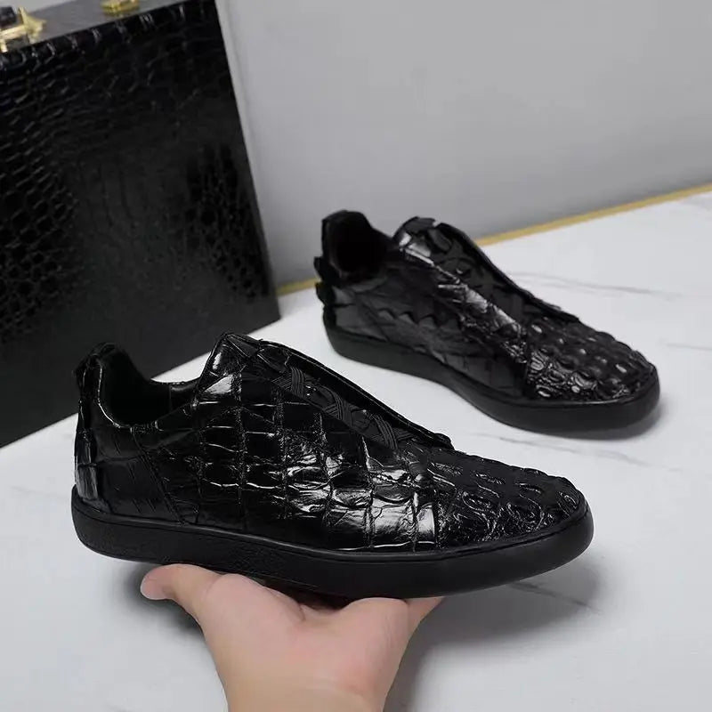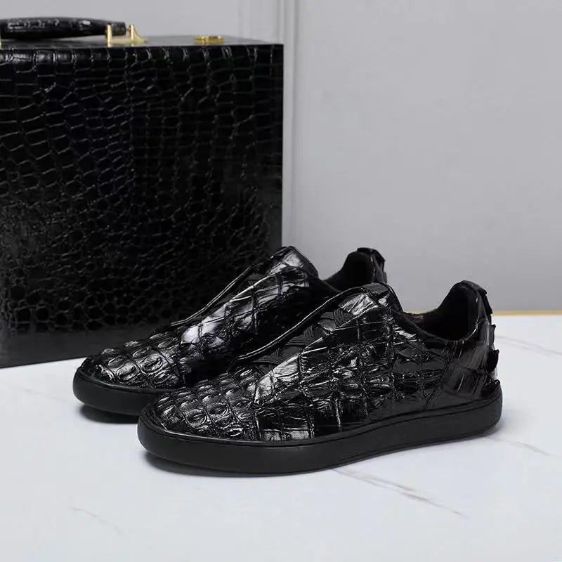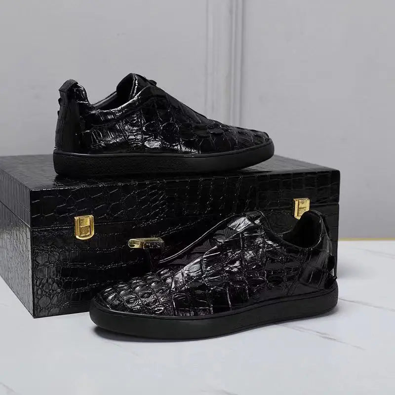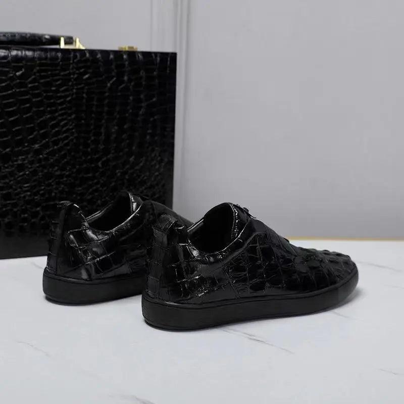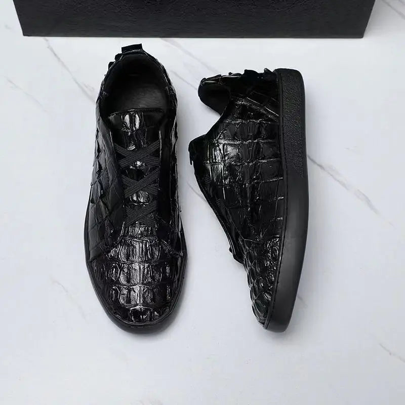 Minimalistic Fashion Crocodile Skin Genuine Leather Casual Sneakers for Men