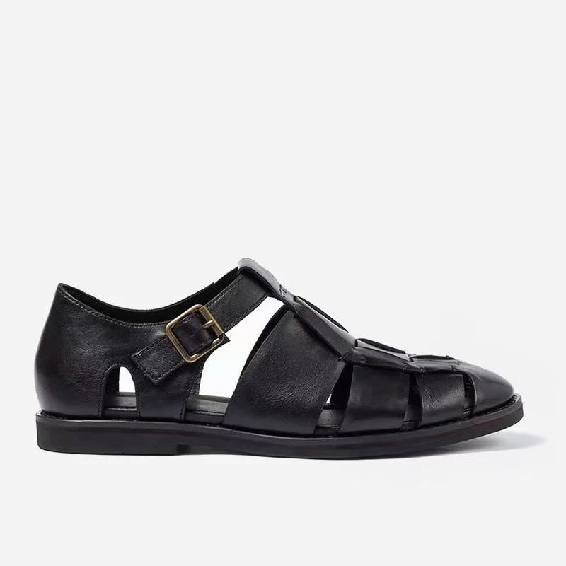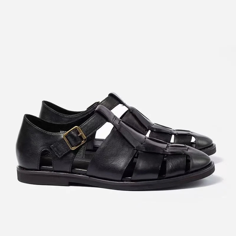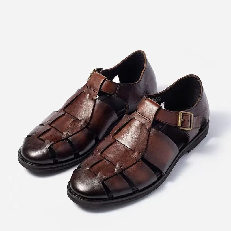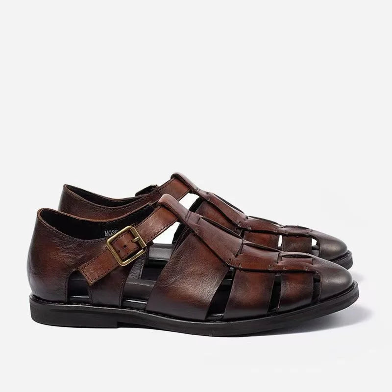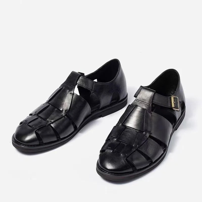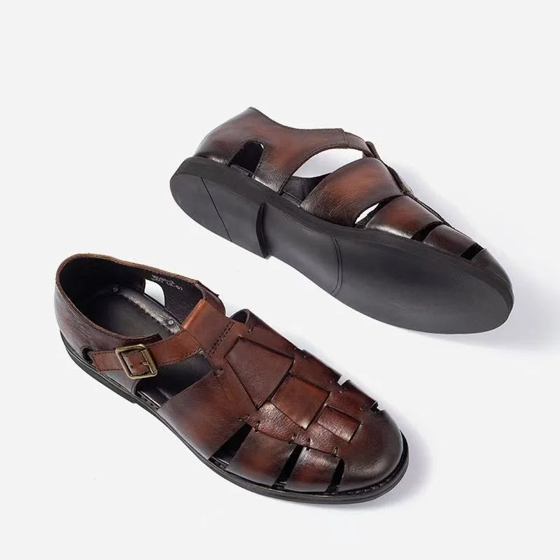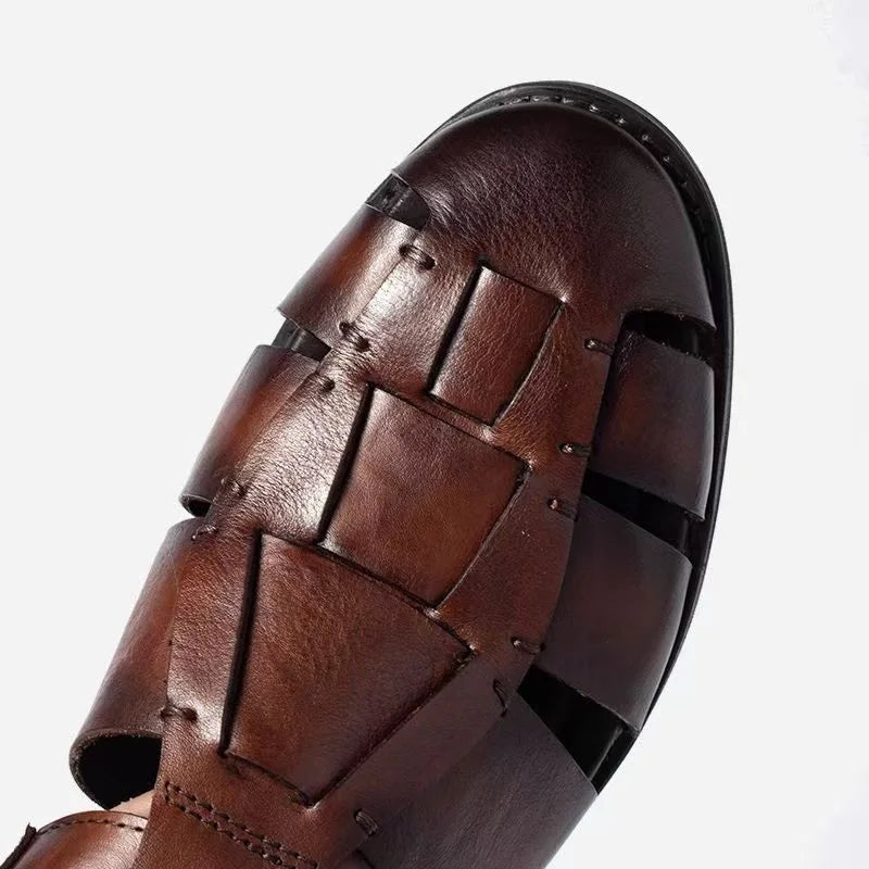 Summer Fashion Cow Leather Casual Roman Retro Weave Sandals for Men
