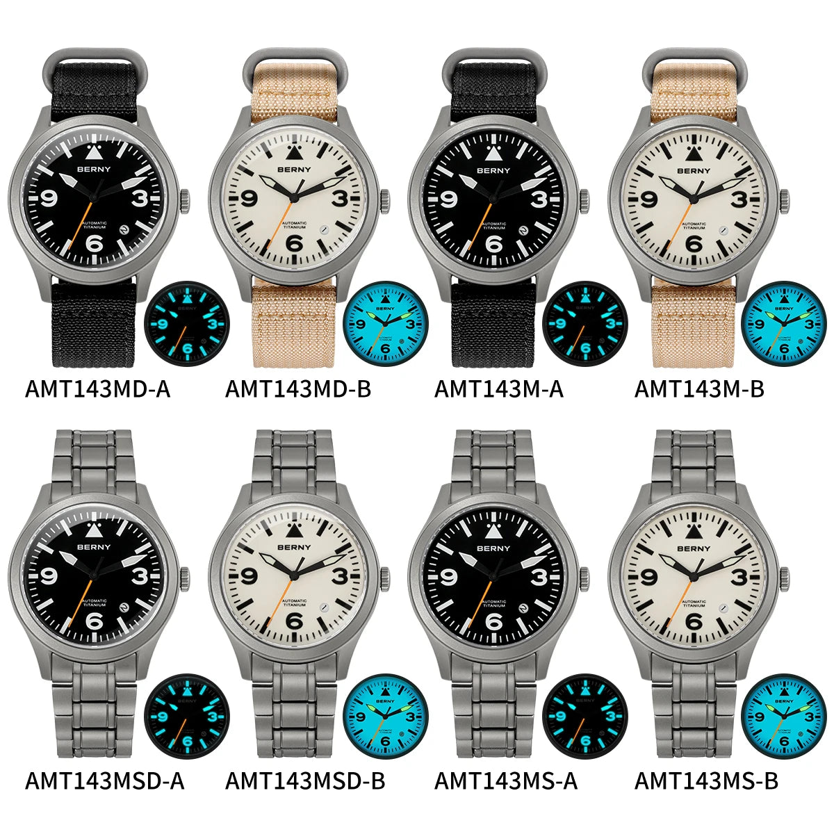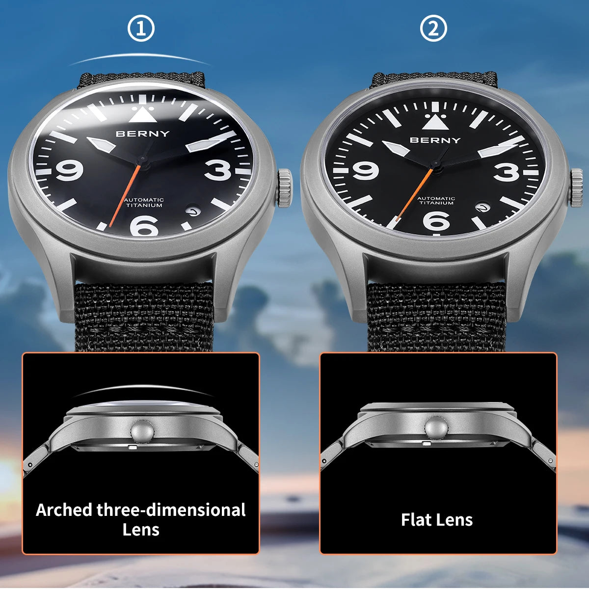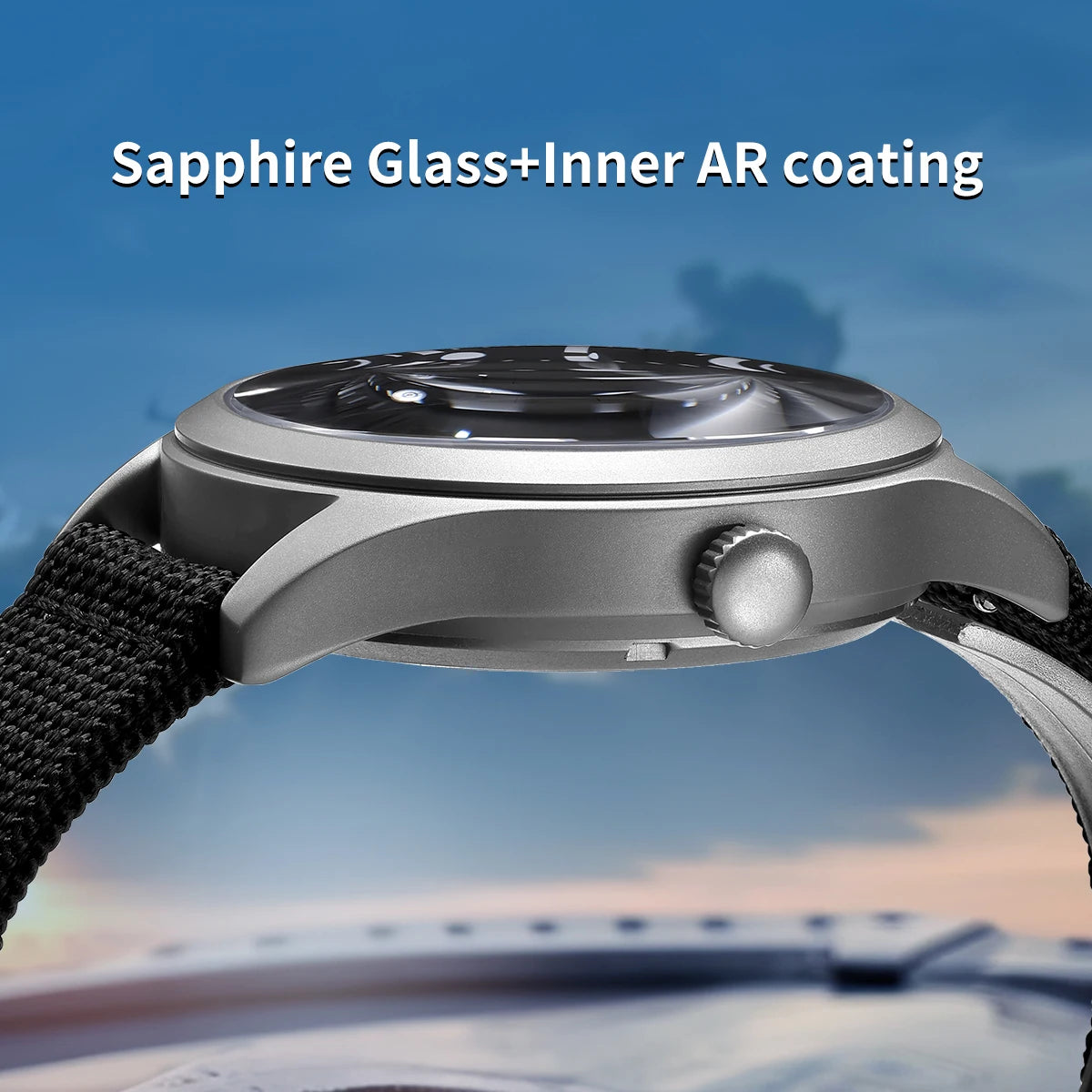 Men's Titanium Sapphire AR Coated 10Bar Waterproof Supper Luminous Sports Aviation Watches