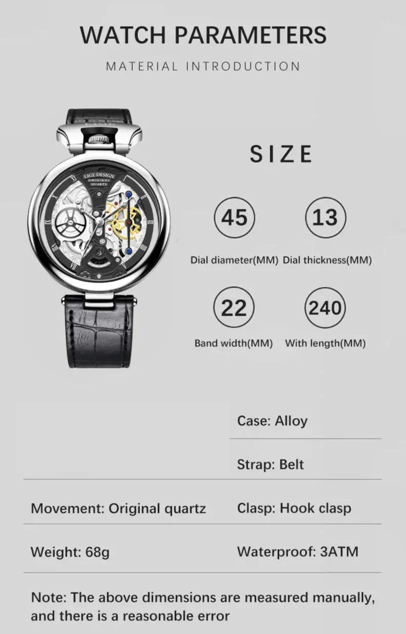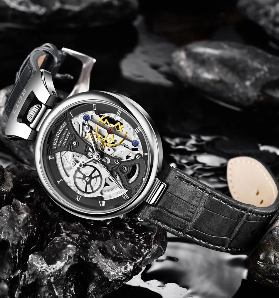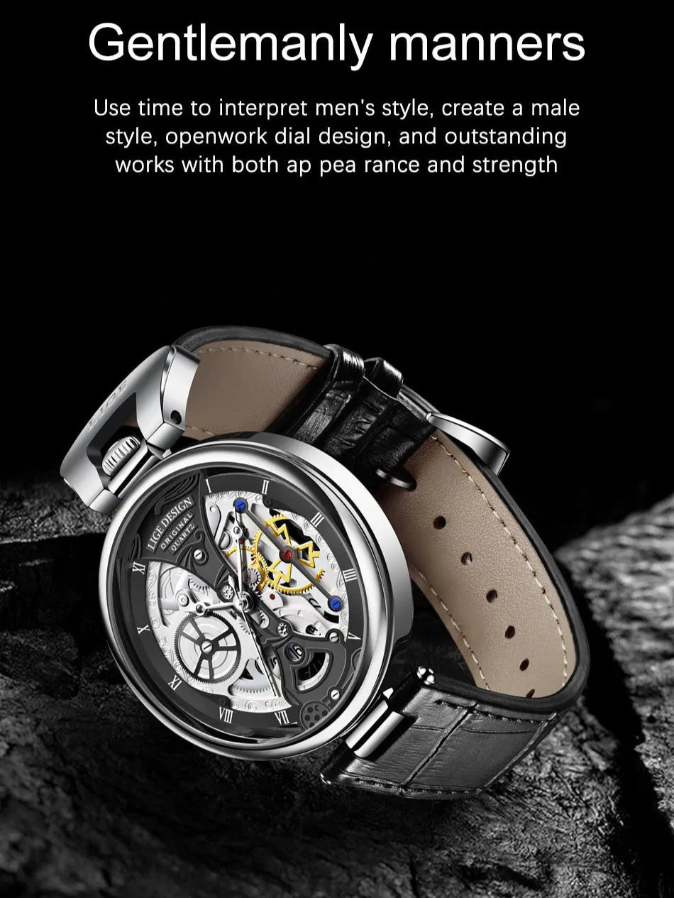 Men's Creative Casual Fashion Quartz Waterproof Auto Date Leather Watch