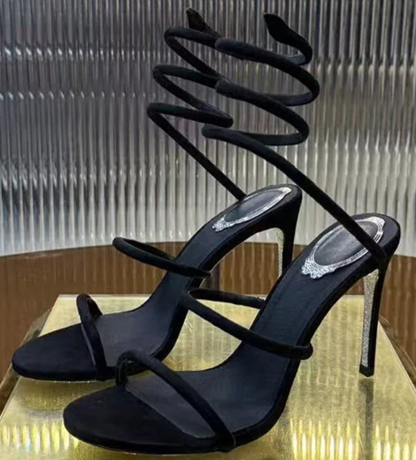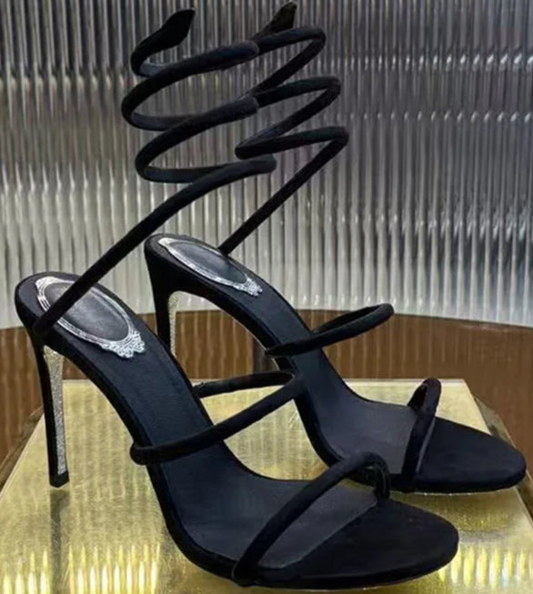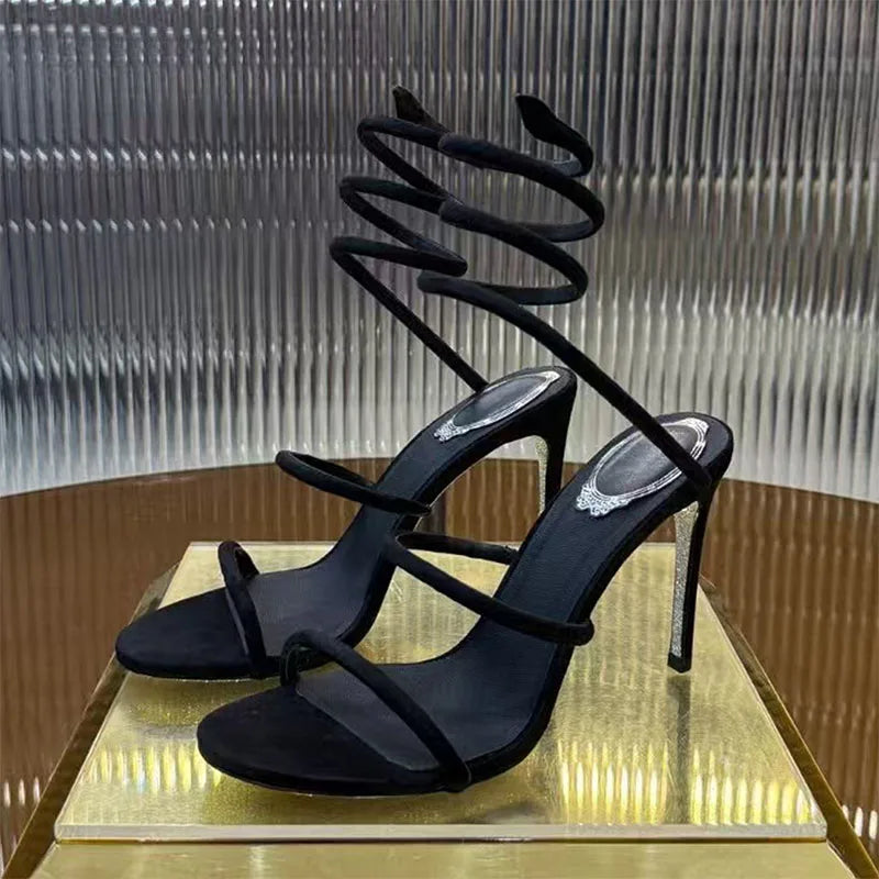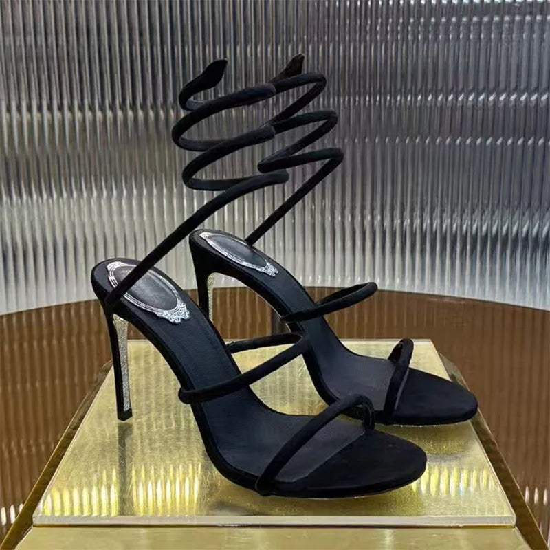 Black Summer Snake Twine Ankle Strap High Heels Gladiator Sandals for Women