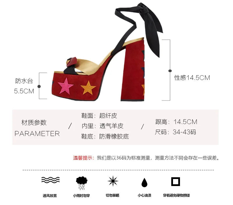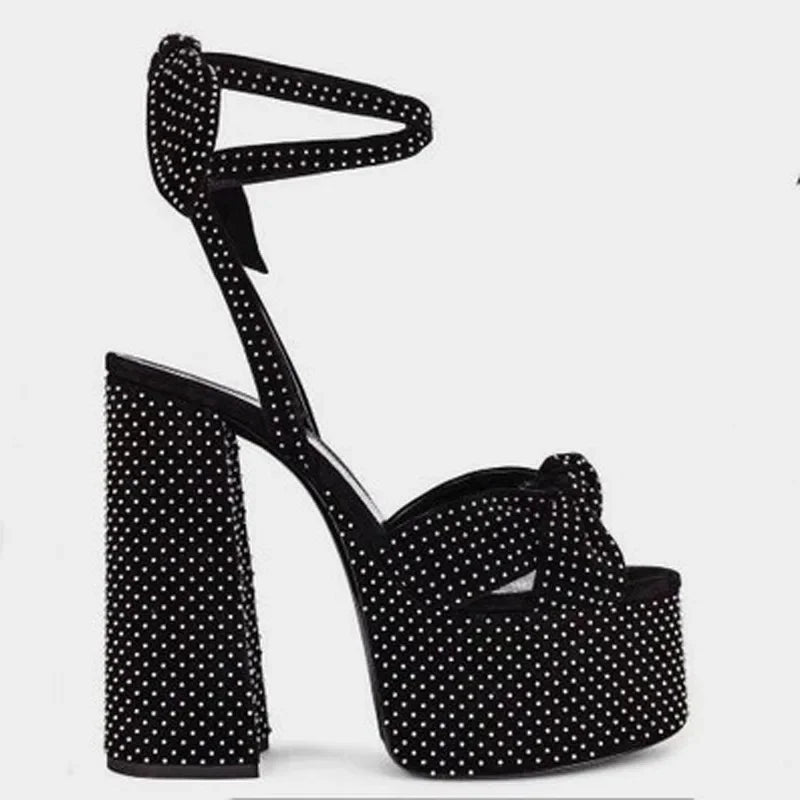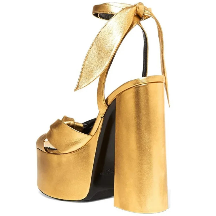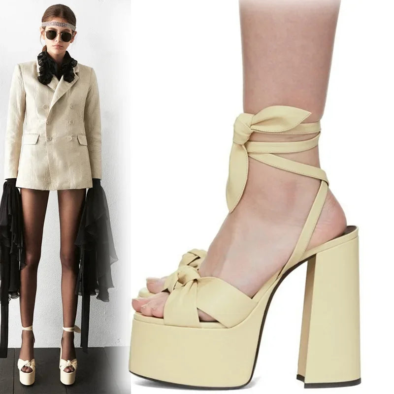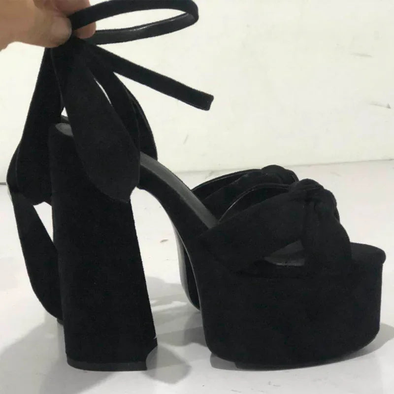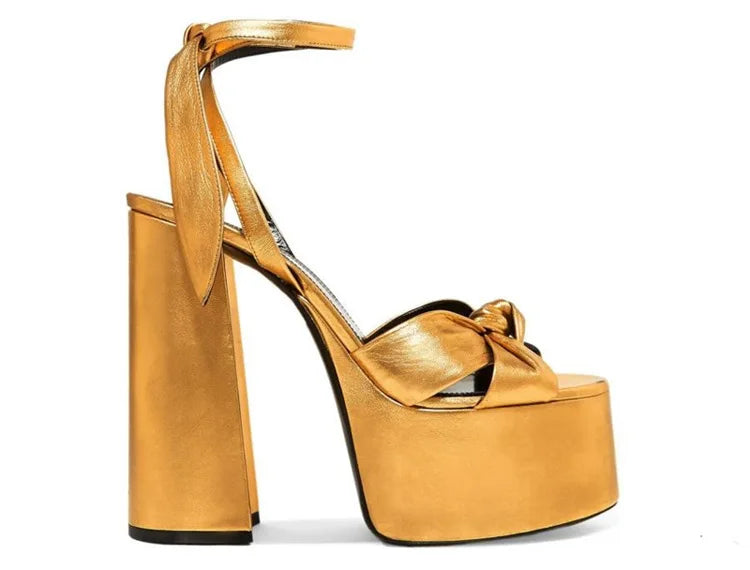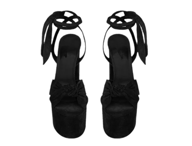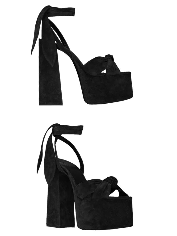 Bowknot Ankle Strap Chunky Platform High Heels Sandals for Women