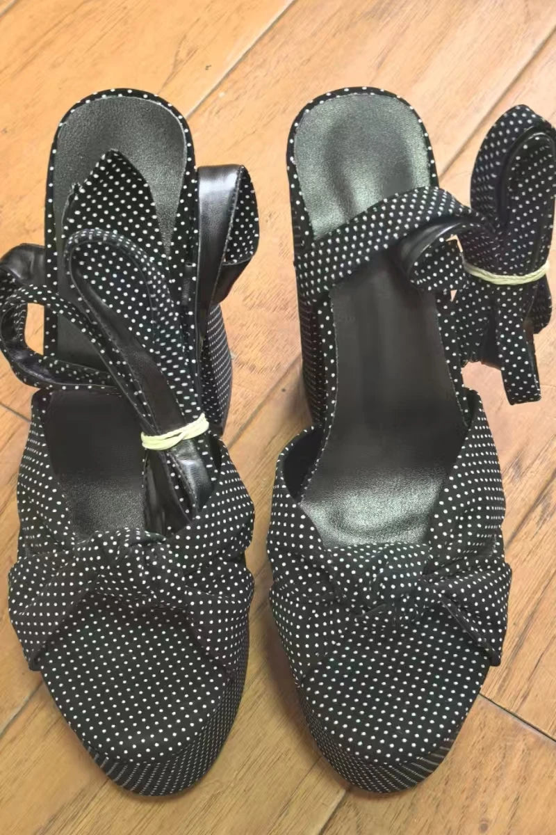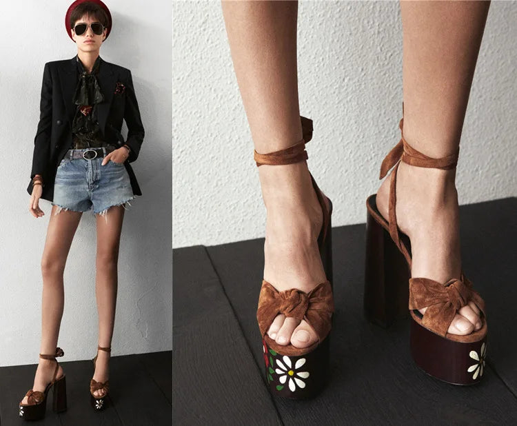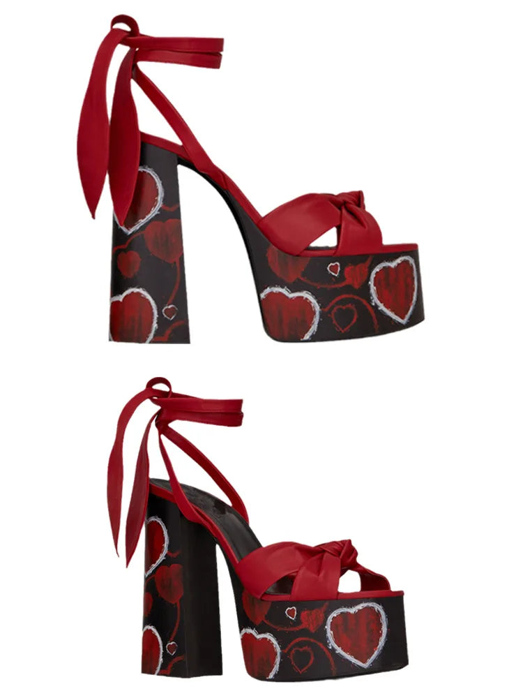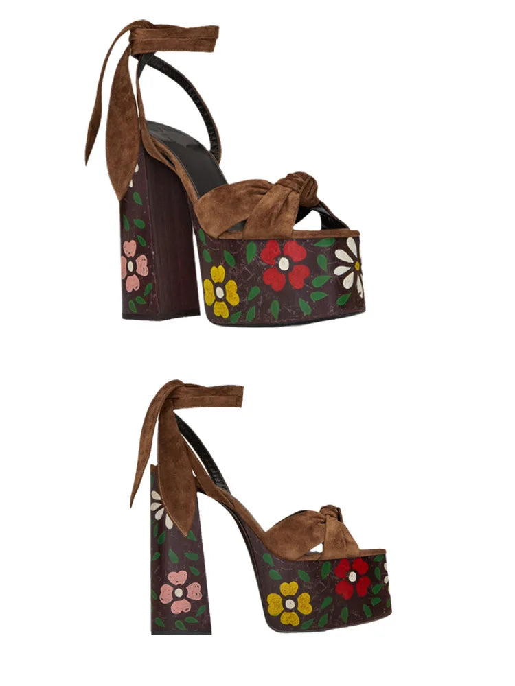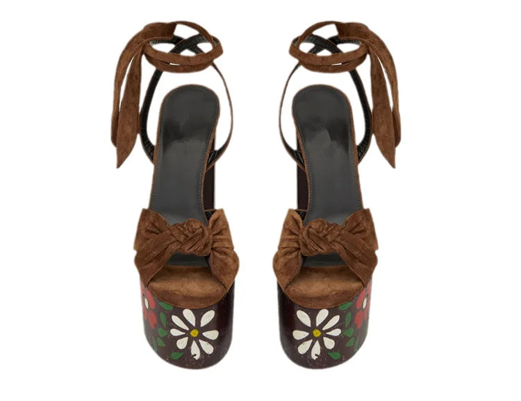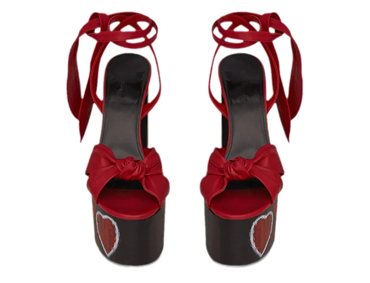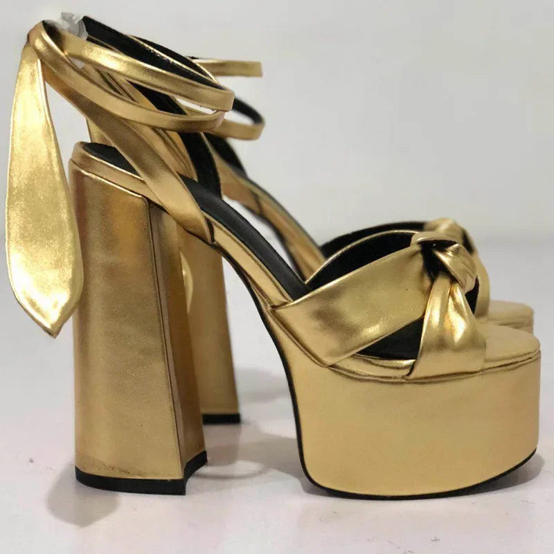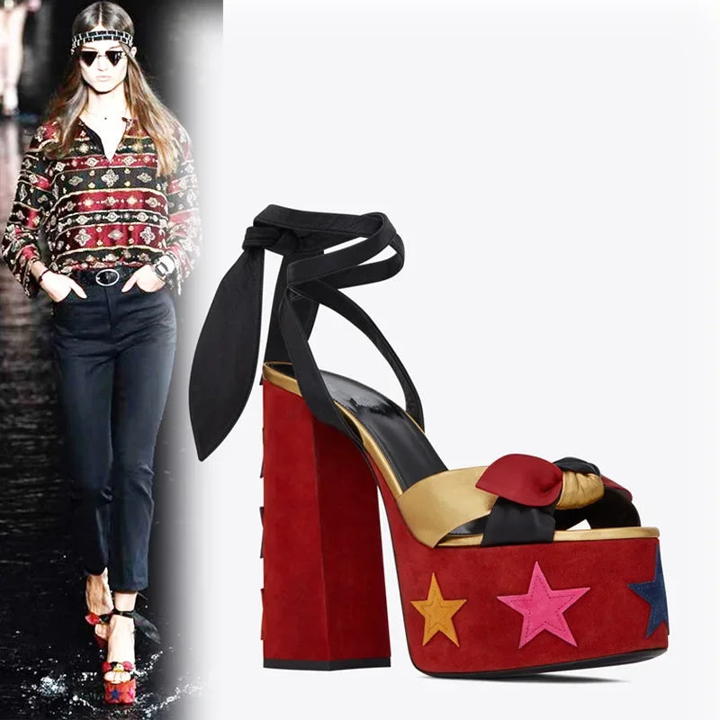 Bowknot Ankle Strap Chunky Platform High Heels Sandals for Women
