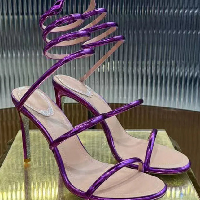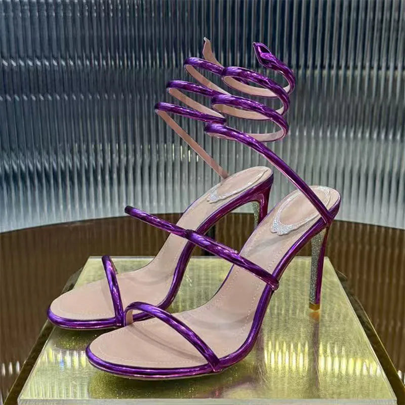 Purple Summer Snake Twine Ankle Strap High Heels Gladiator Sandals for Women