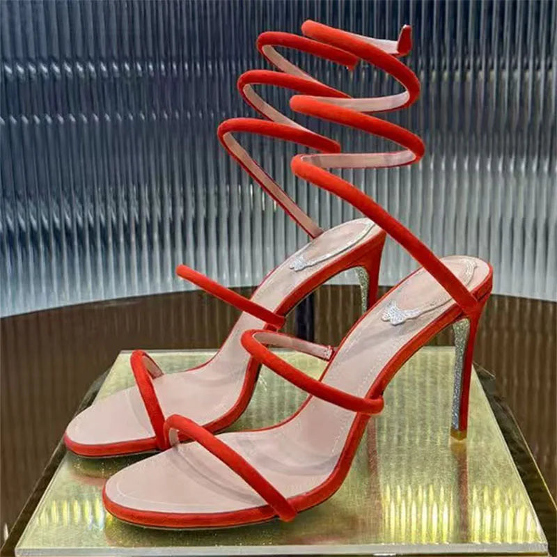 Red Summer Snake Twine Ankle Strap High Heels Gladiator Sandals for Women