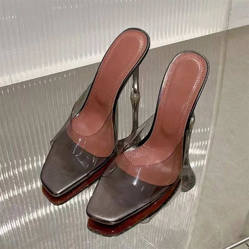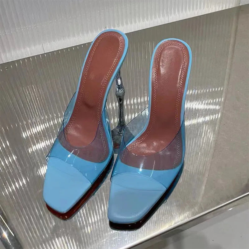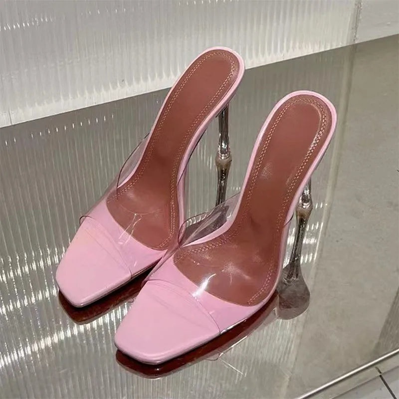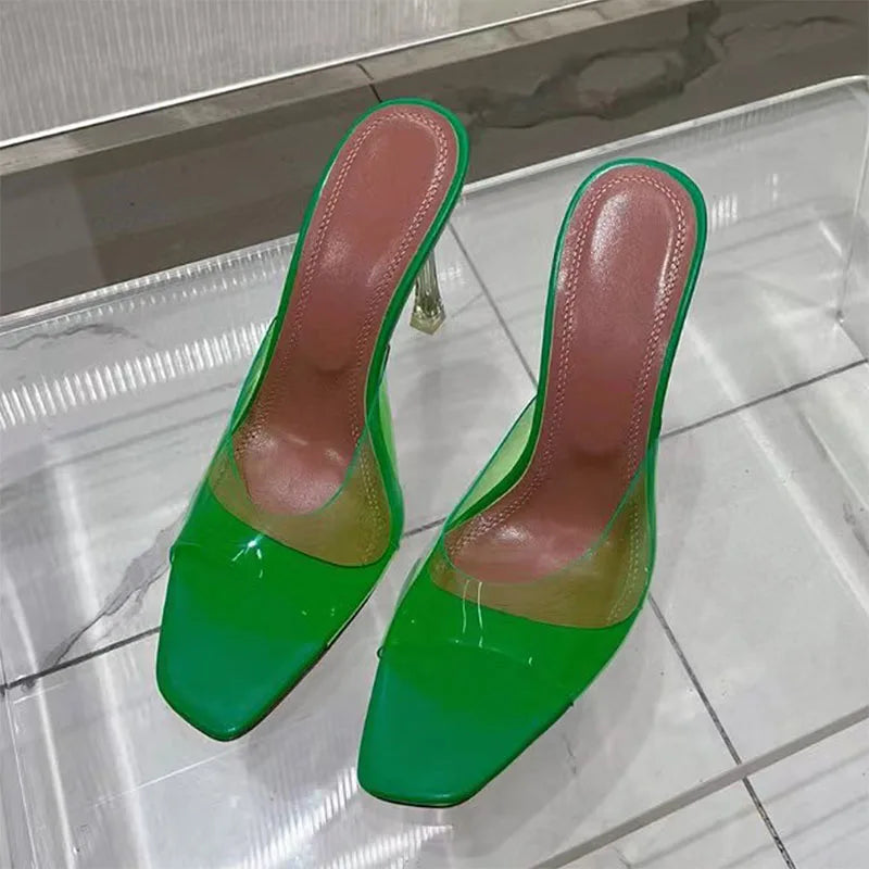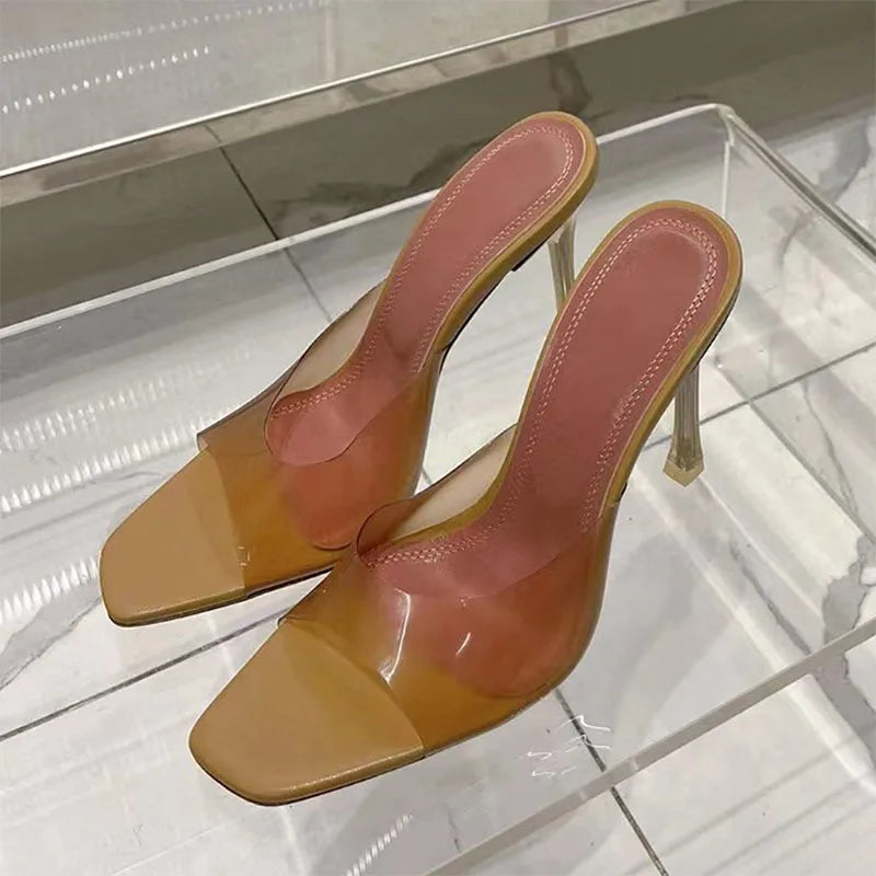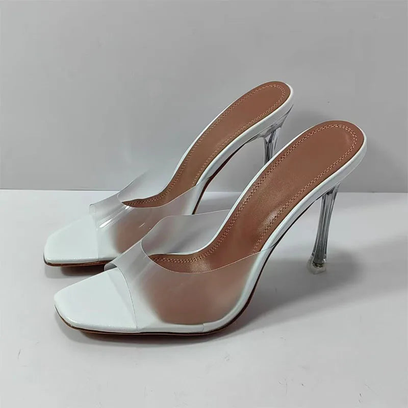 Sexy Summer Fashion Square Peep Toe Thin High Heels Slippers for Women