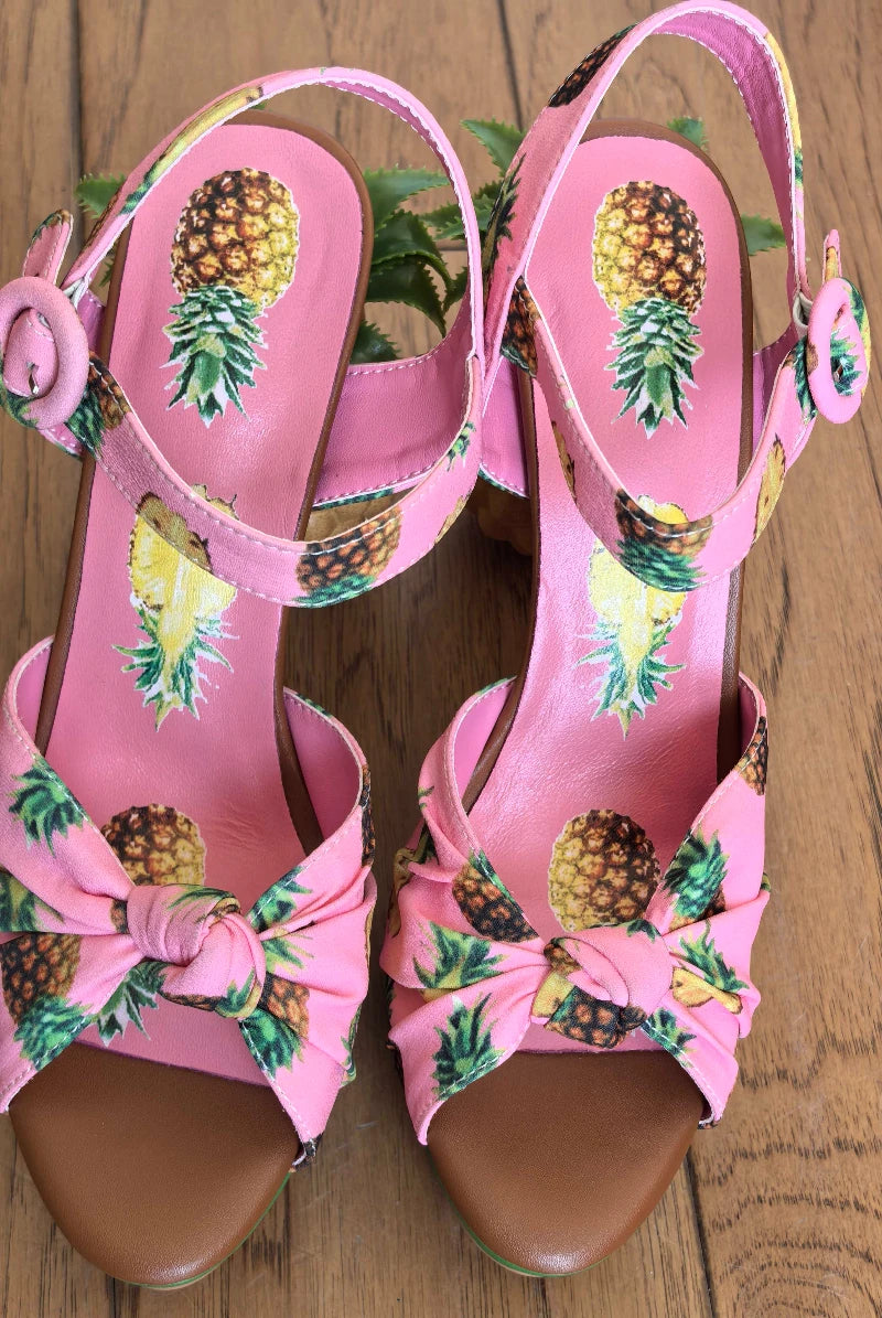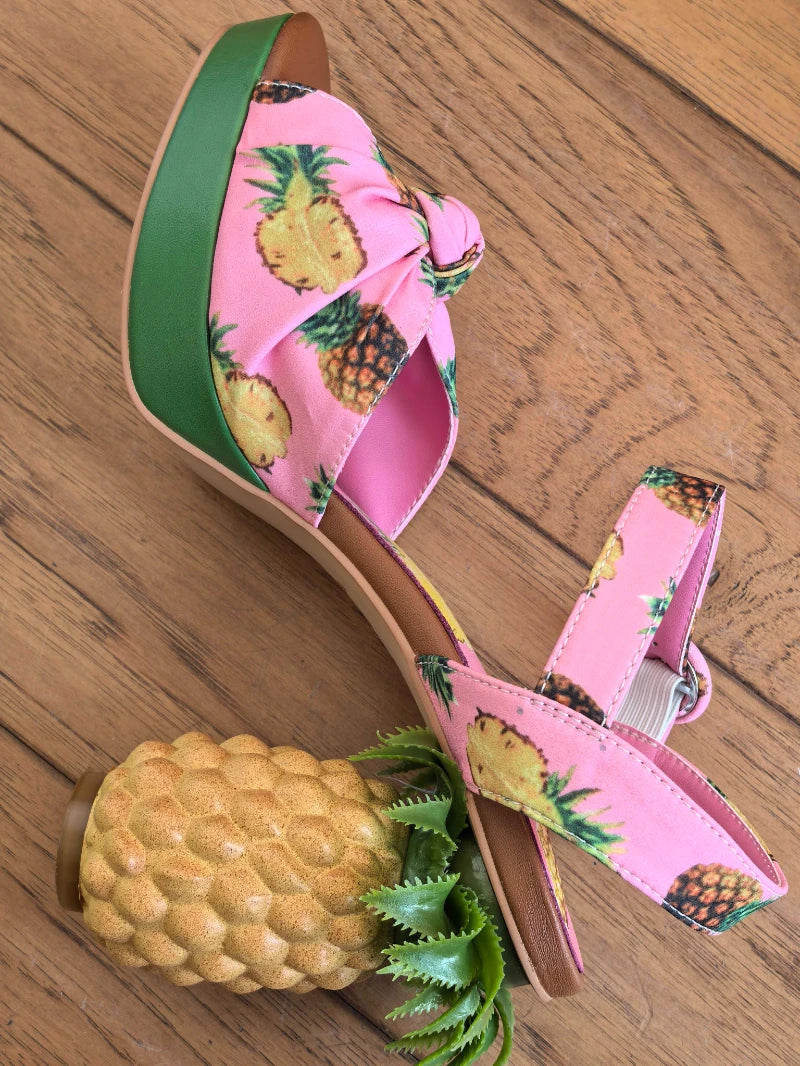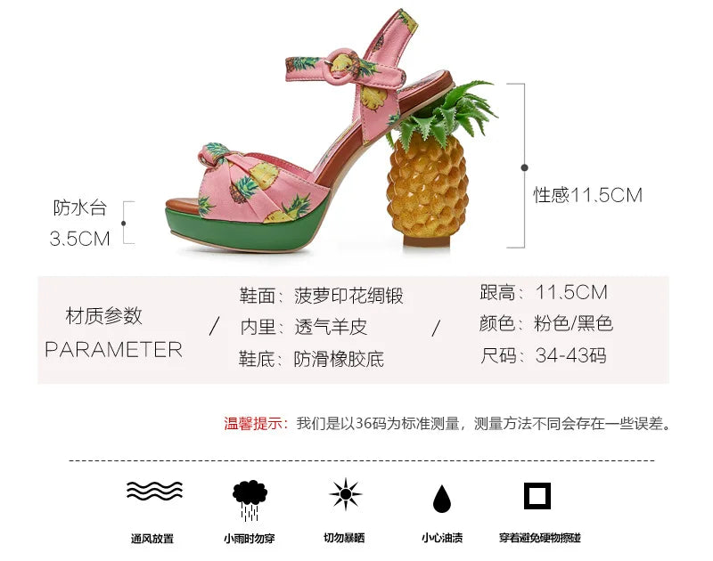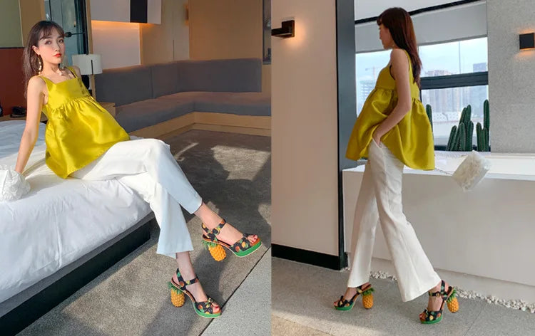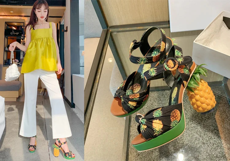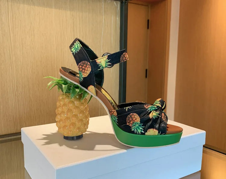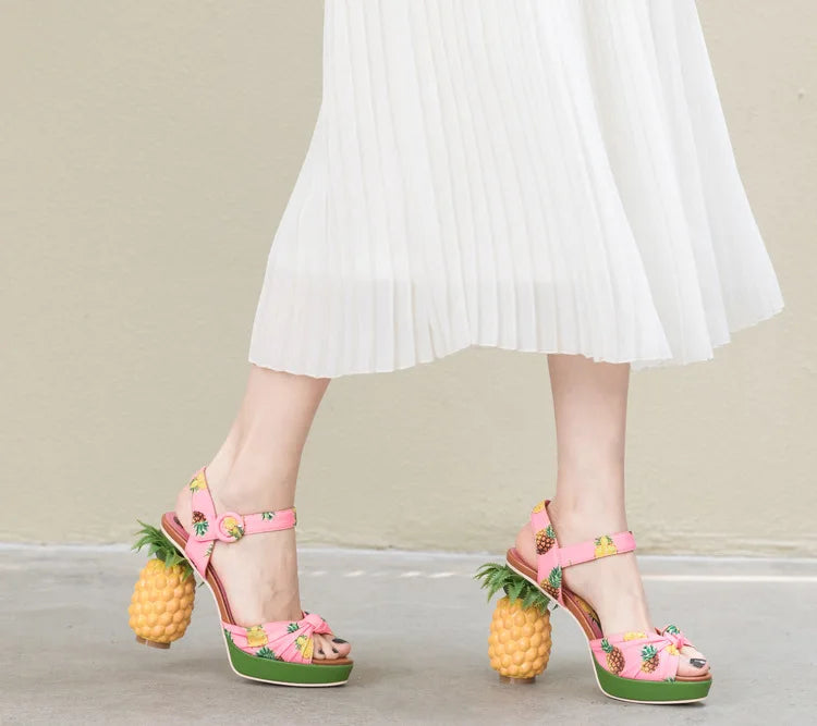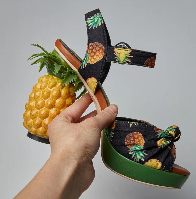 Summer Pineapple Print High-heel Buckle Strap Open-toe Sandals for Women