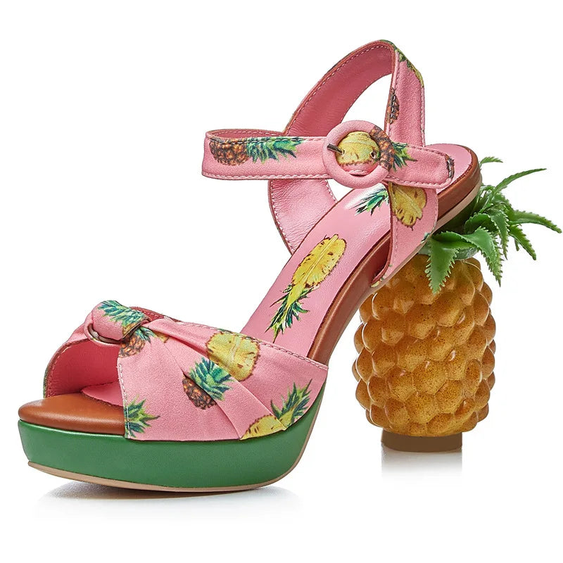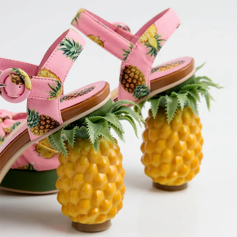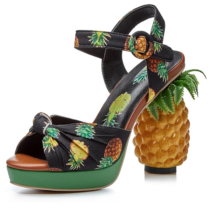 Love to stand out from the crowd? Then these pineapple heel sandals are for you. Wearing these fashion-forward women's pumps amps up your style. Featuring a fabric upper and rubber outsole, it offers both durability and style. The high heels and the buckle straps make it more functional. Order now!