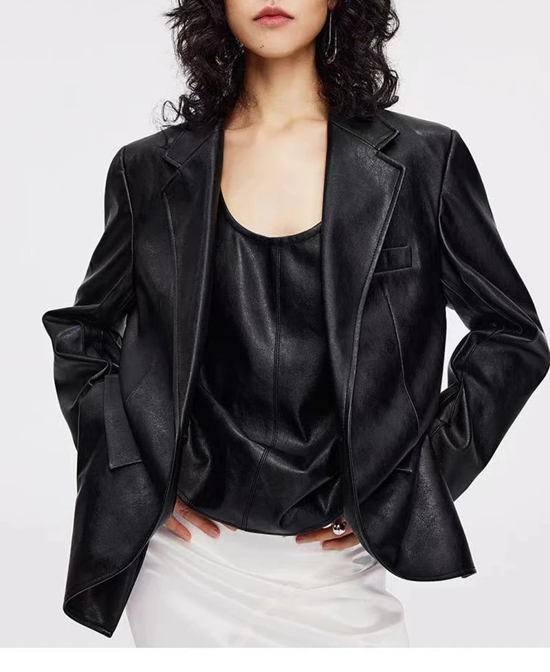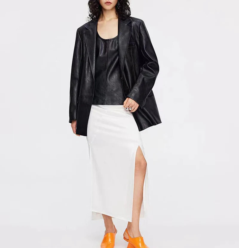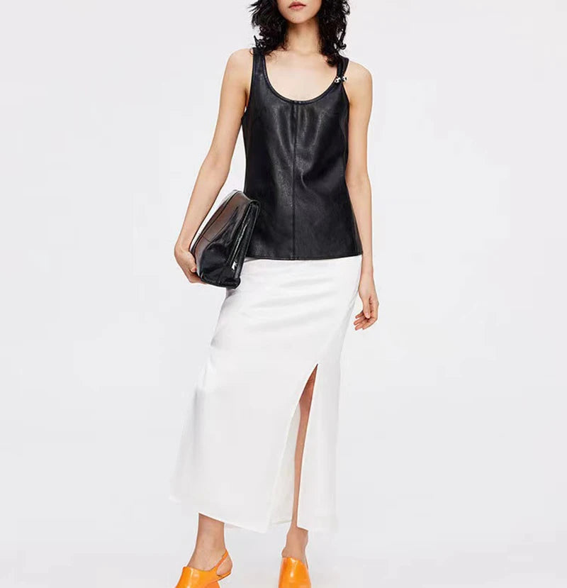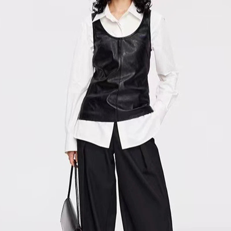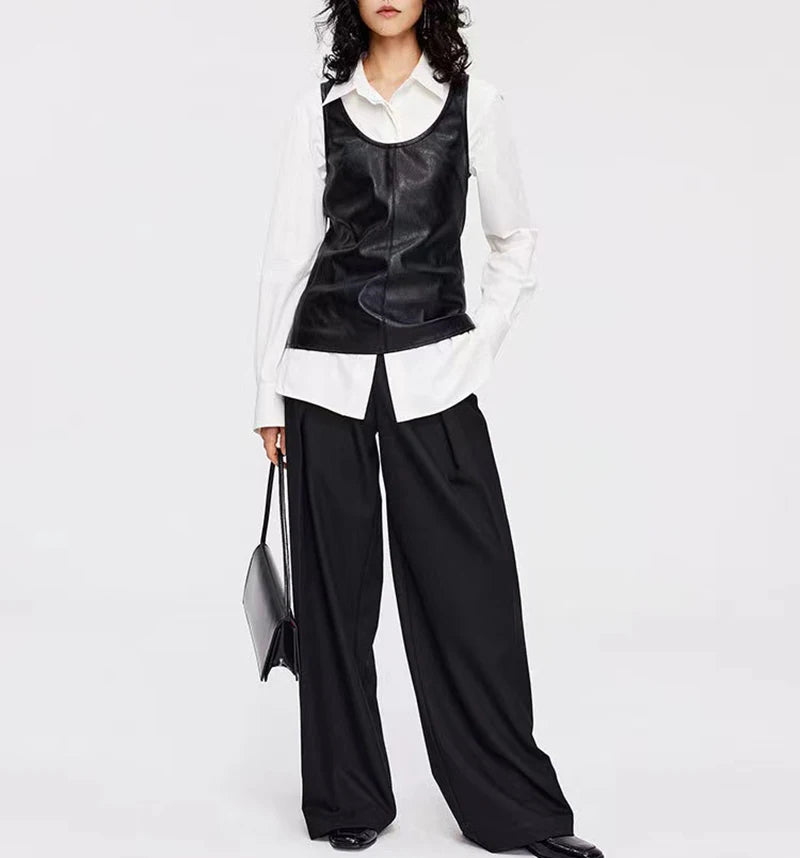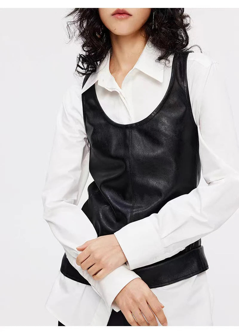 Spring Summer Casual Fashion Sheepskin Leather Slim Waistcoat Vest for Women