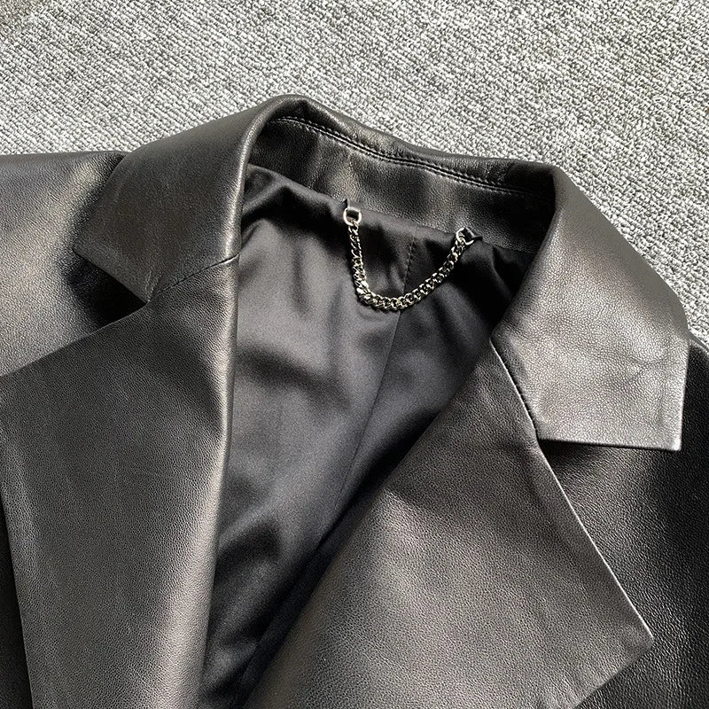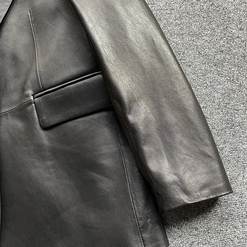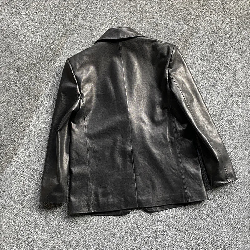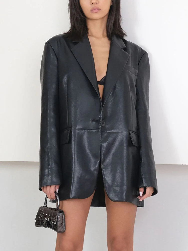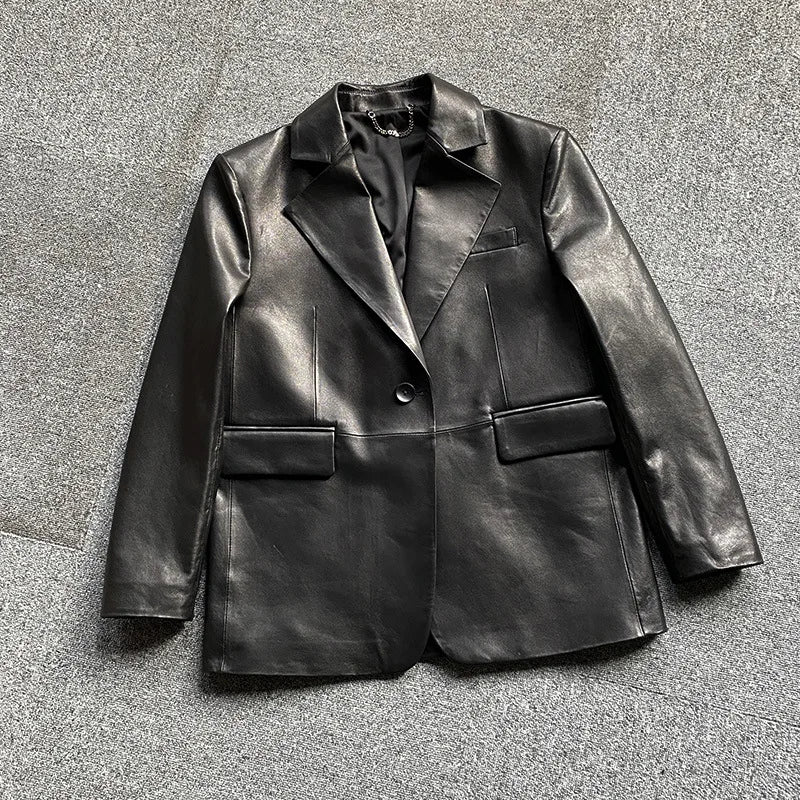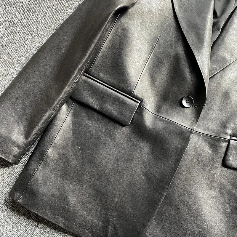 Women's Vegetable Tanned Sheepskin Oversized Single Button Loose Casual Blazer