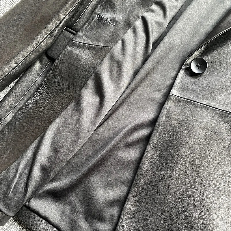 This women's blazer is your go-to choice for comfort and style for casual events. The vegetable-tanned sheepskin leather makes it perfect for long-time wear. It is oversized for extreme comfort, and the pockets add functionality to the blazer. Wear it to notch up your look. Order now!